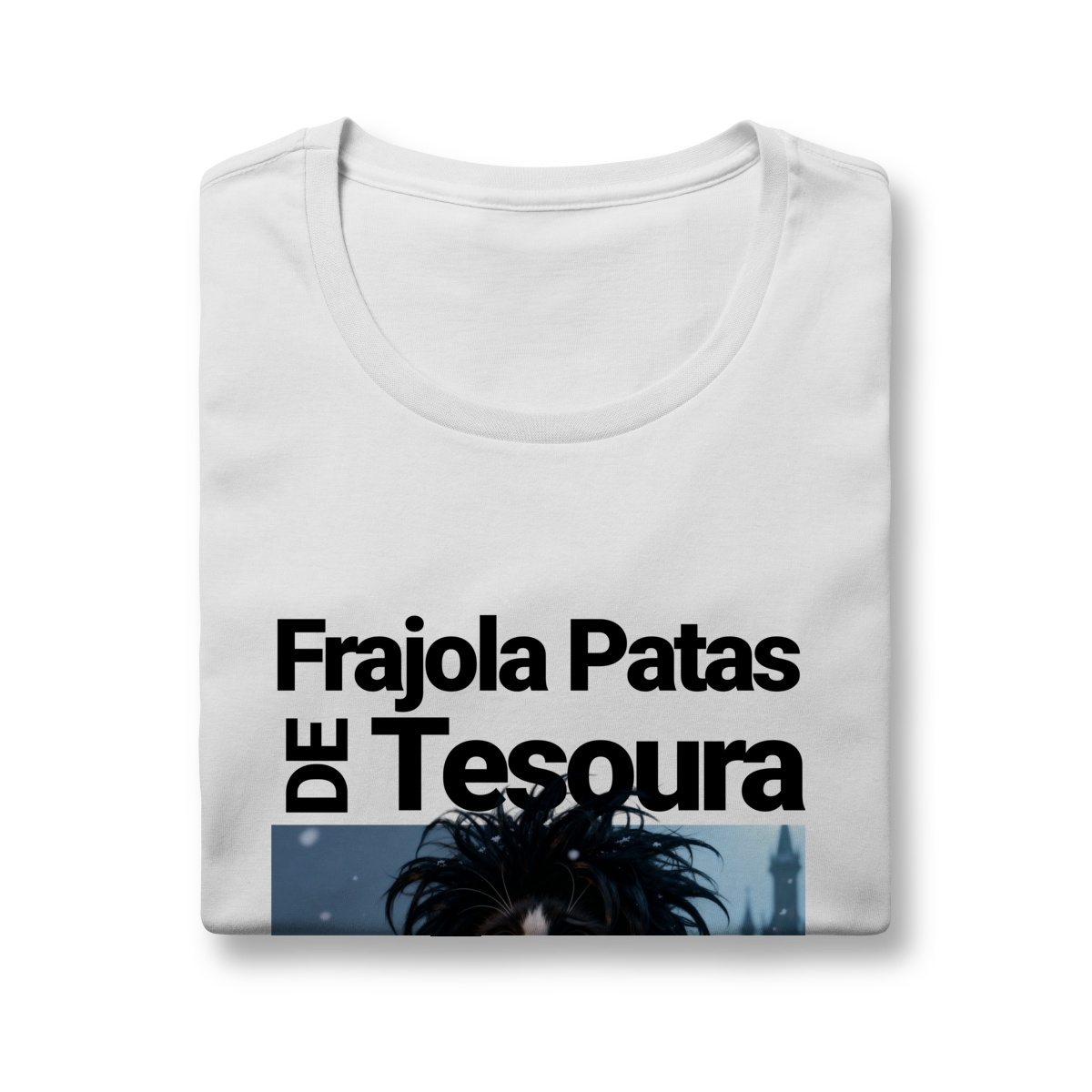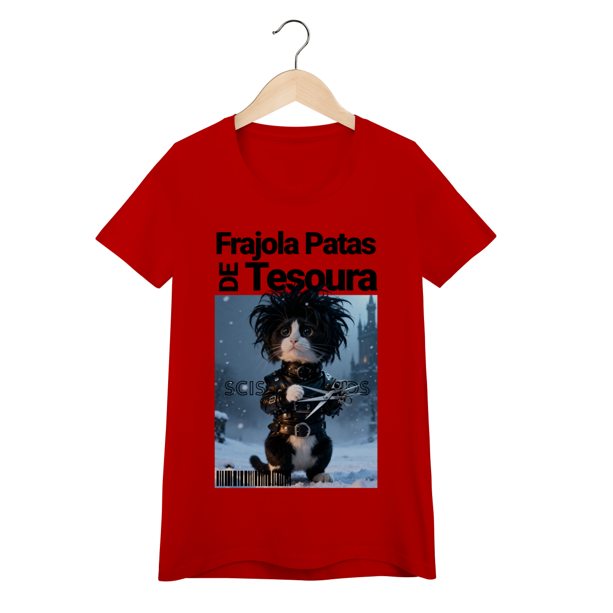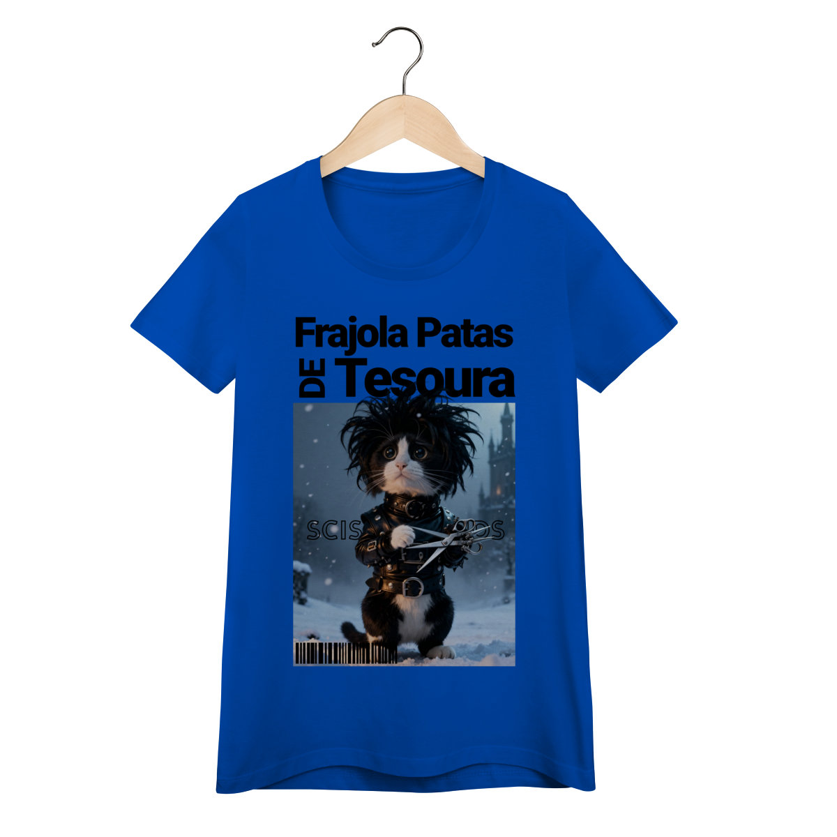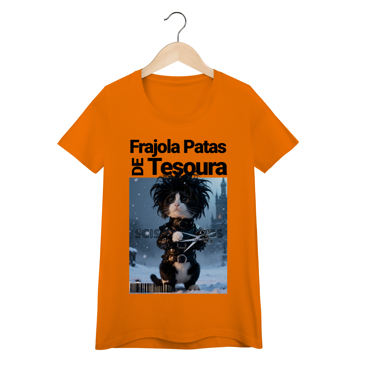 A camiseta “Frajola Patas de Tesoura” traz uma releitura divertida e estilizada do clássico personagem de tesouras — só que agora reinventado como um gatinho dramático, fofo e cheio de personalidade.