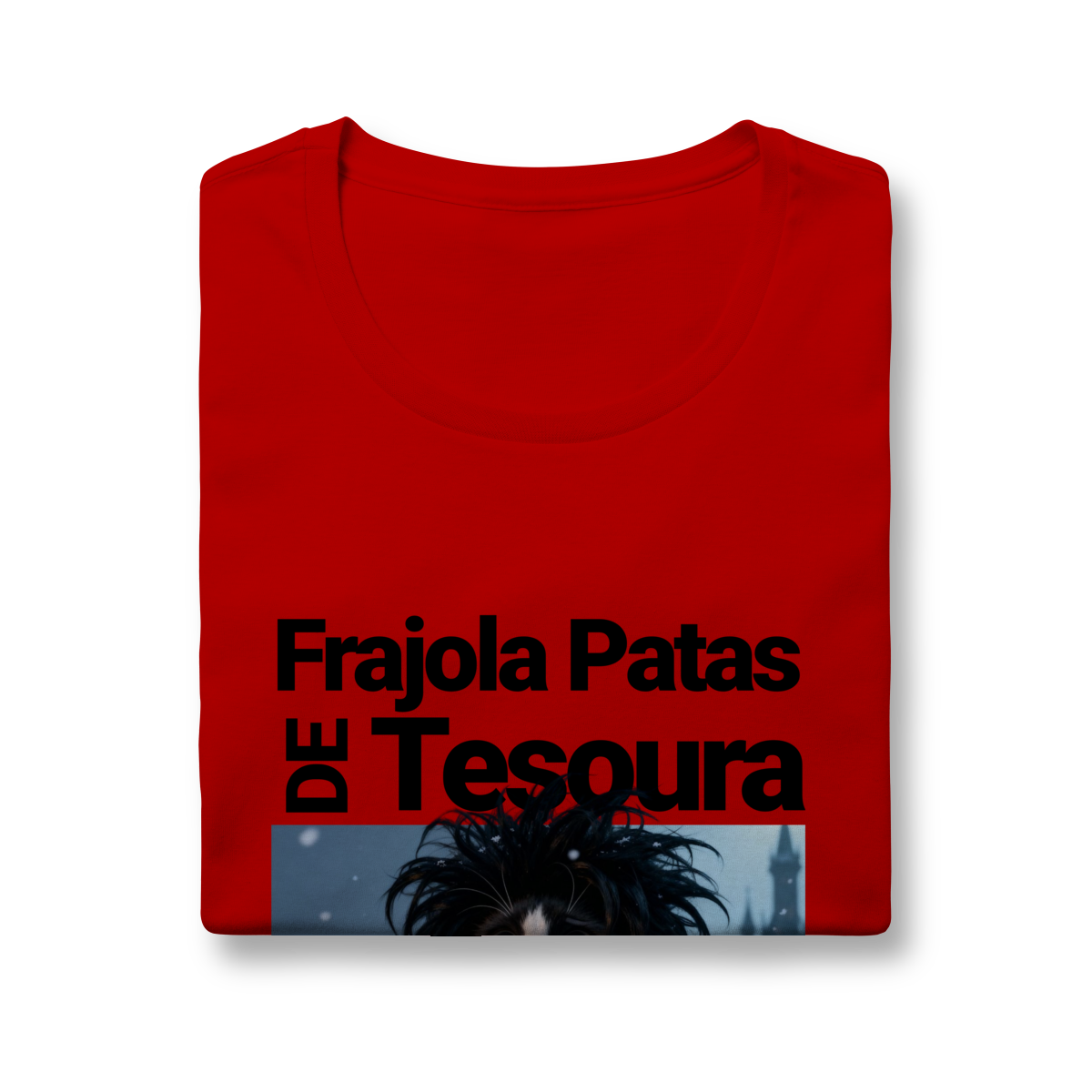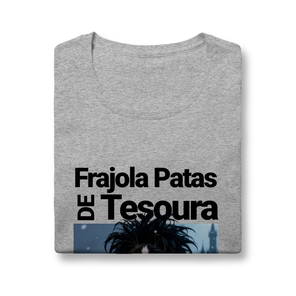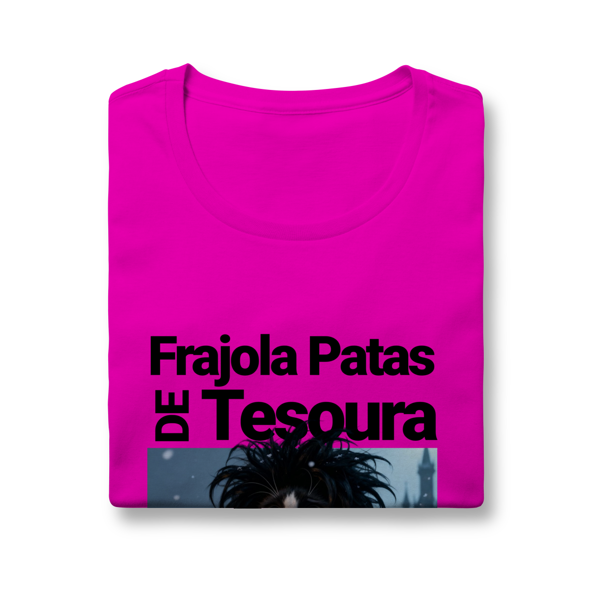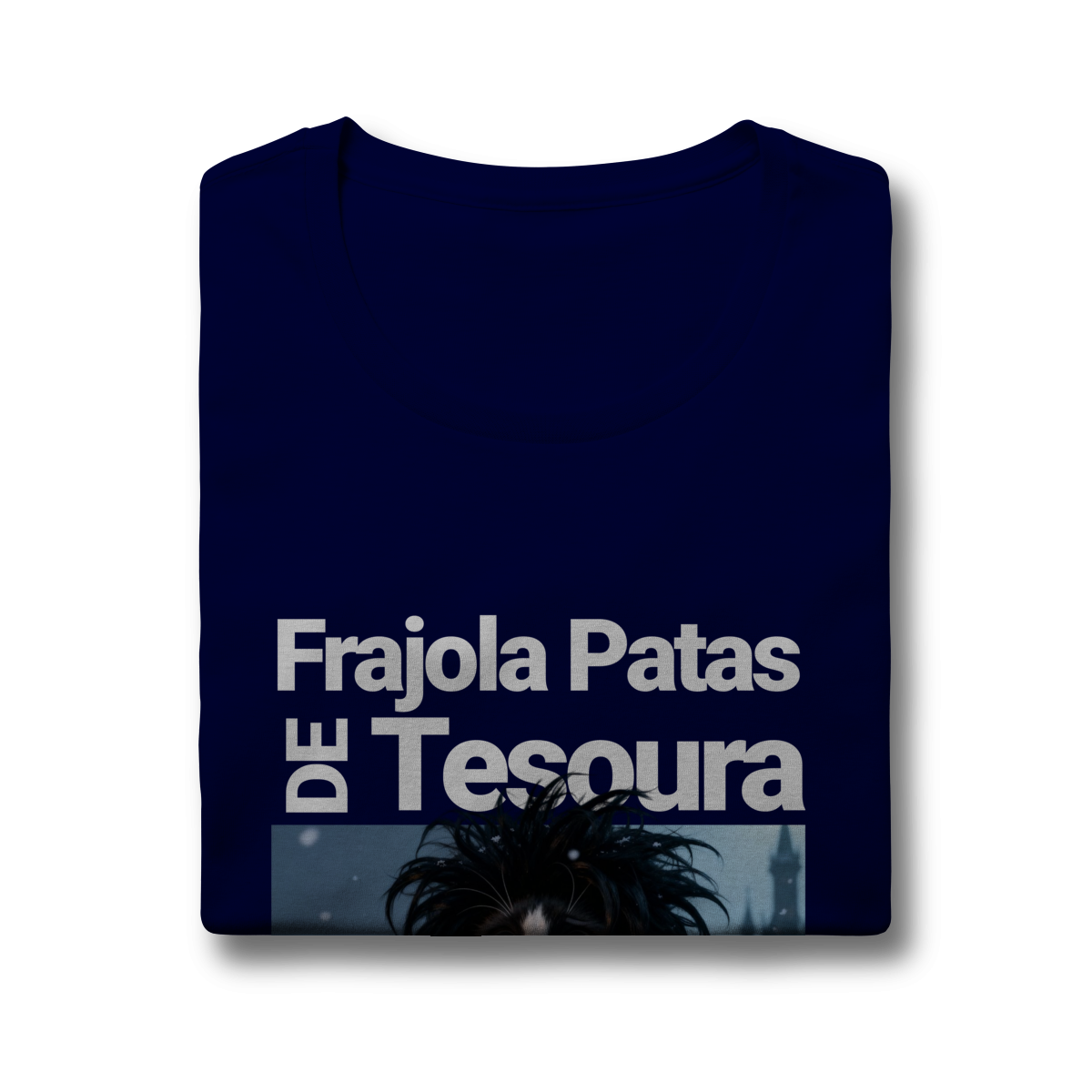 A camiseta “Frajola Patas de Tesoura” traz uma releitura divertida e estilizada do clássico personagem de tesouras — só que agora reinventado como um gatinho dramático, fofo e cheio de personalidade.