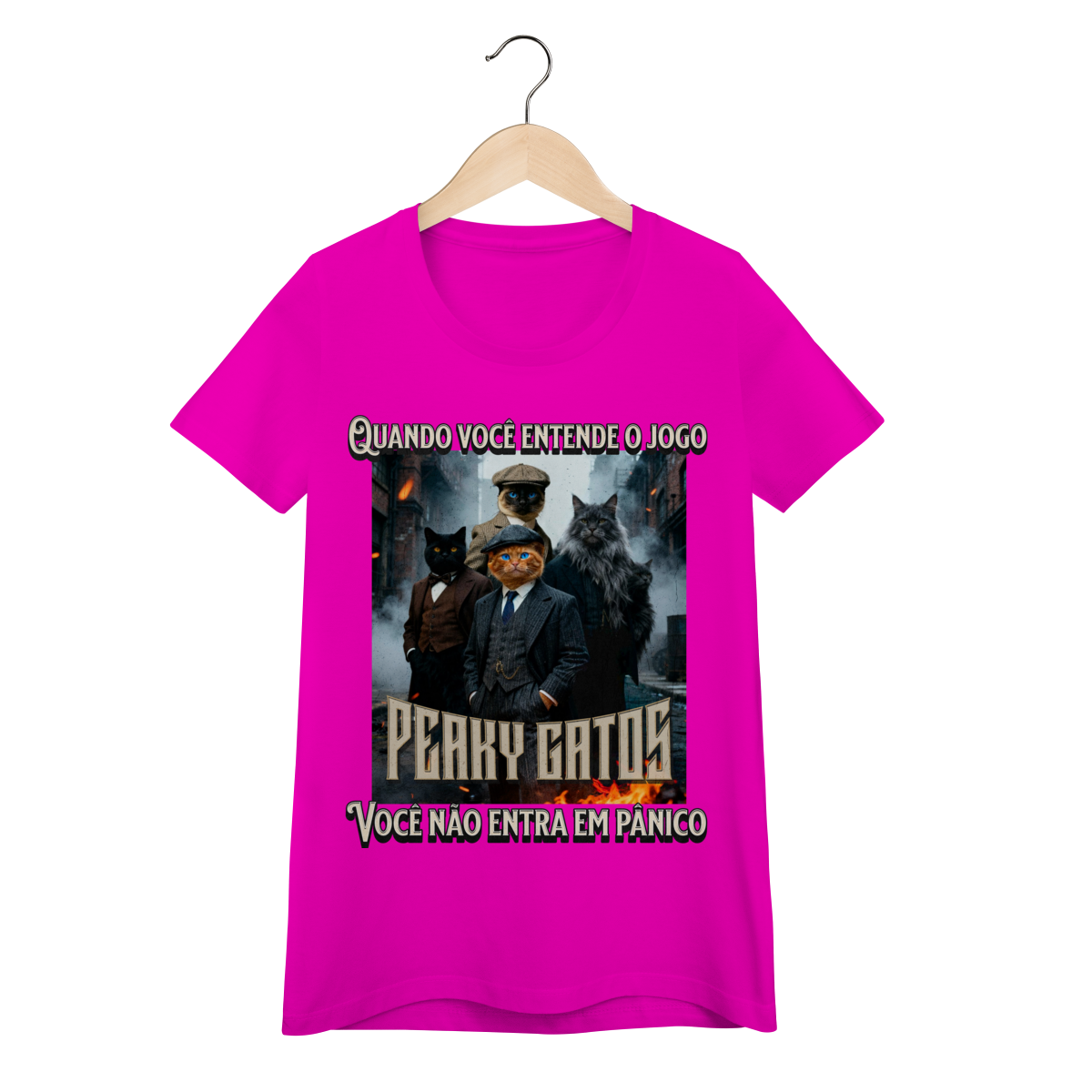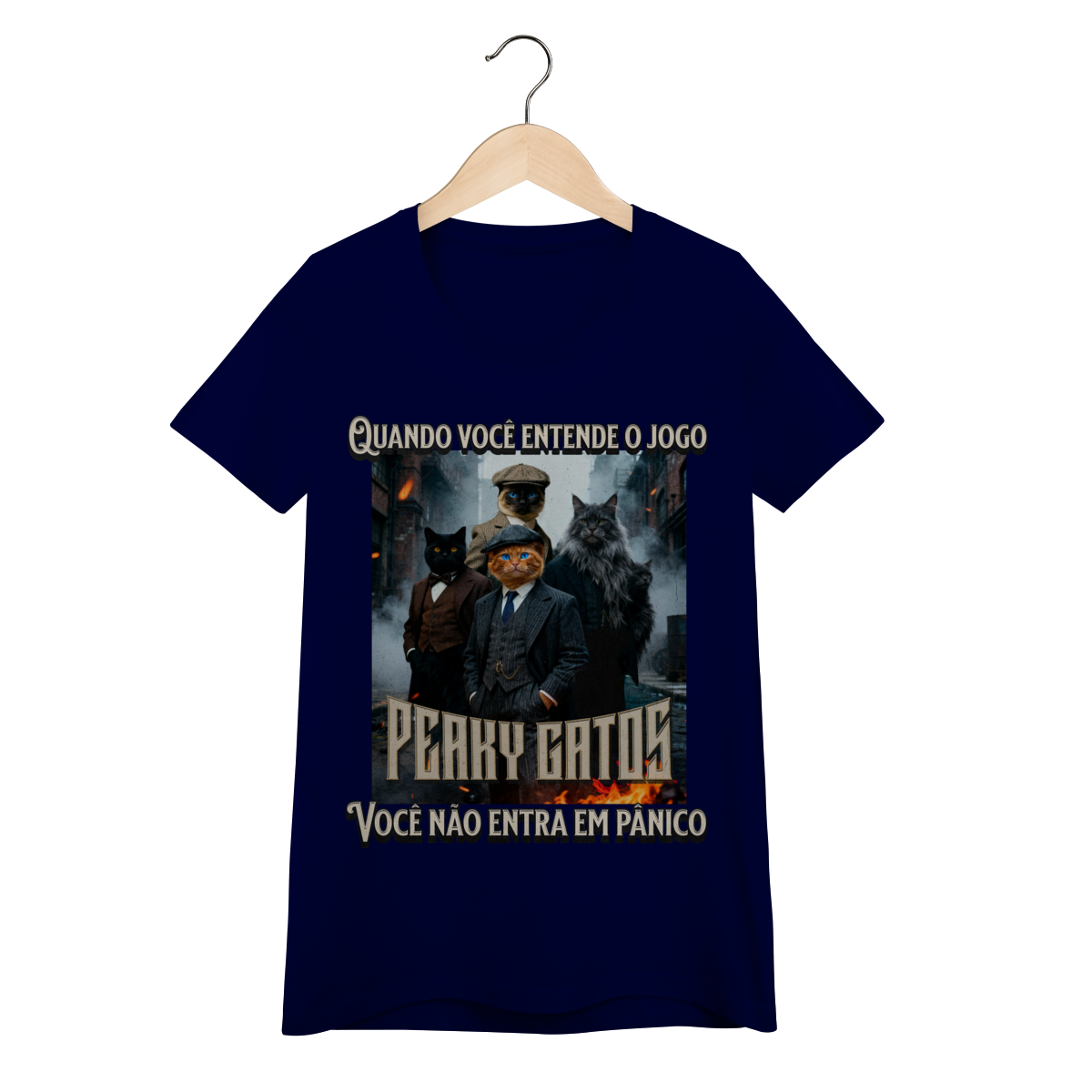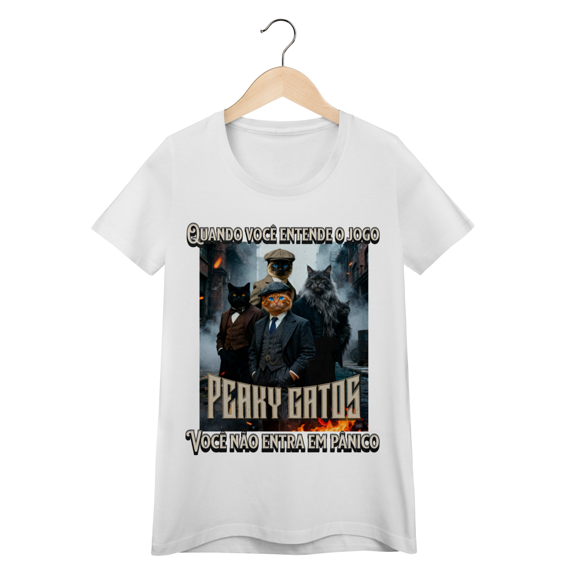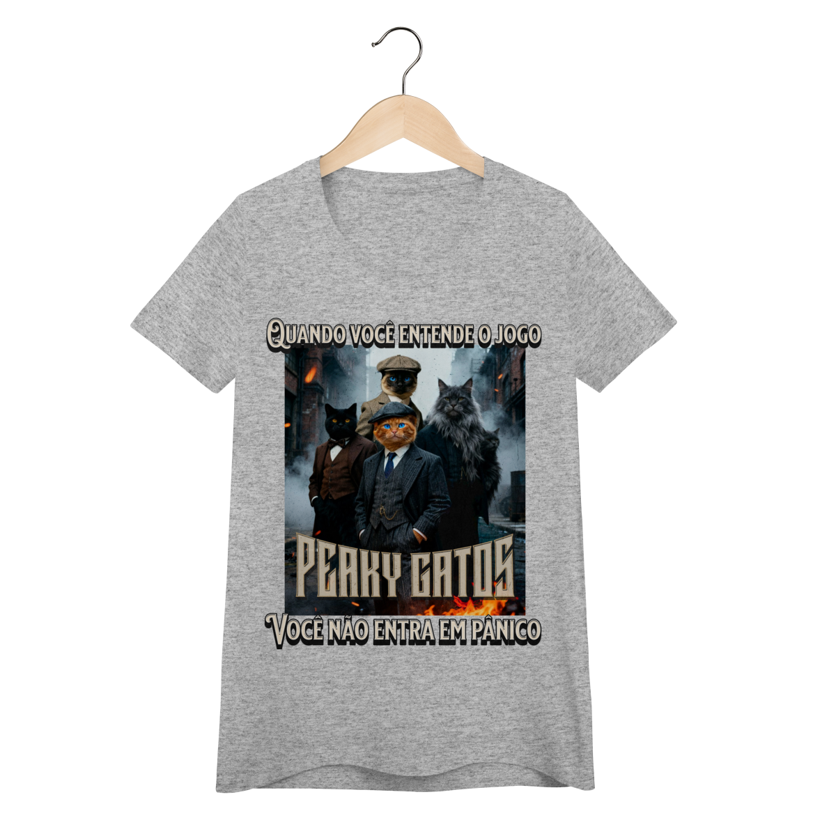 A camiseta Peaky Gatos traz uma paródia divertida no estilo de uma gangue clássica, só que formada por gatos com roupas elegantes e clima de ação. A estampa é estilosa, com visual sombrio e cheio de personalidade, perfeita para quem ama humor, cultura pop e camisetas criativas. Confortável, moderna e ideal para usar no dia a dia ou dar de presente.