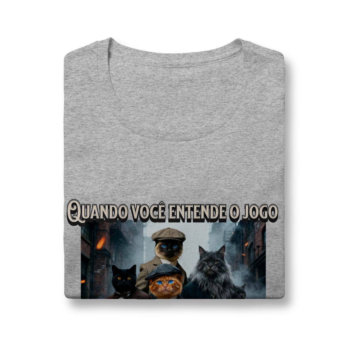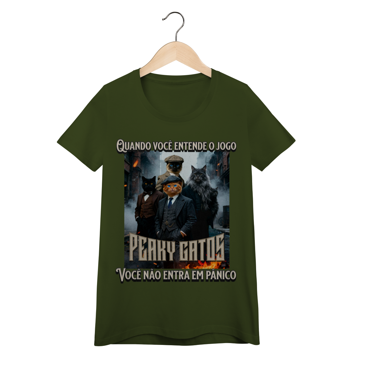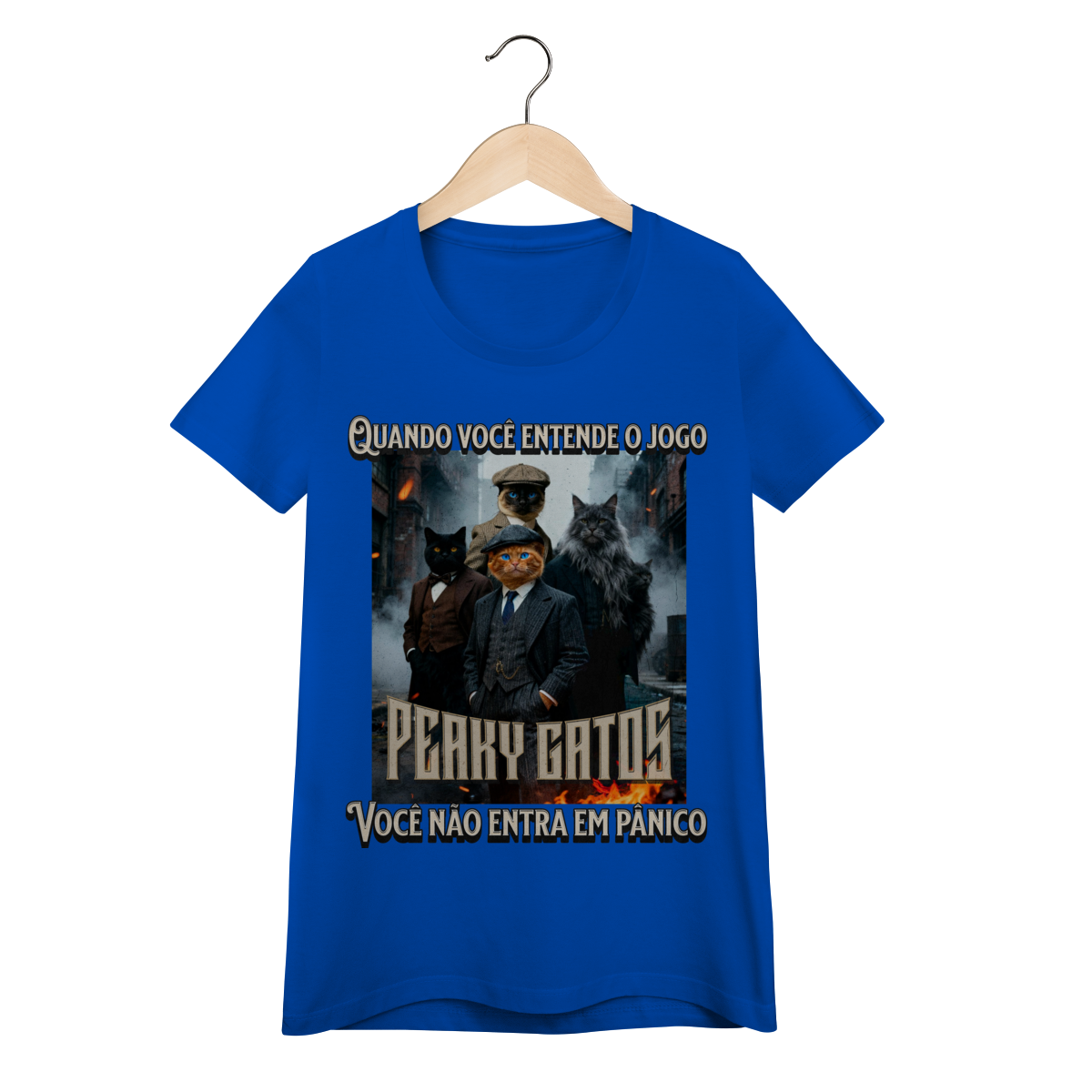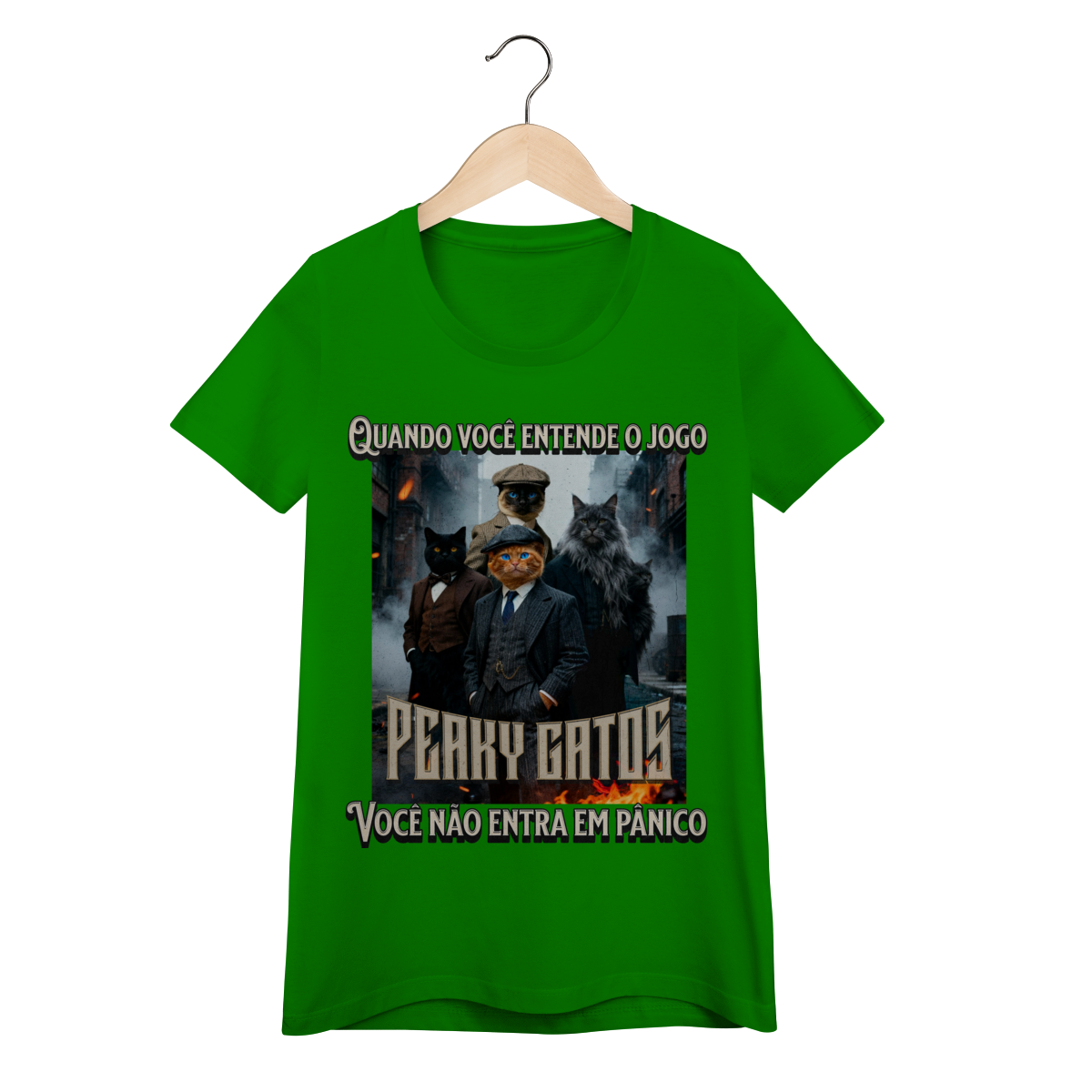 A camiseta Peaky Gatos traz uma paródia divertida no estilo de uma gangue clássica, só que formada por gatos com roupas elegantes e clima de ação. A estampa é estilosa, com visual sombrio e cheio de personalidade, perfeita para quem ama humor, cultura pop e camisetas criativas. Confortável, moderna e ideal para usar no dia a dia ou dar de presente.