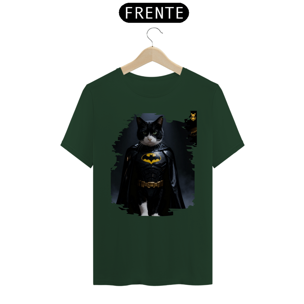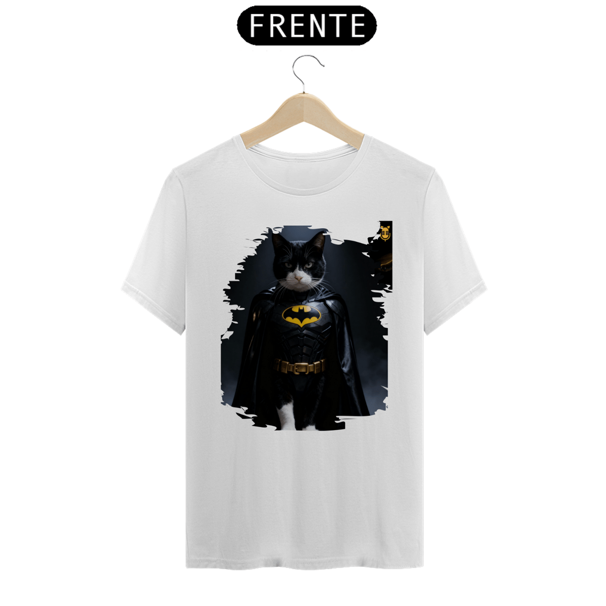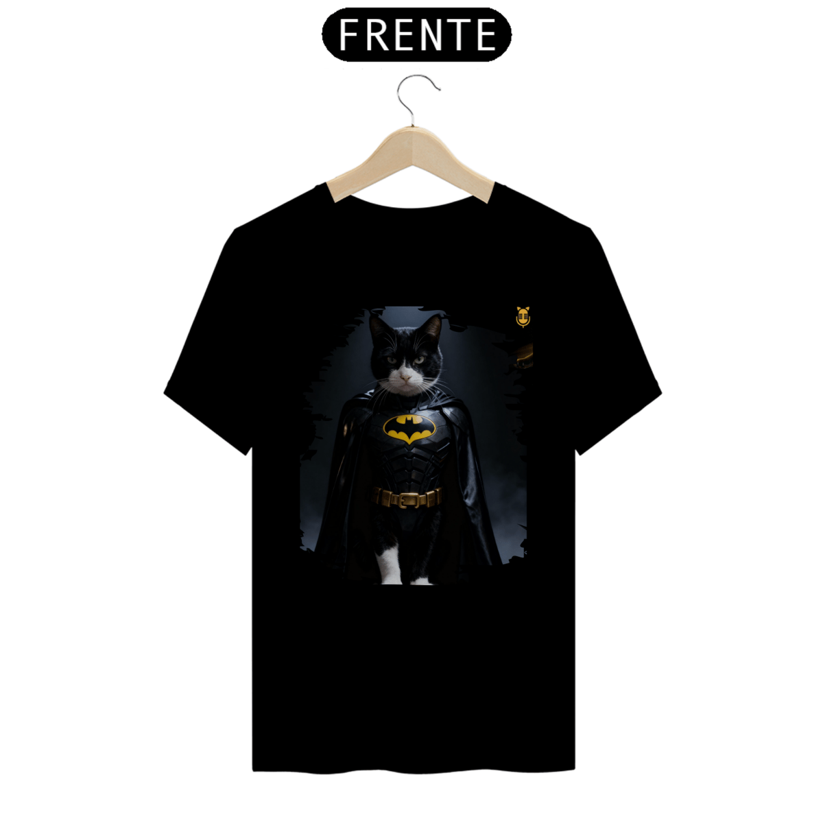 Para quem carrega coragem, mistério e muita personalidade. A camiseta Bat Cat apresenta um Frajolinha lindo elegante em um traje de vigilante, com armadura detalhada, capa imponente e olhar firme — pronto para proteger a cidade… ou pelo menos o pote de ração.