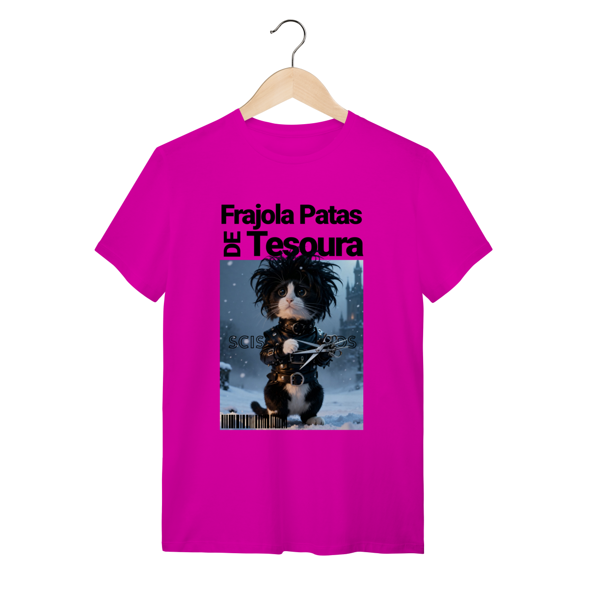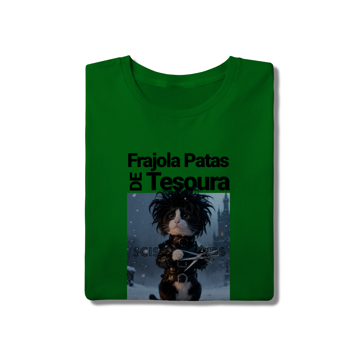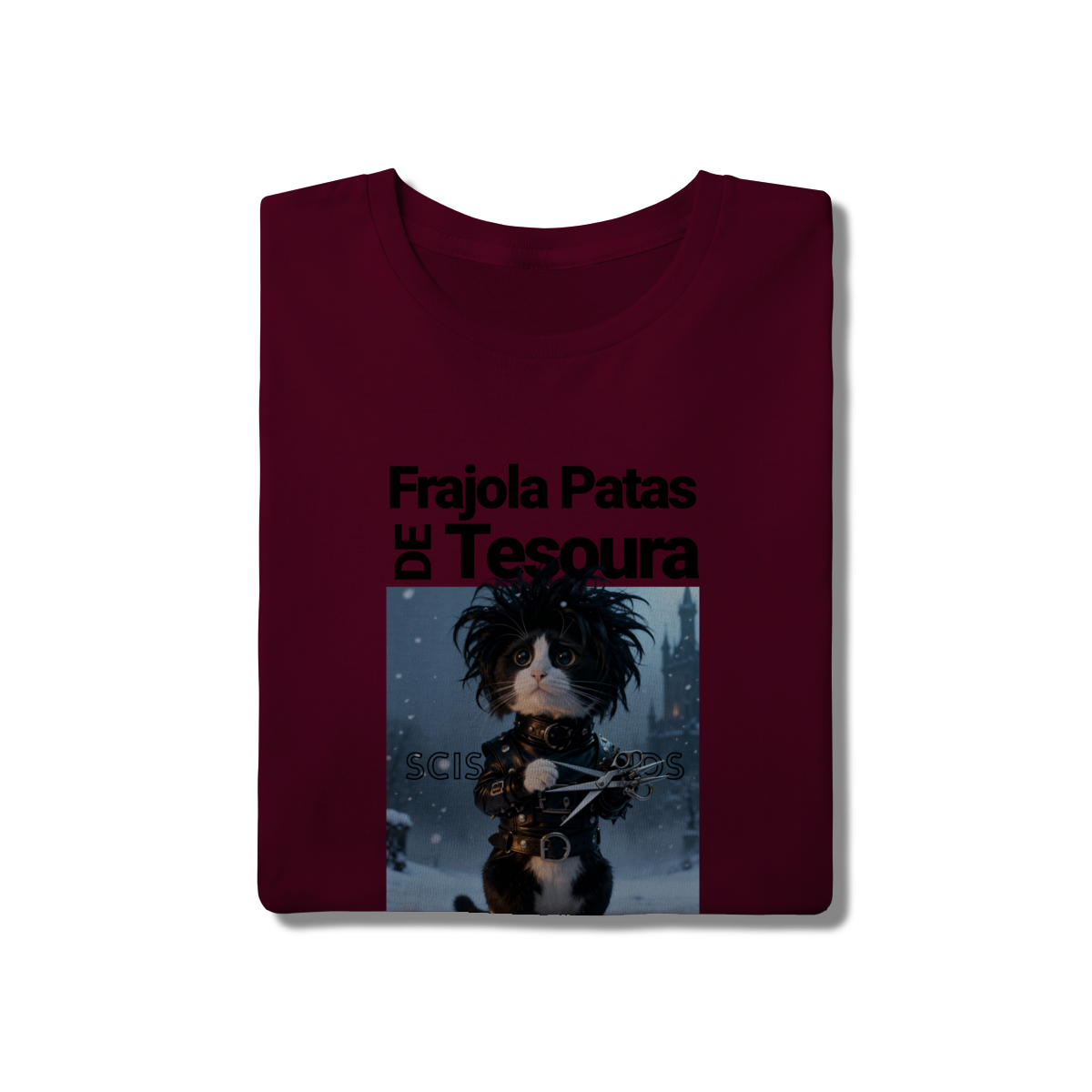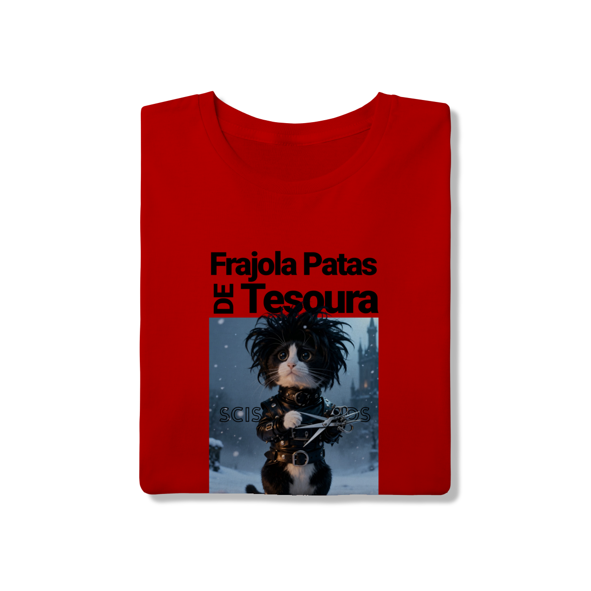 A camiseta “Frajola Patas de Tesoura” traz uma releitura divertida e estilizada do clássico personagem de tesouras — só que agora reinventado como um gatinho dramático, fofo e cheio de personalidade.