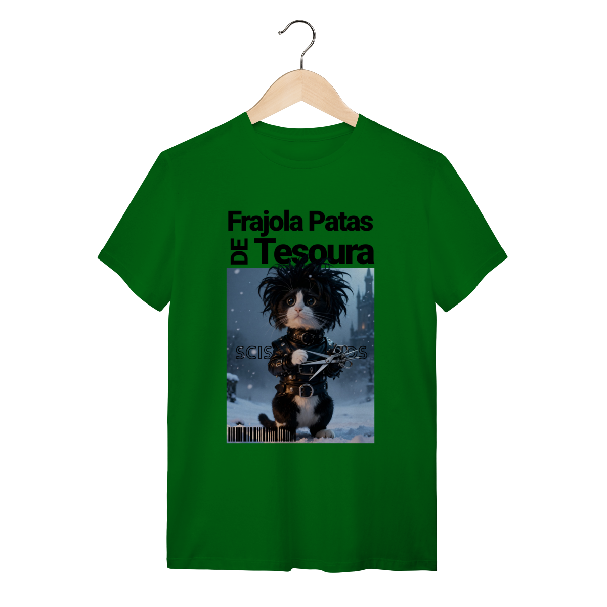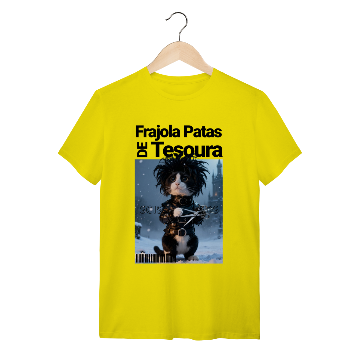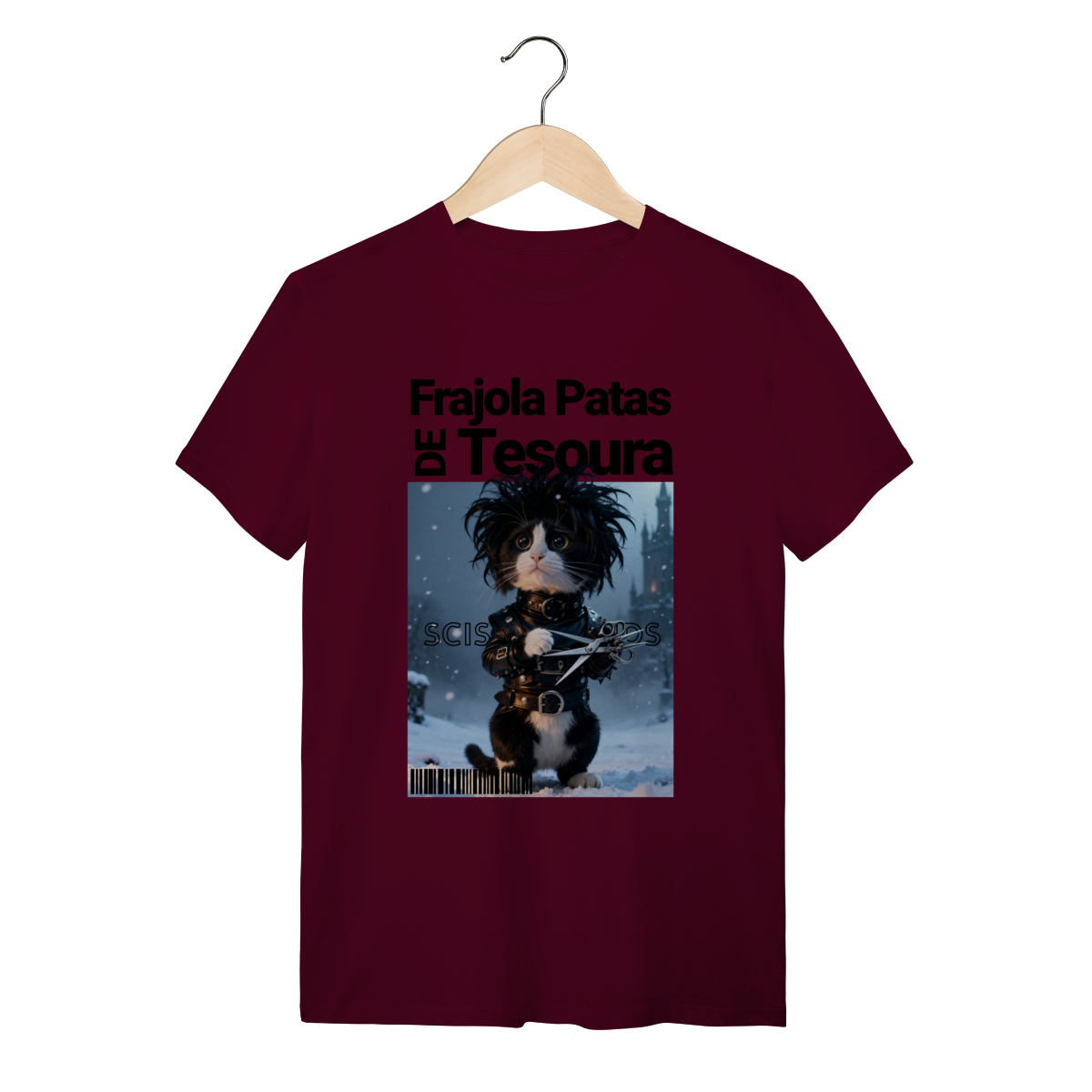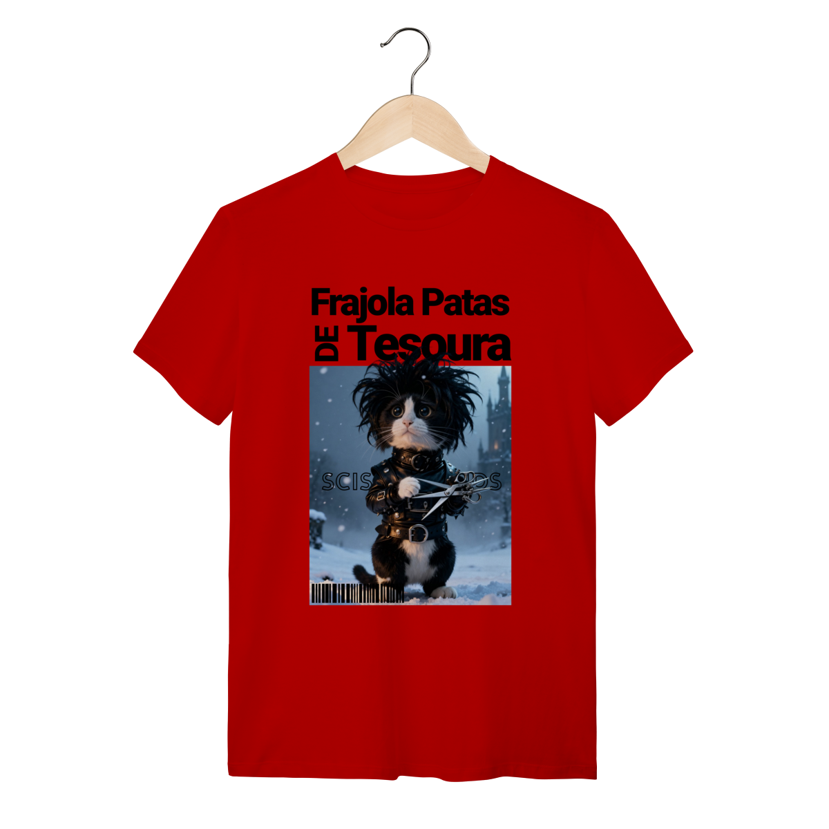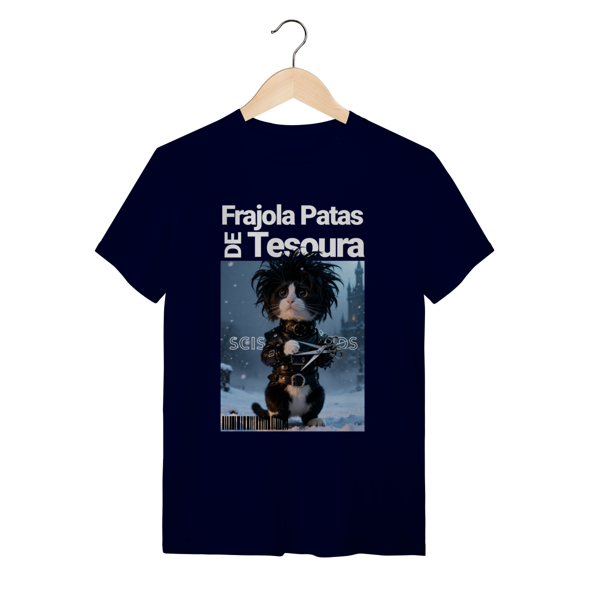A camiseta “Frajola Patas de Tesoura” traz uma releitura divertida e estilizada do clássico personagem de tesouras — só que agora reinventado como um gatinho dramático, fofo e cheio de personalidade.