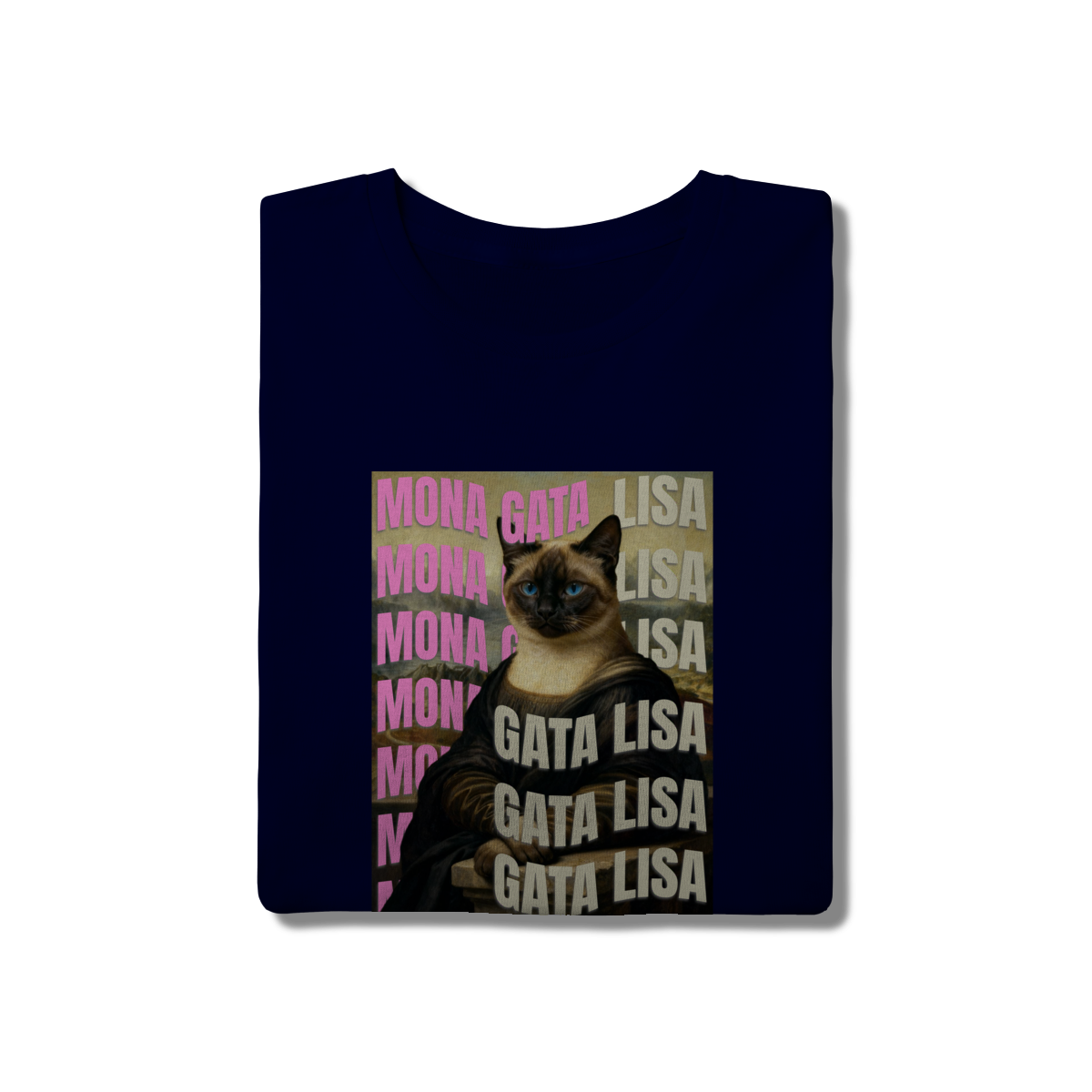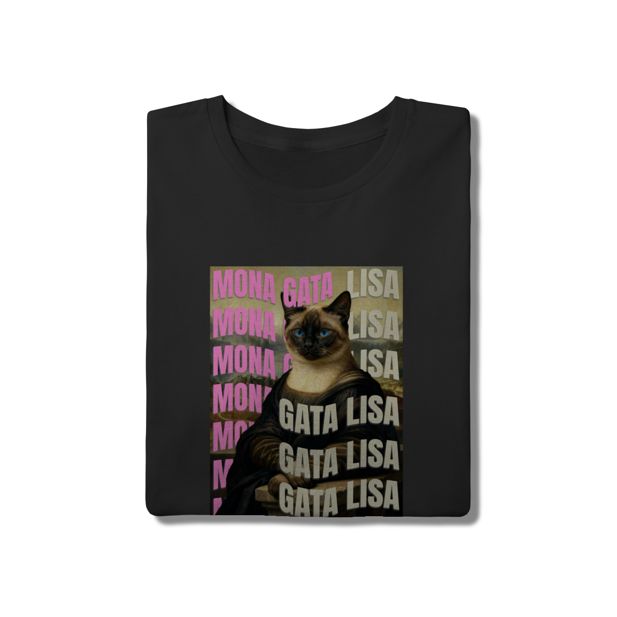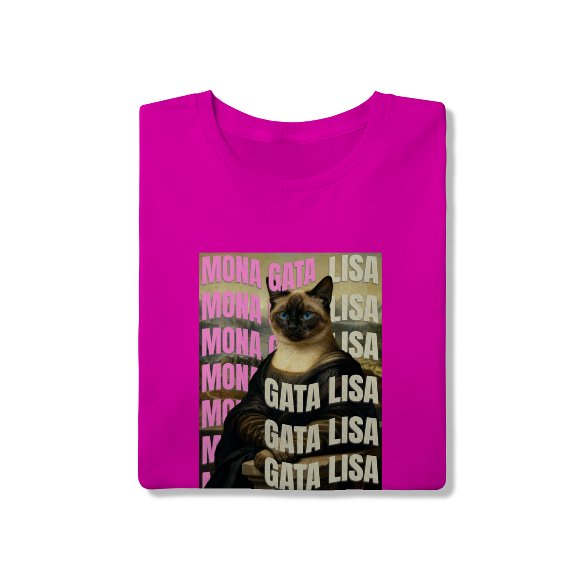 A camiseta Gata Lisa traz uma paródia divertida da famosa obra “Mona Lisa”, mas reimaginada com uma gatinha siamesa. A estampa mistura humor e arte de um jeito simples e estiloso, perfeita para quem ama gatos e camisetas criativas. Confortável, moderna e com impressão de alta qualidade — ideal para usar no dia a dia ou presentear alguém especial.