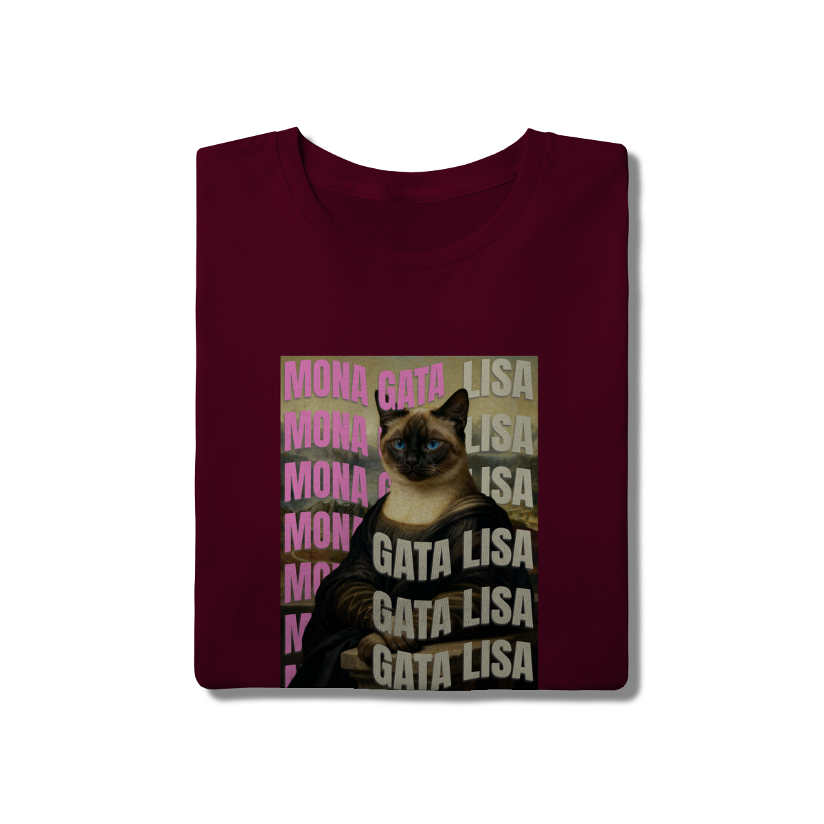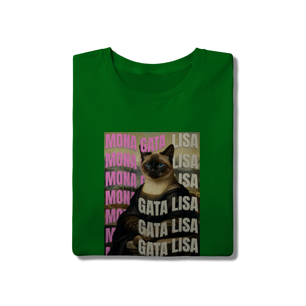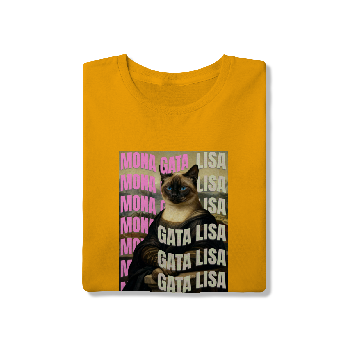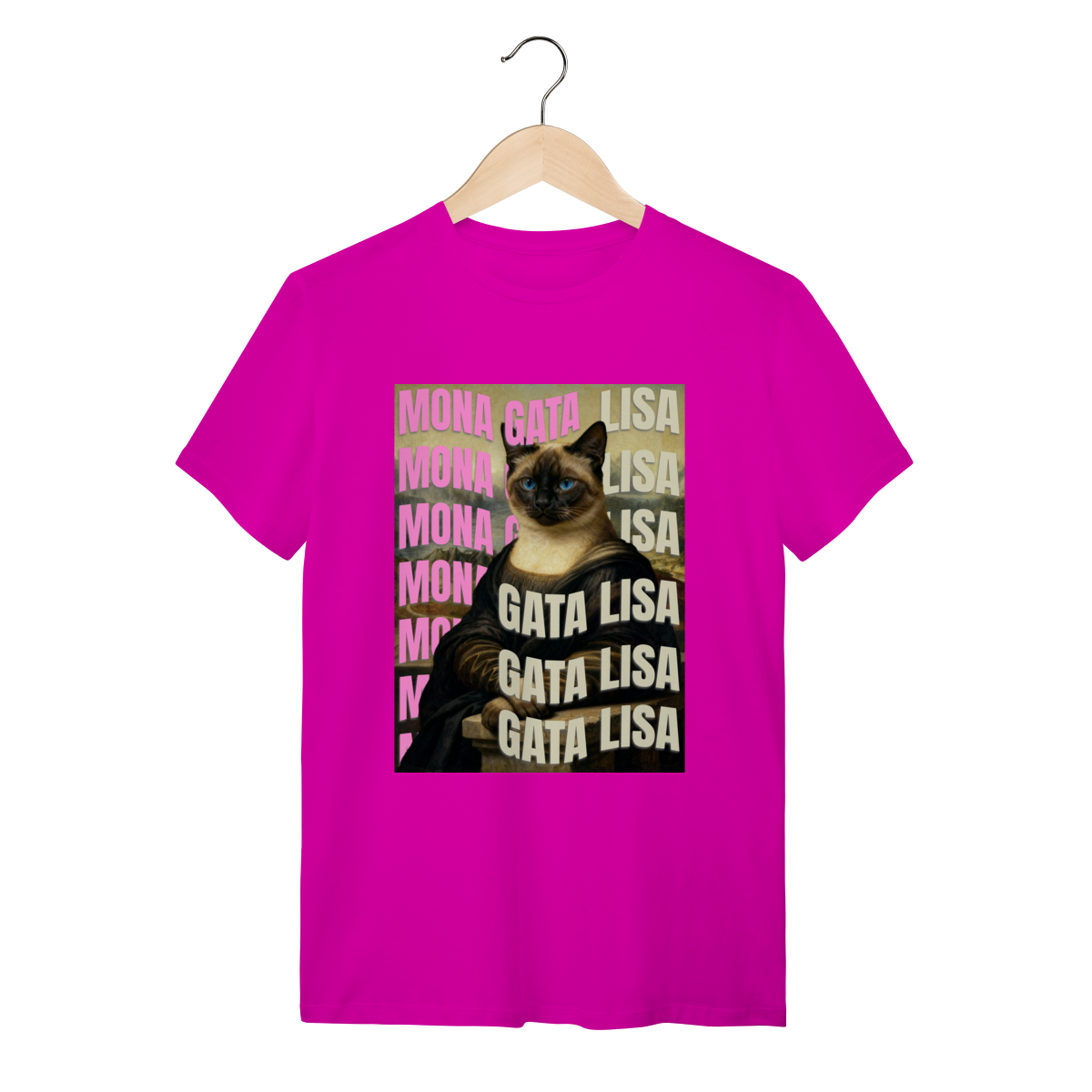 A camiseta Gata Lisa traz uma paródia divertida da famosa obra “Mona Lisa”, mas reimaginada com uma gatinha siamesa. A estampa mistura humor e arte de um jeito simples e estiloso, perfeita para quem ama gatos e camisetas criativas. Confortável, moderna e com impressão de alta qualidade — ideal para usar no dia a dia ou presentear alguém especial.