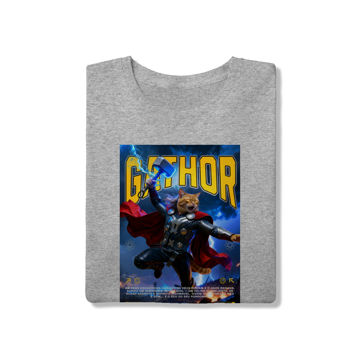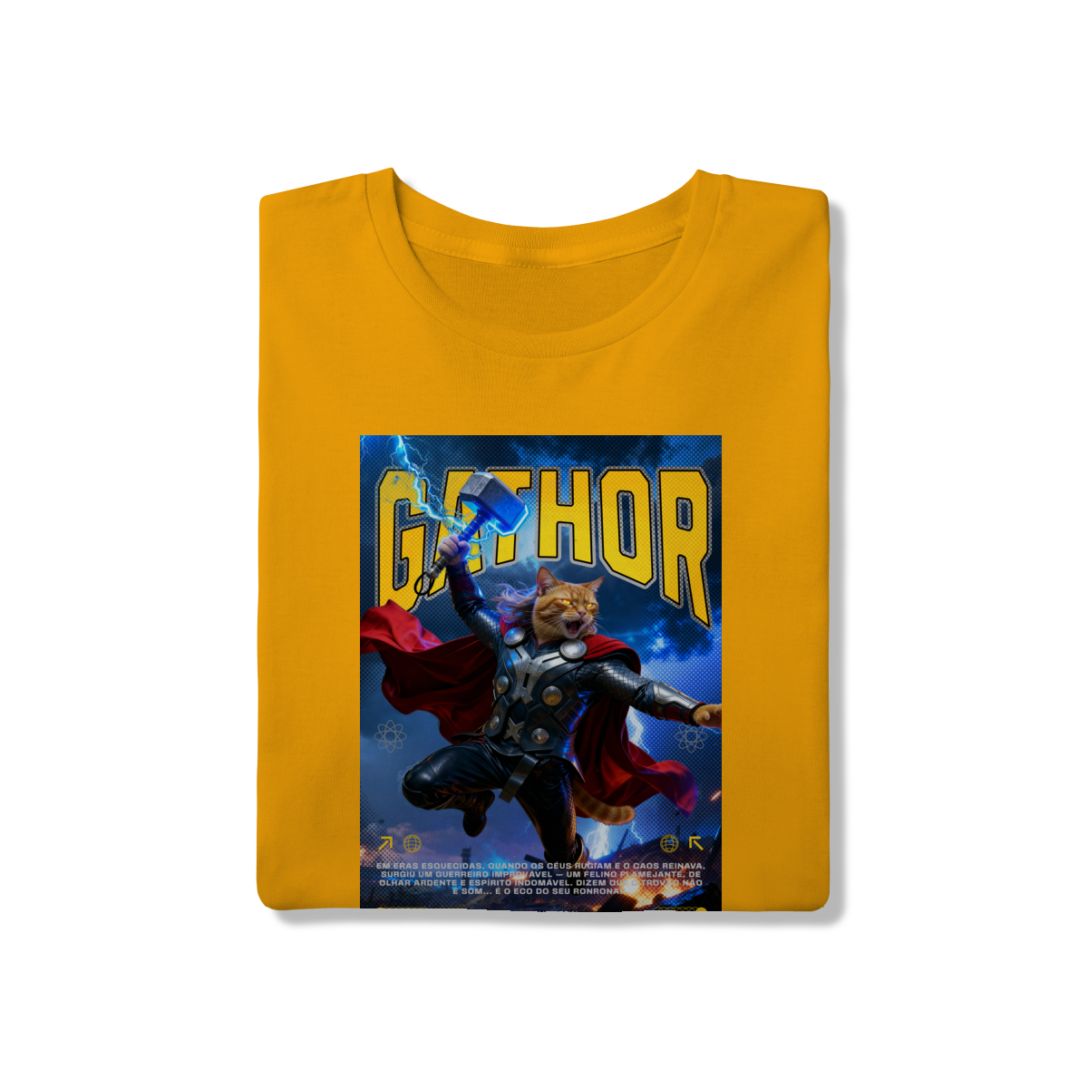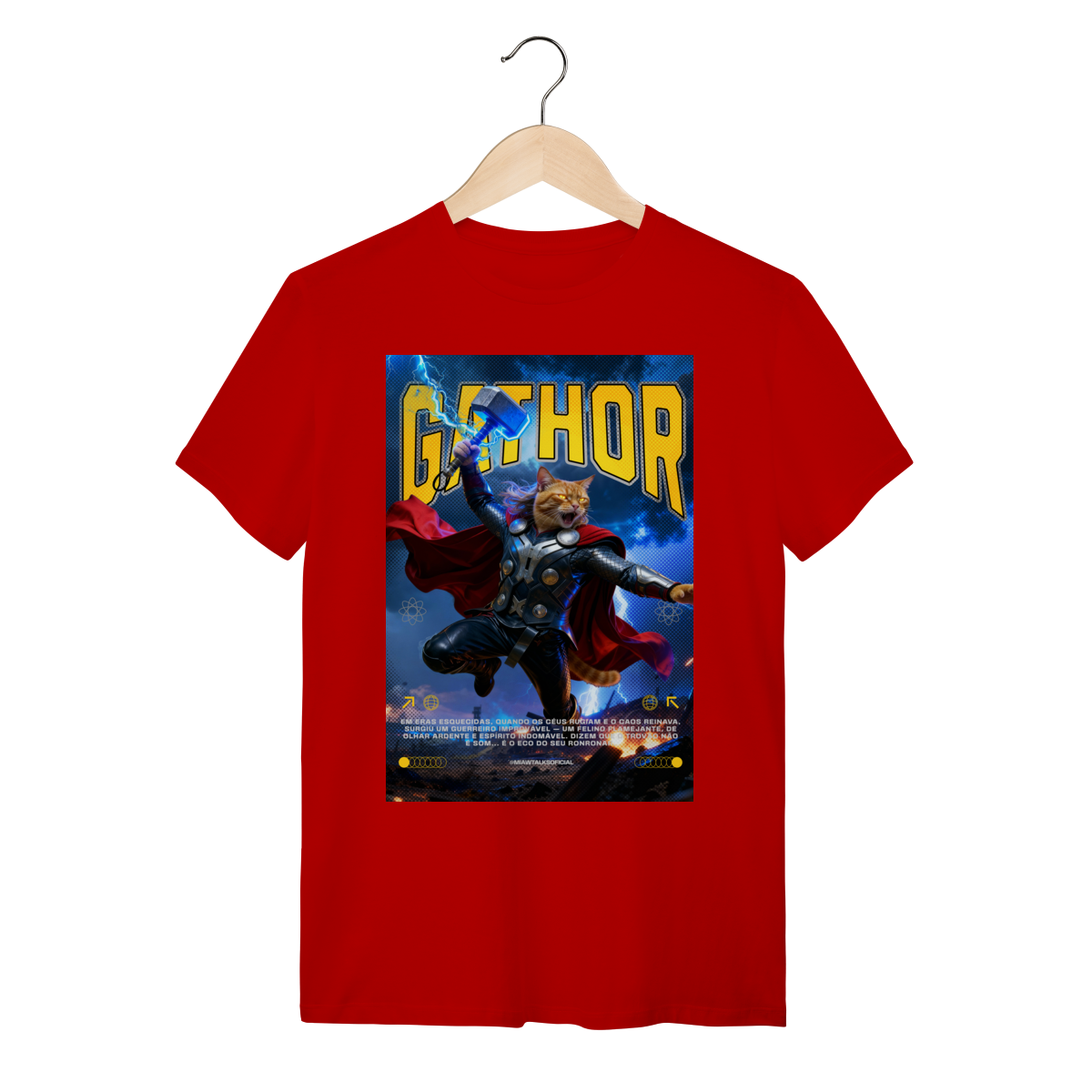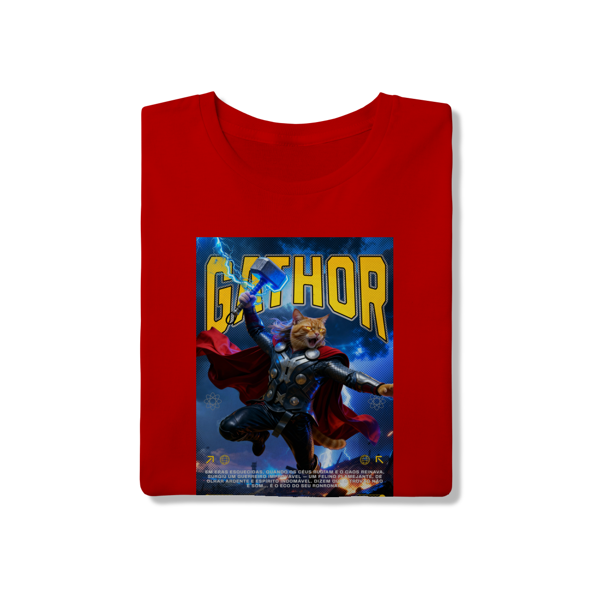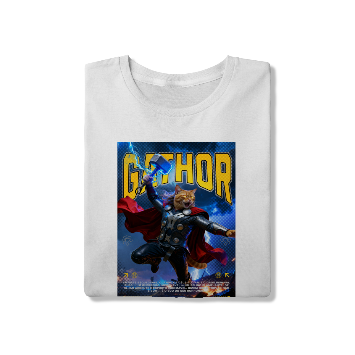 A camiseta Gathor traz uma paródia divertida do deus do trovão, agora reimaginado como um gato herói superpoderoso. A estampa é vibrante, cheia de ação e perfeita para quem ama gatos, humor e cultura pop. Confortável e estilosa, é uma ótima opção para usar no dia a dia ou presentear alguém que adora camisetas criativas.A camiseta Gathor traz uma paródia divertida do deus do trovão, agora reimaginado como um gato herói superpoderoso. A estampa é vibrante, cheia de ação e perfeita para quem ama gatos, humor e cultura pop. Confortável e estilosa, é uma ótima opção para usar no dia a dia ou presentear alguém que adora camisetas criativas.