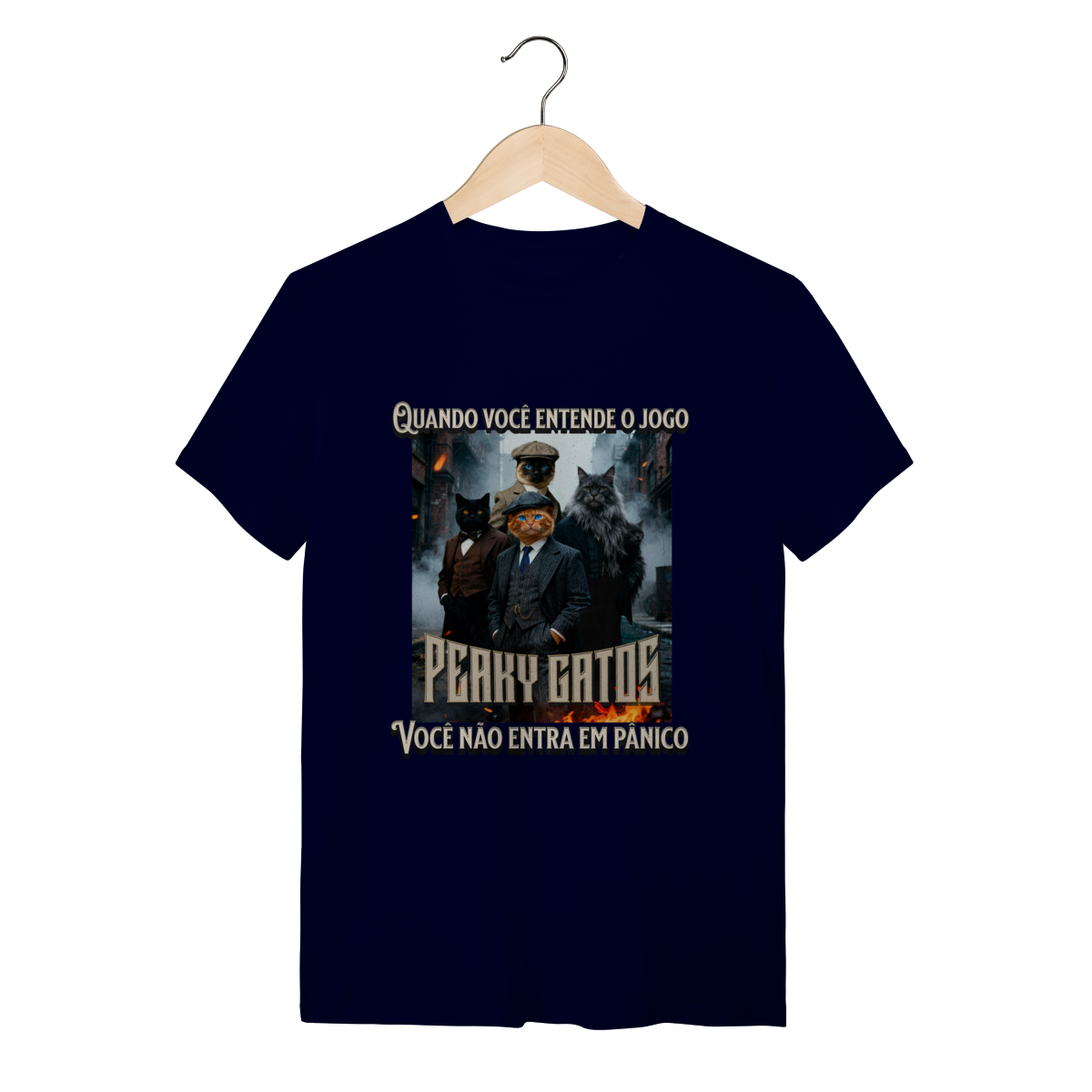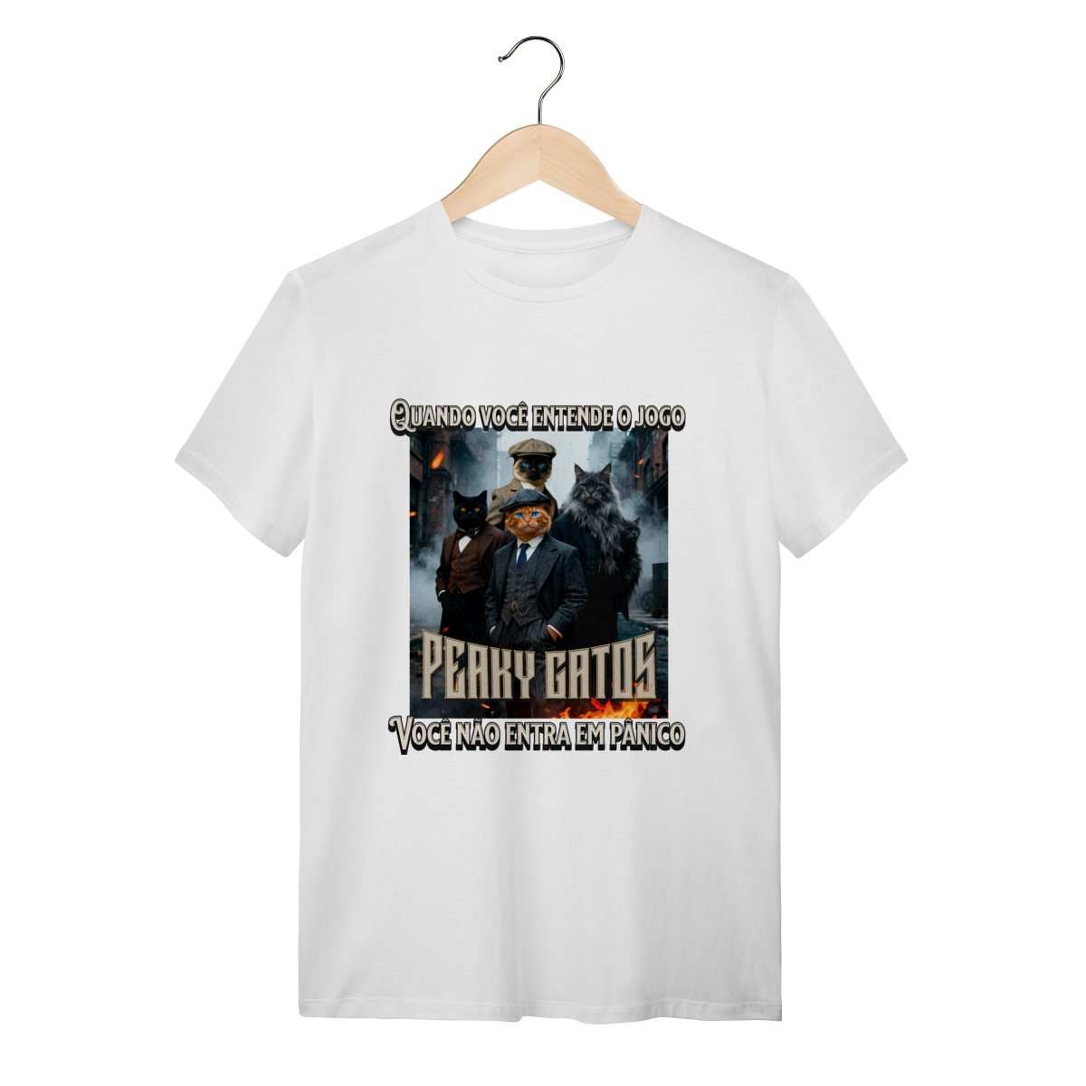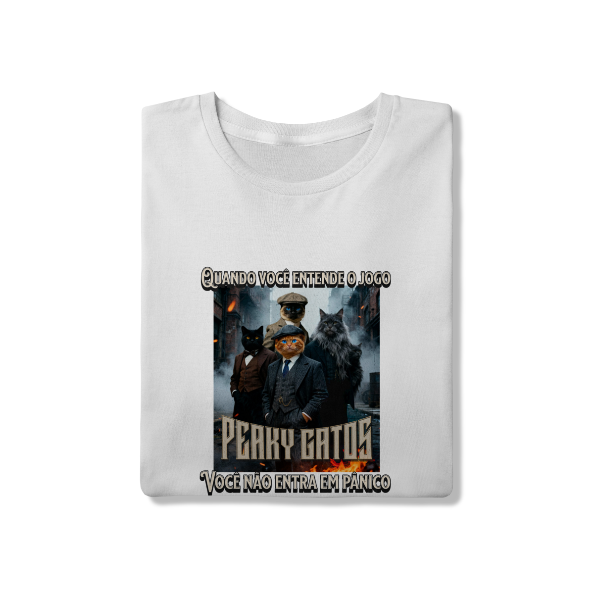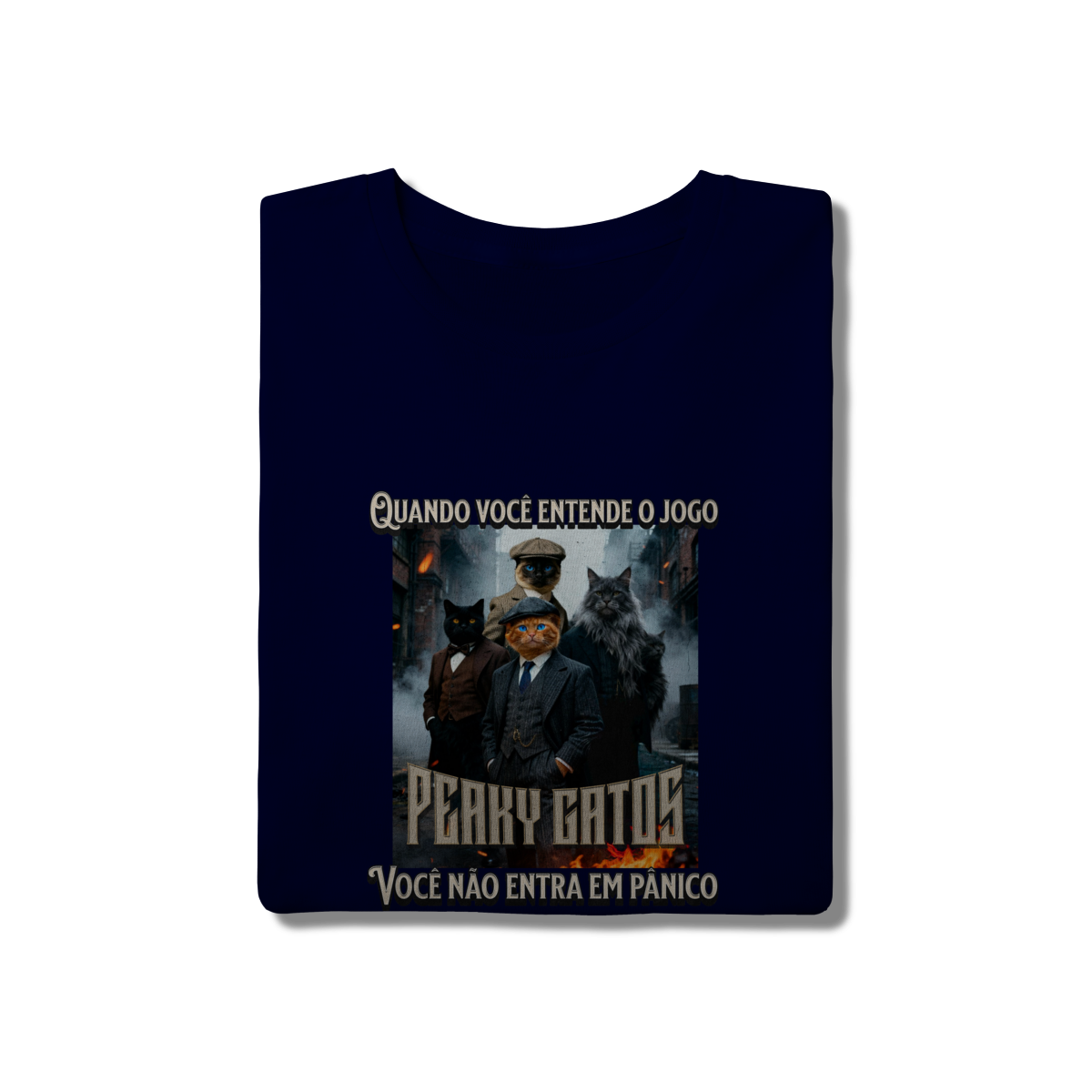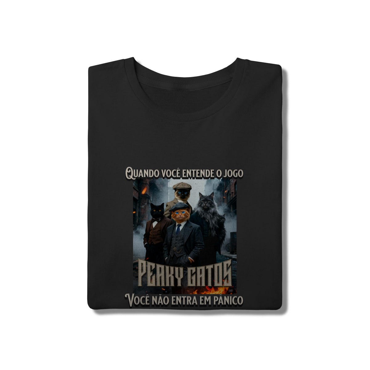 A camiseta Peaky Gatos traz uma paródia divertida no estilo de uma gangue clássica, só que formada por gatos com roupas elegantes e clima de ação. A estampa é estilosa, com visual sombrio e cheio de personalidade, perfeita para quem ama humor, cultura pop e camisetas criativas. Confortável, moderna e ideal para usar no dia a dia ou dar de presente.