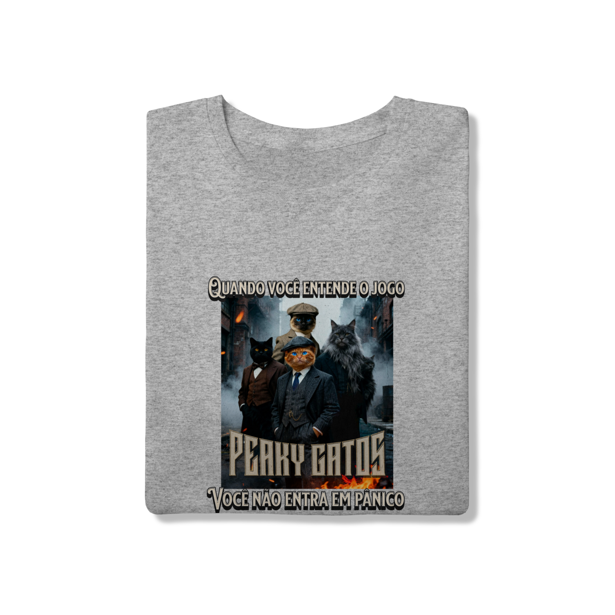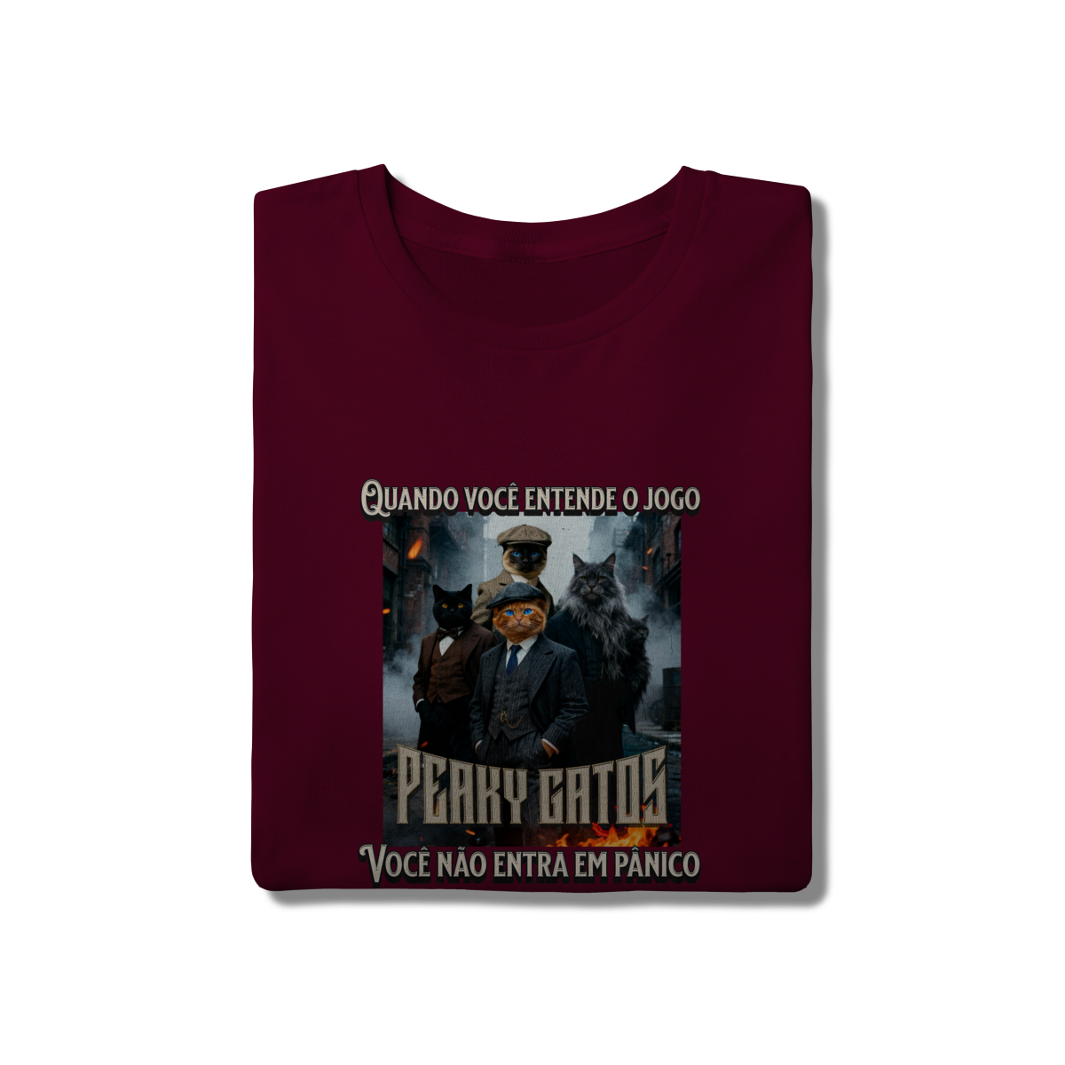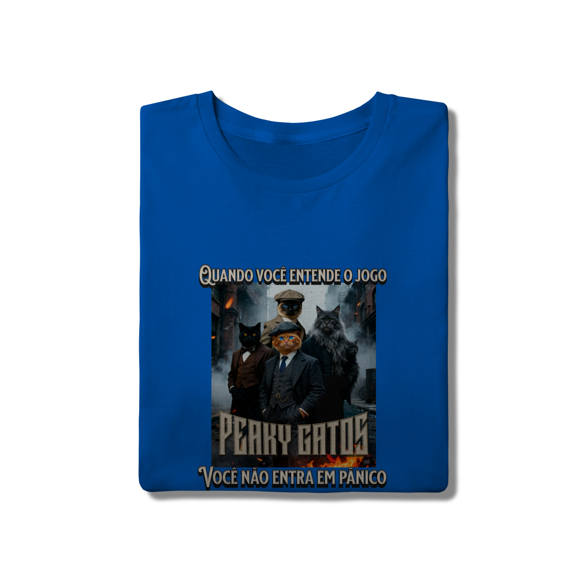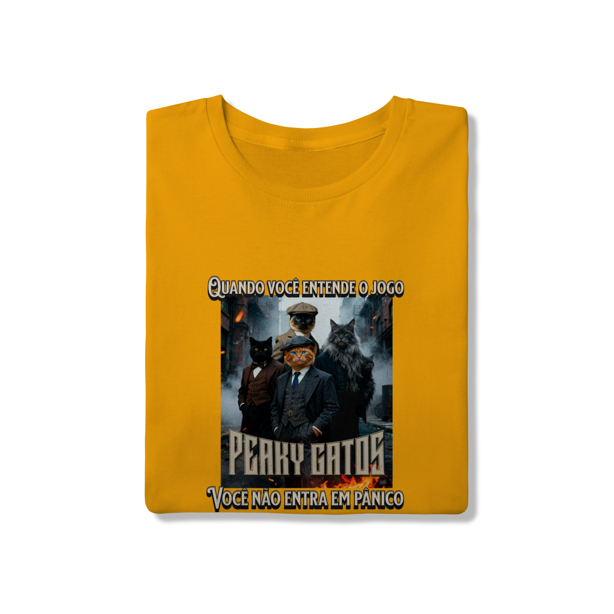 A camiseta Peaky Gatos traz uma paródia divertida no estilo de uma gangue clássica, só que formada por gatos com roupas elegantes e clima de ação. A estampa é estilosa, com visual sombrio e cheio de personalidade, perfeita para quem ama humor, cultura pop e camisetas criativas. Confortável, moderna e ideal para usar no dia a dia ou dar de presente.