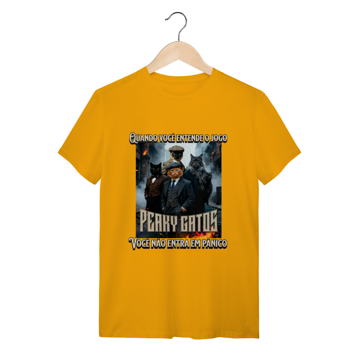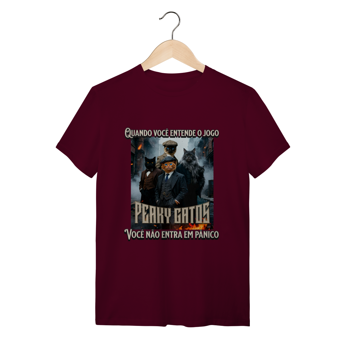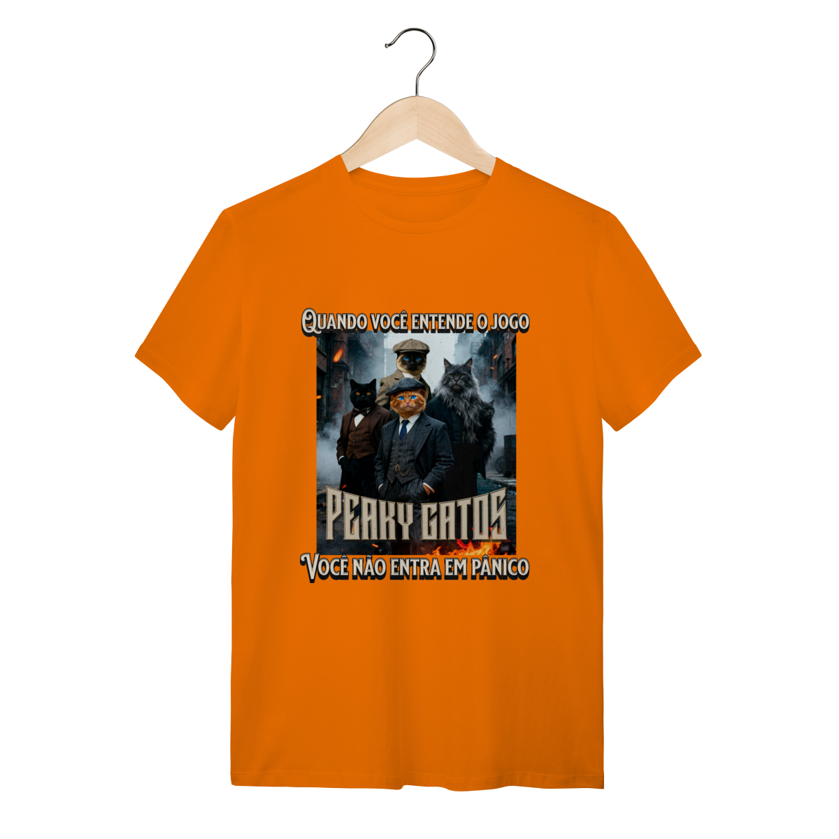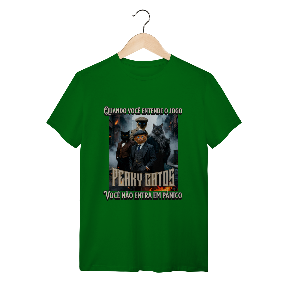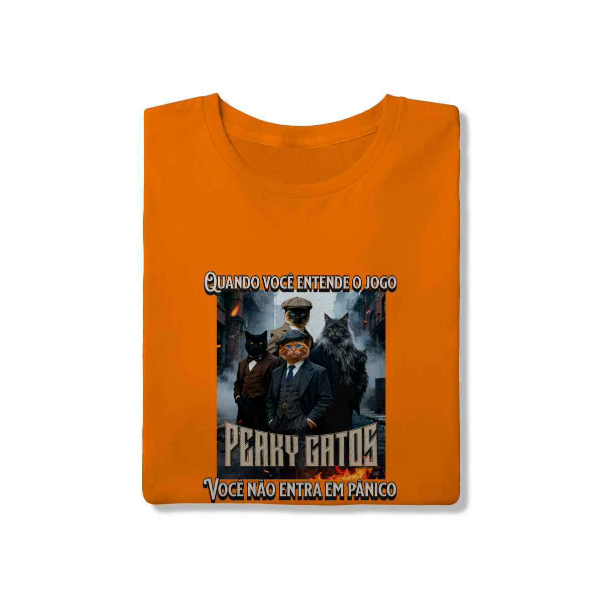 A camiseta Peaky Gatos traz uma paródia divertida no estilo de uma gangue clássica, só que formada por gatos com roupas elegantes e clima de ação. A estampa é estilosa, com visual sombrio e cheio de personalidade, perfeita para quem ama humor, cultura pop e camisetas criativas. Confortável, moderna e ideal para usar no dia a dia ou dar de presente.