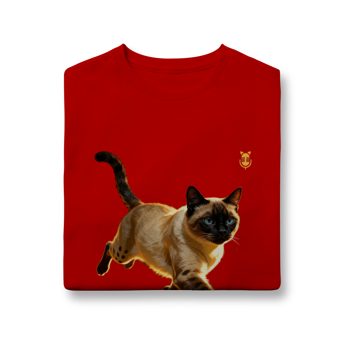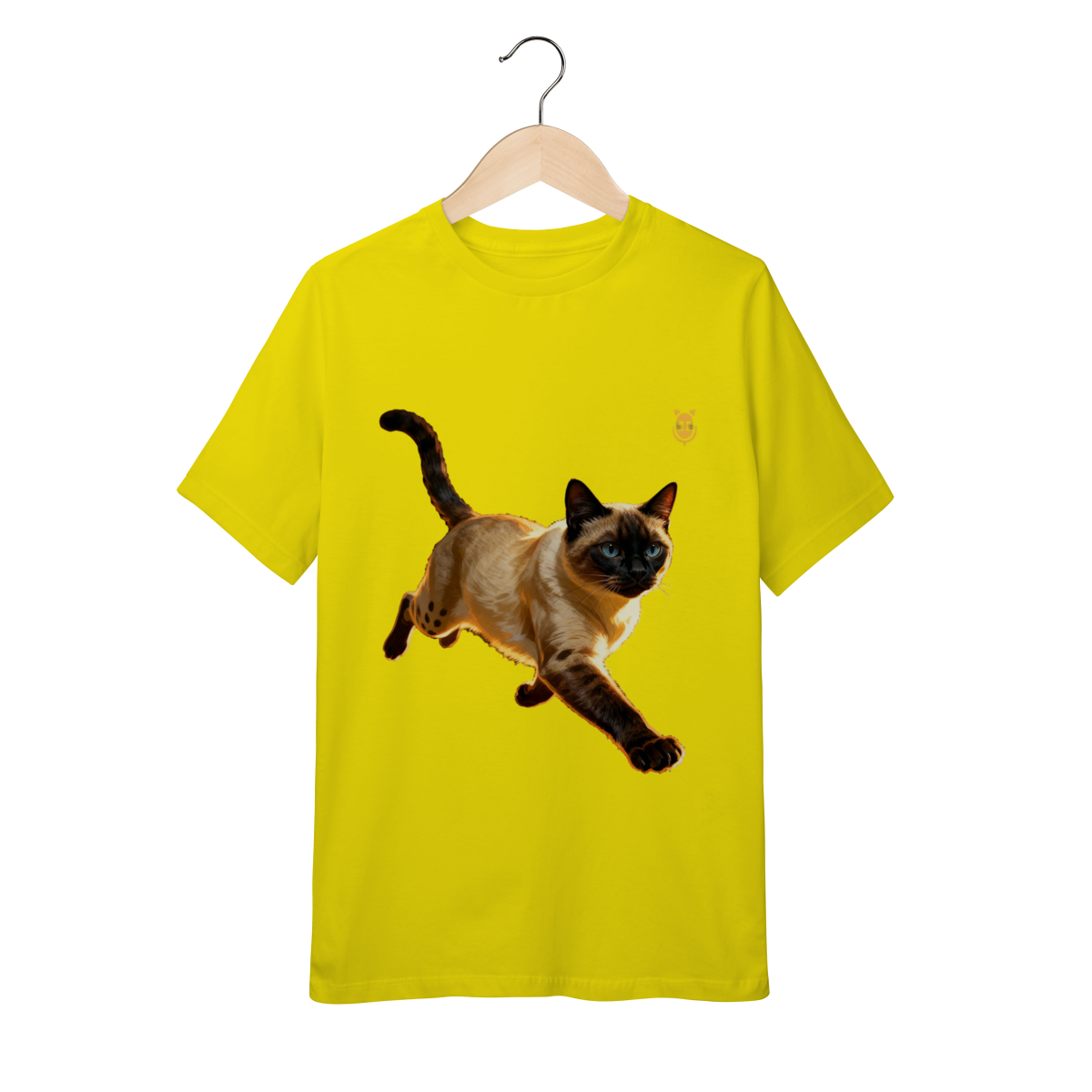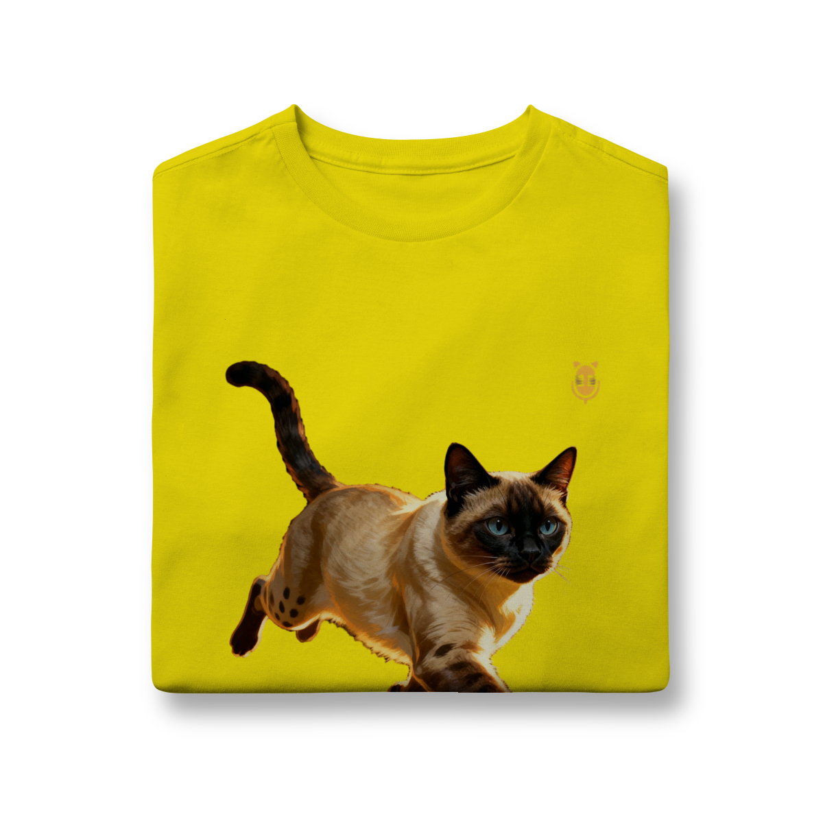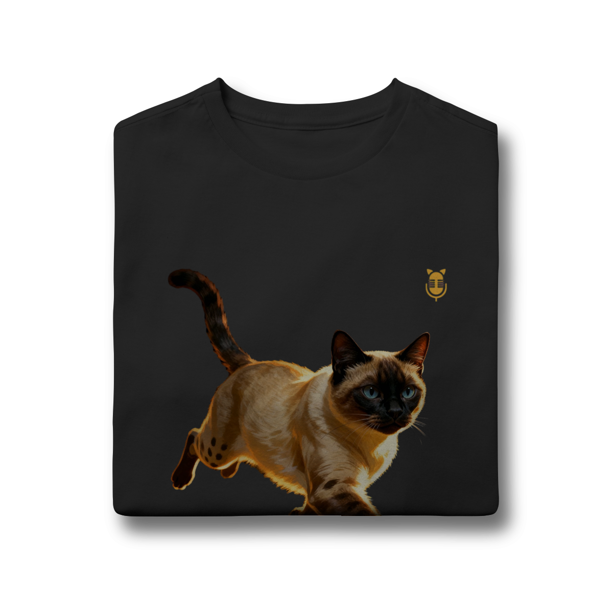 Diretamente do universo cheio de energia de Kikito & Amarelinho, esta estampa traz um gato em movimento, com expressão focada e corpo iluminado por um brilho quente que destaca cada detalhe da pelagem.
