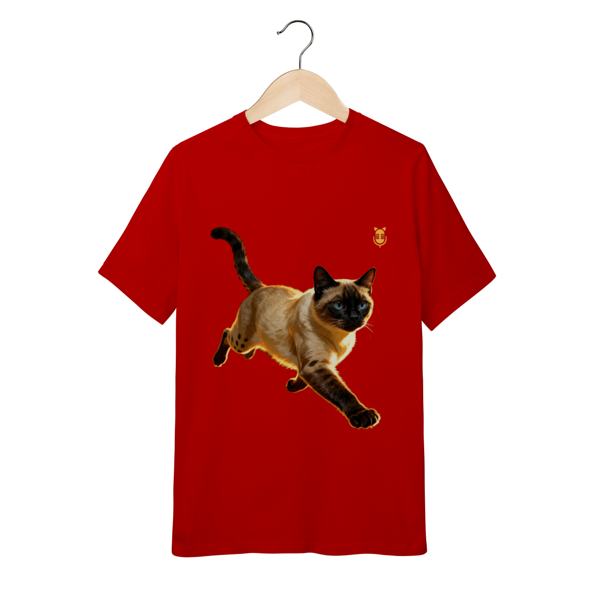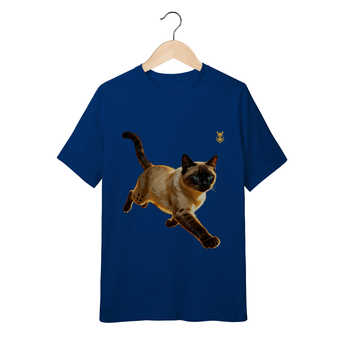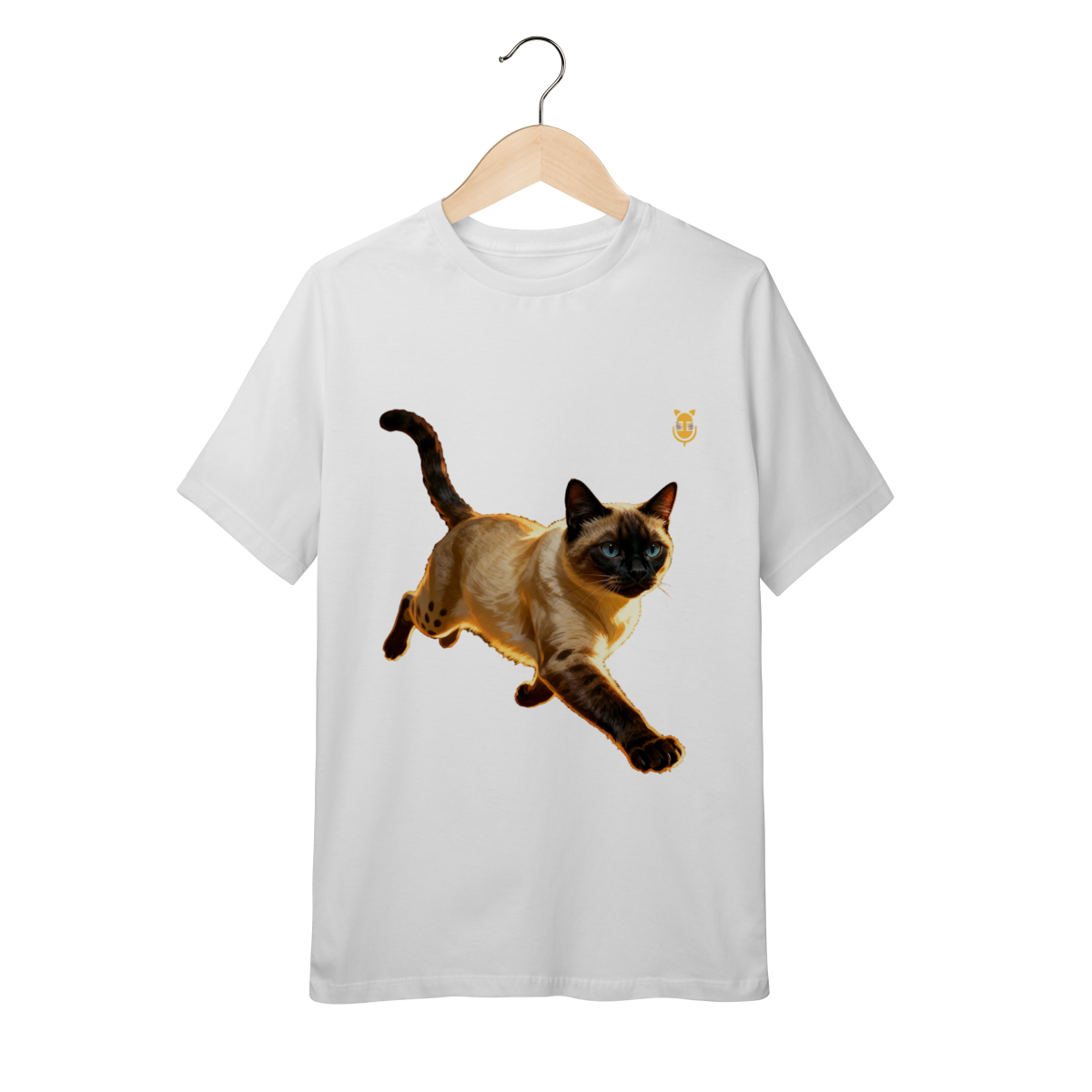 A arte transmite velocidade, atitude e elegância felina, perfeita para quem ama gatos ativos e estampas que passam a sensação de ação e liberdade.