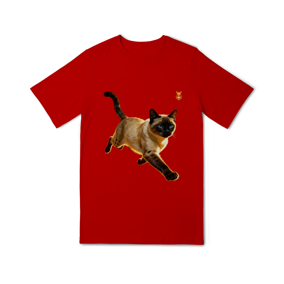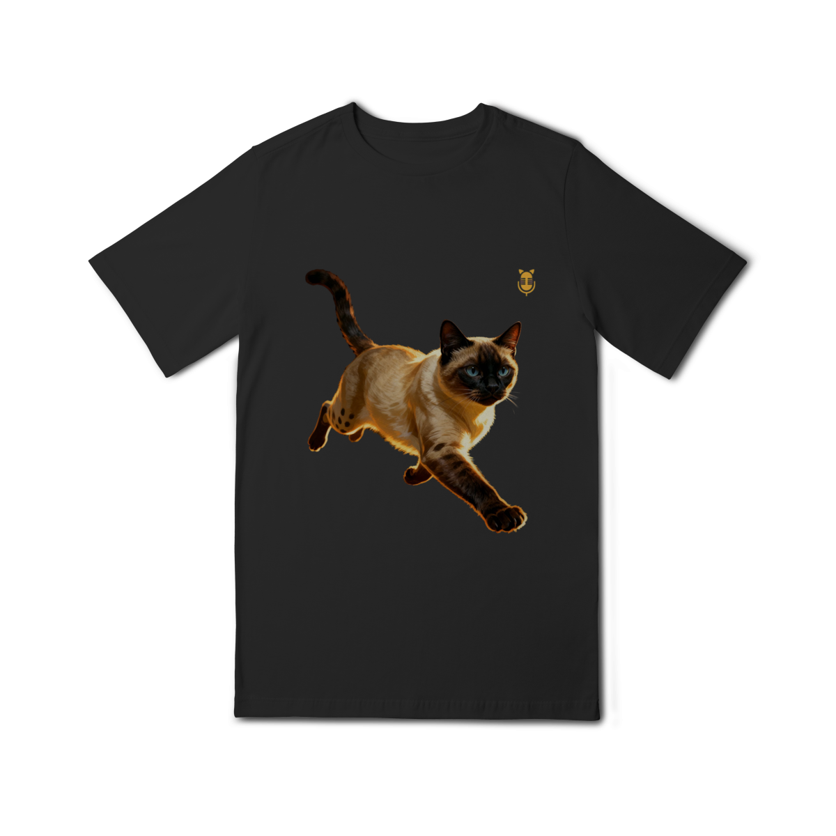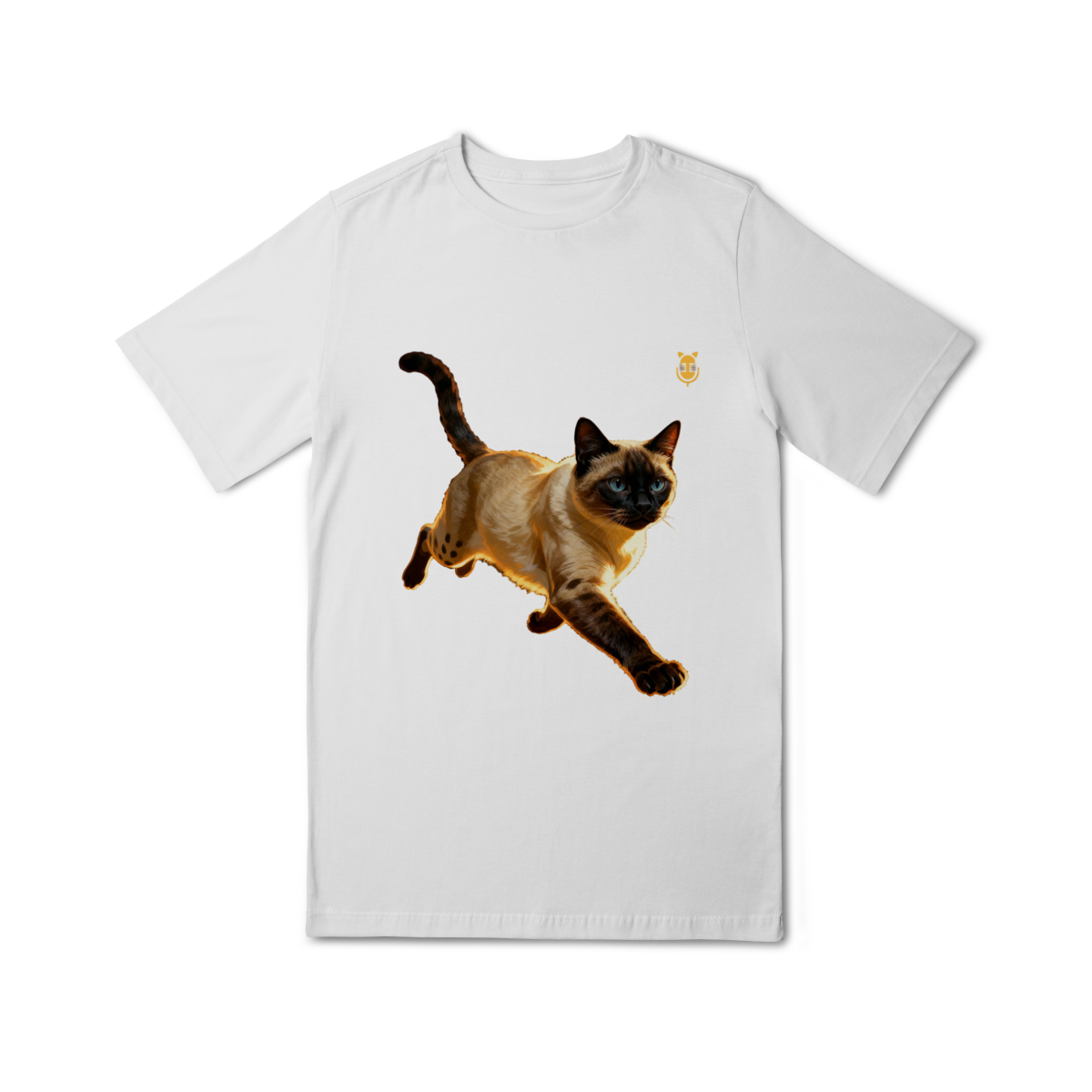A arte transmite velocidade, atitude e elegância felina, perfeita para quem ama gatos ativos e estampas que passam a sensação de ação e liberdade.