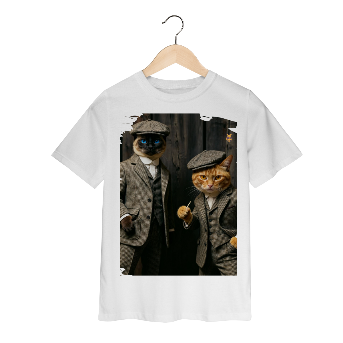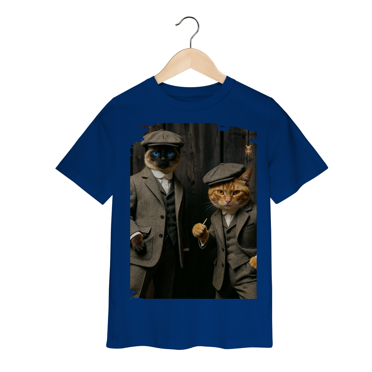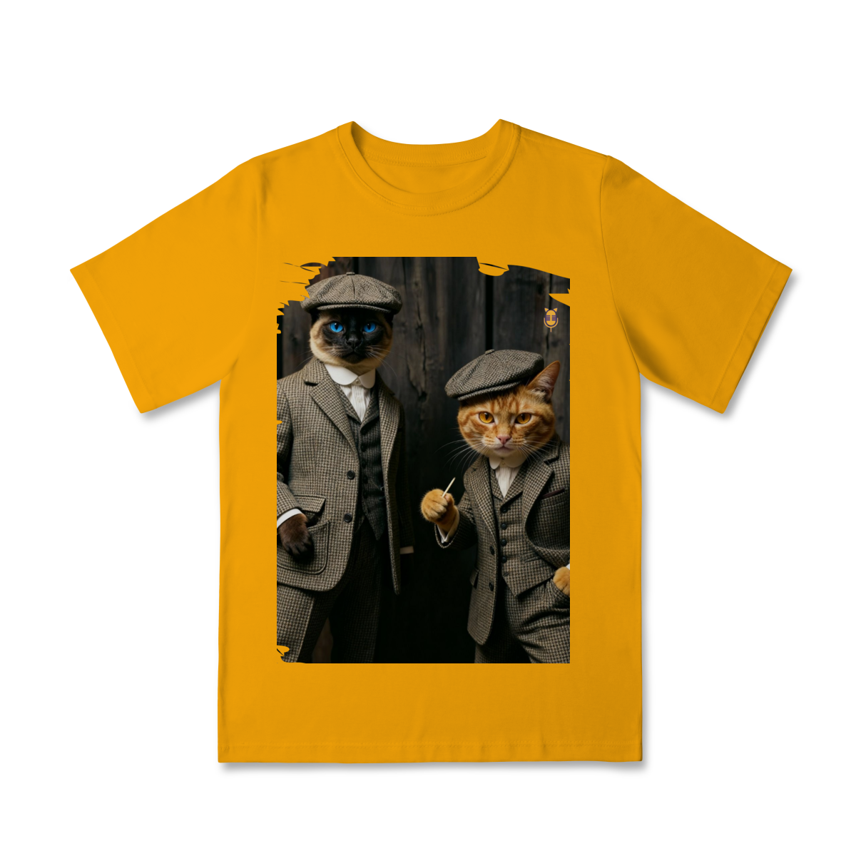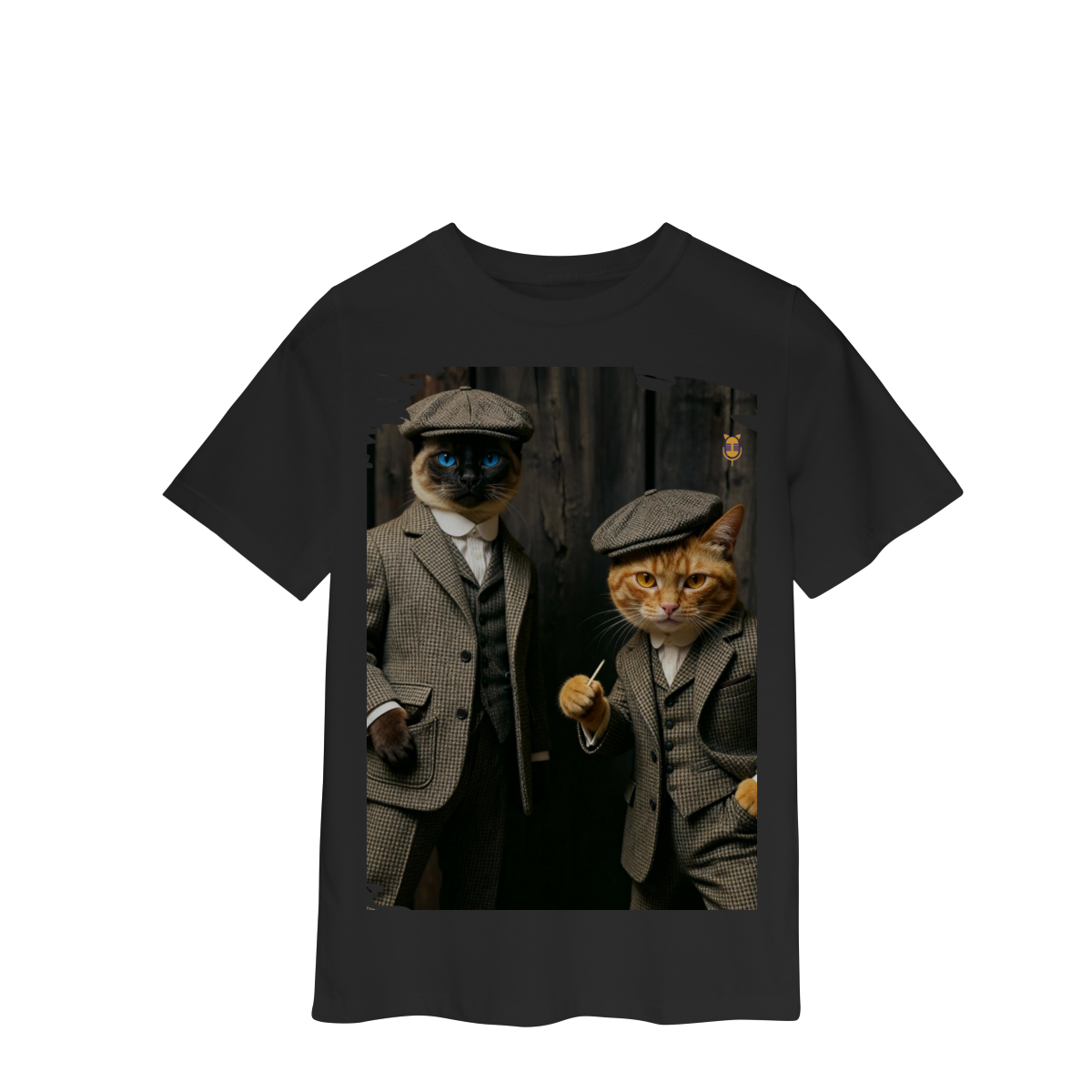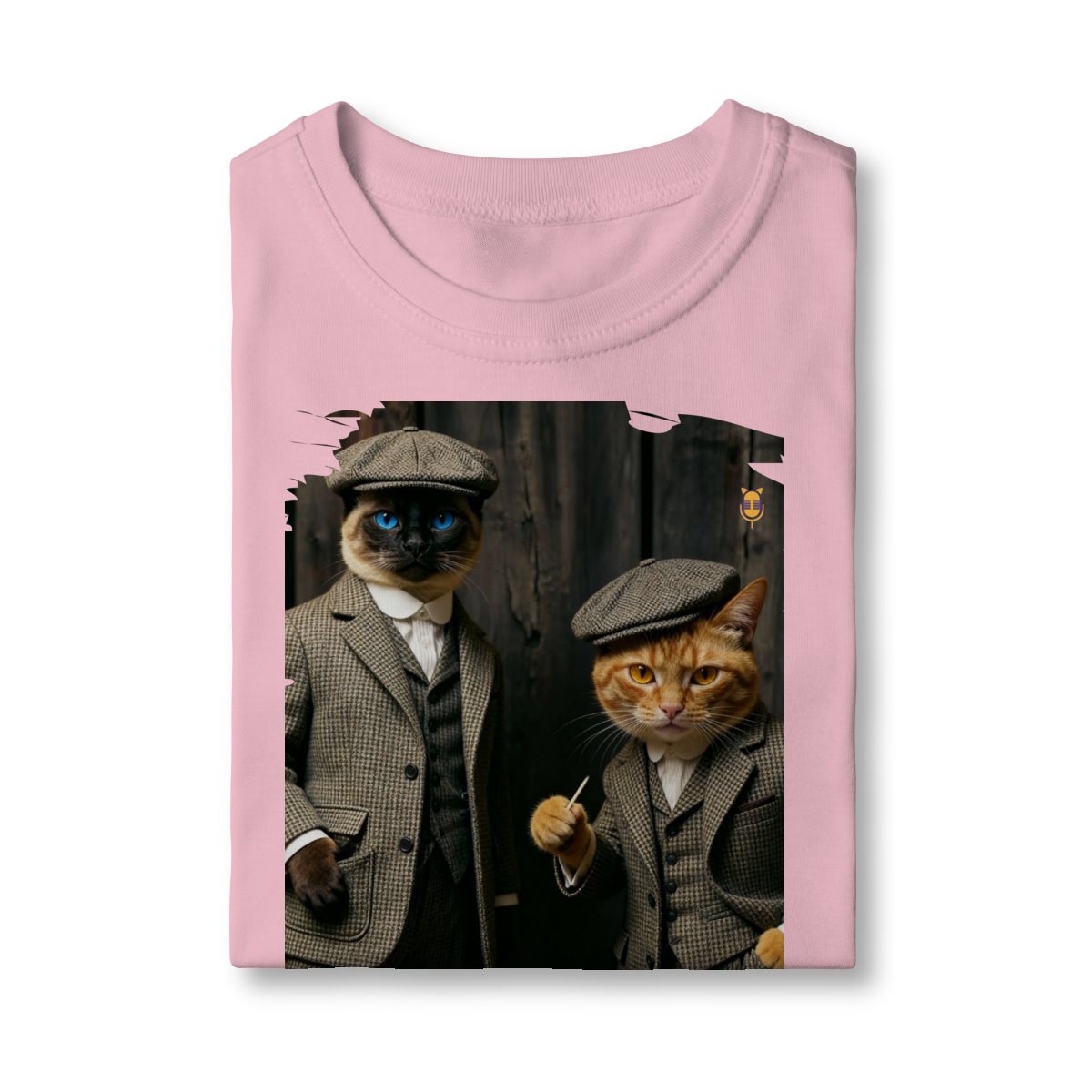 Esta estampa exclusiva traz dois gatos super estilosos vestidos como verdadeiros gângsteres da era vintage. Com ternos xadrez clássicos, boinas tradicionais e poses cheias de atitude, o duo felino transmite charme, humor e personalidade.