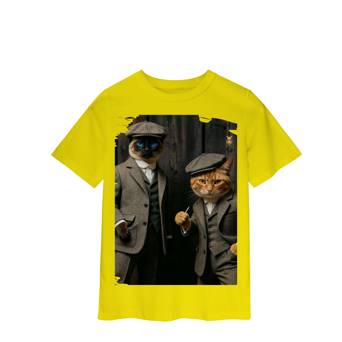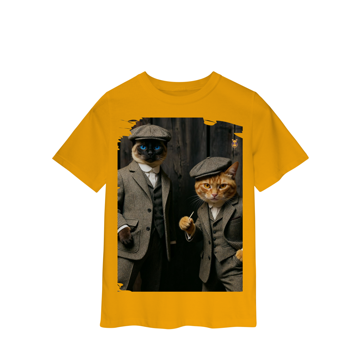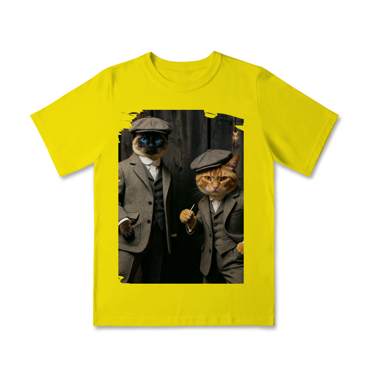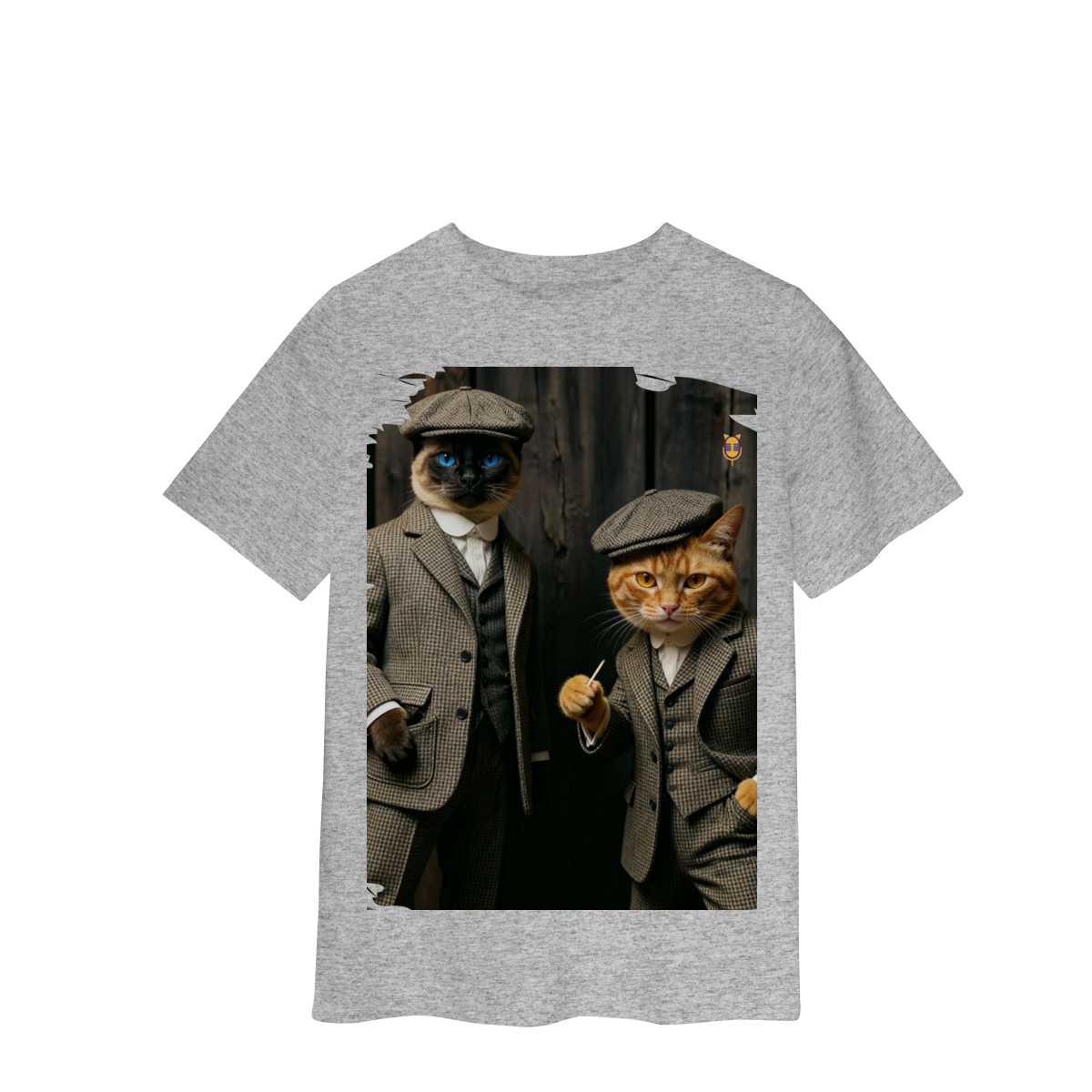 Esta estampa exclusiva traz dois gatos super estilosos vestidos como verdadeiros gângsteres da era vintage. Com ternos xadrez clássicos, boinas tradicionais e poses cheias de atitude, o duo felino transmite charme, humor e personalidade.