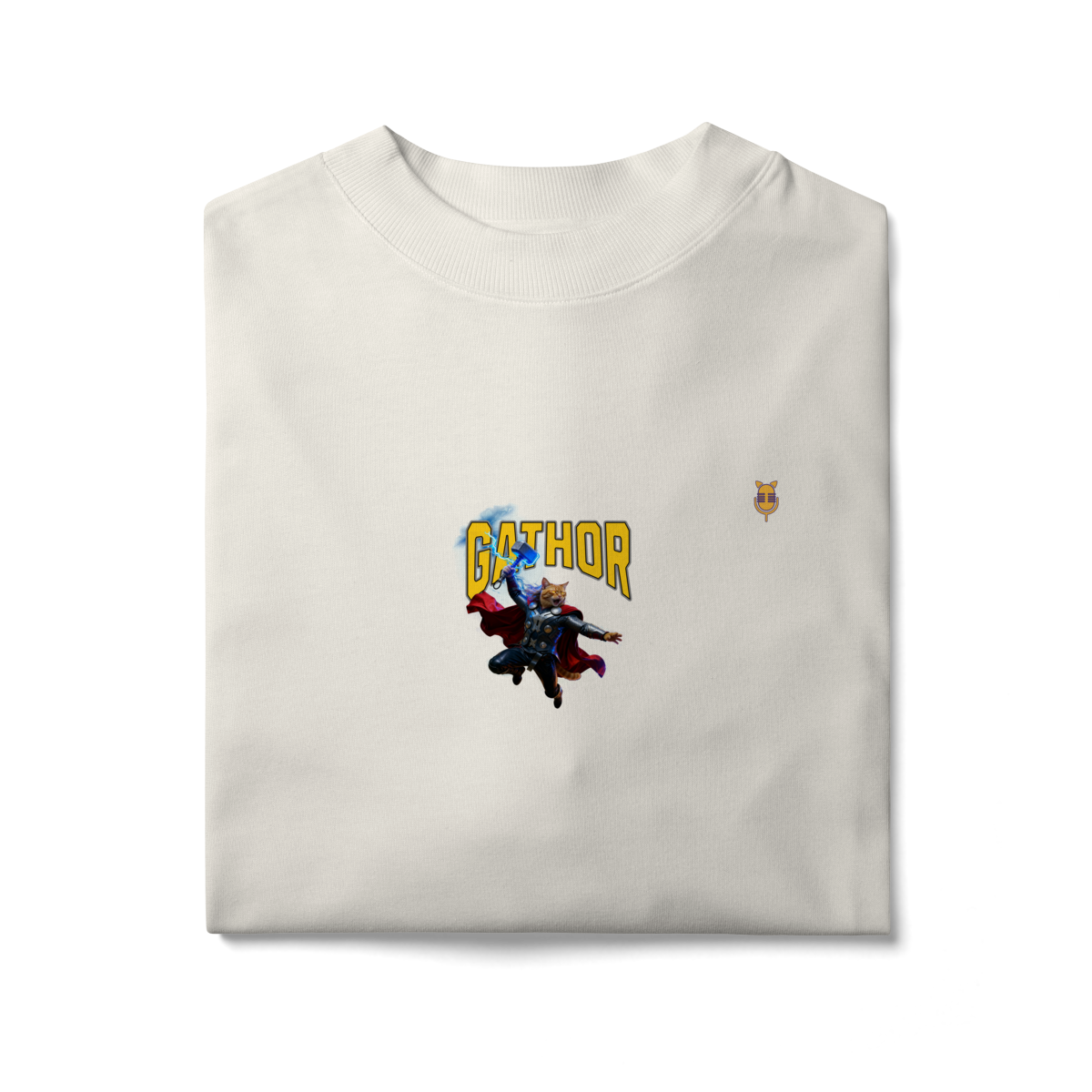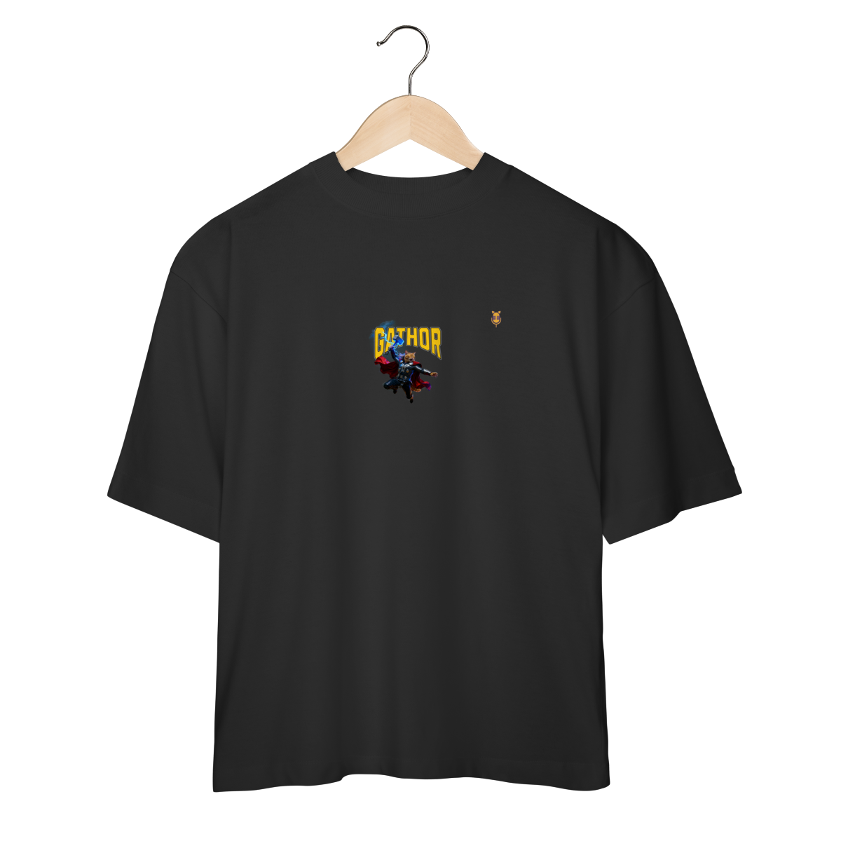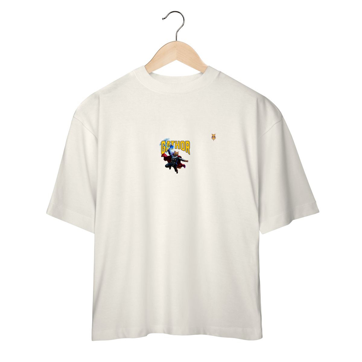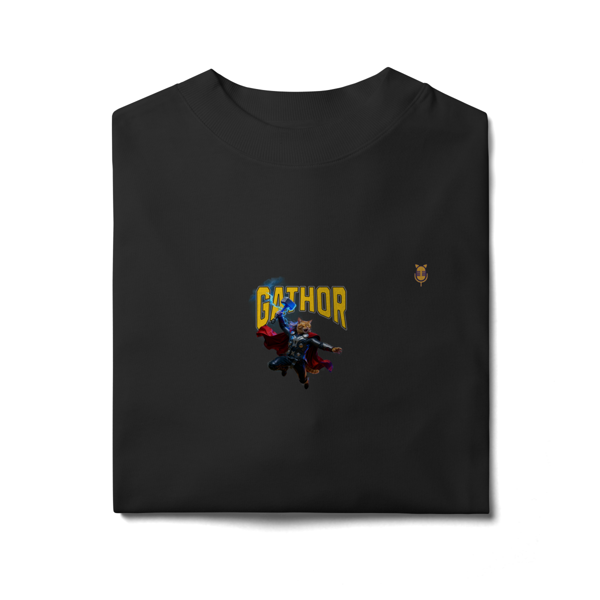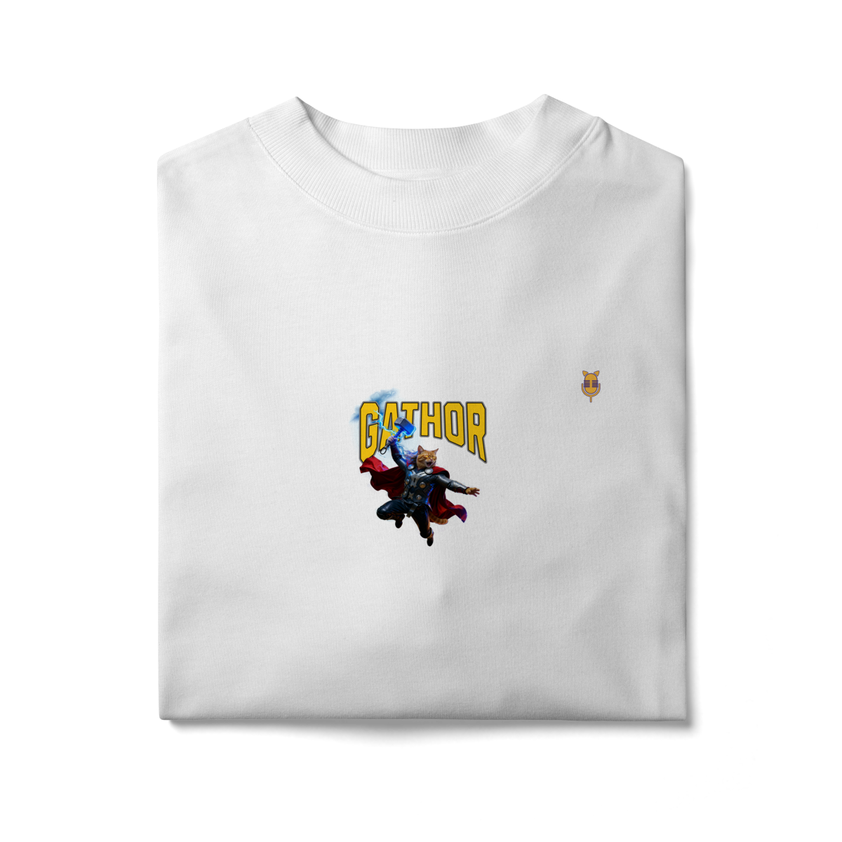 A camiseta Gathor traz uma paródia divertida do deus do trovão, agora reimaginado como um gato herói superpoderoso. A estampa é vibrante, cheia de ação e perfeita para quem ama gatos, humor e cultura pop. Confortável e estilosa, é uma ótima opção para usar no dia a dia ou presentear alguém que adora camisetas criativas.