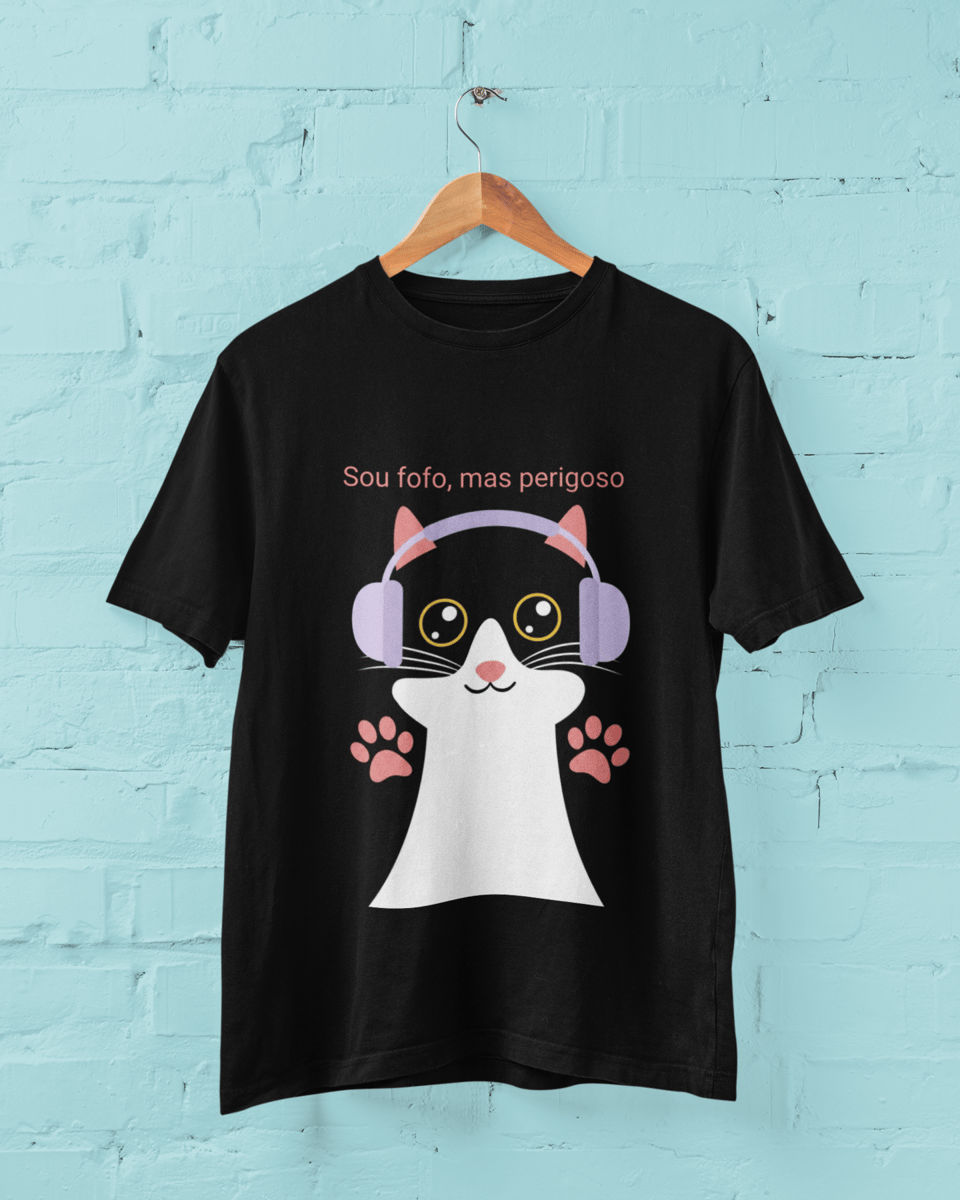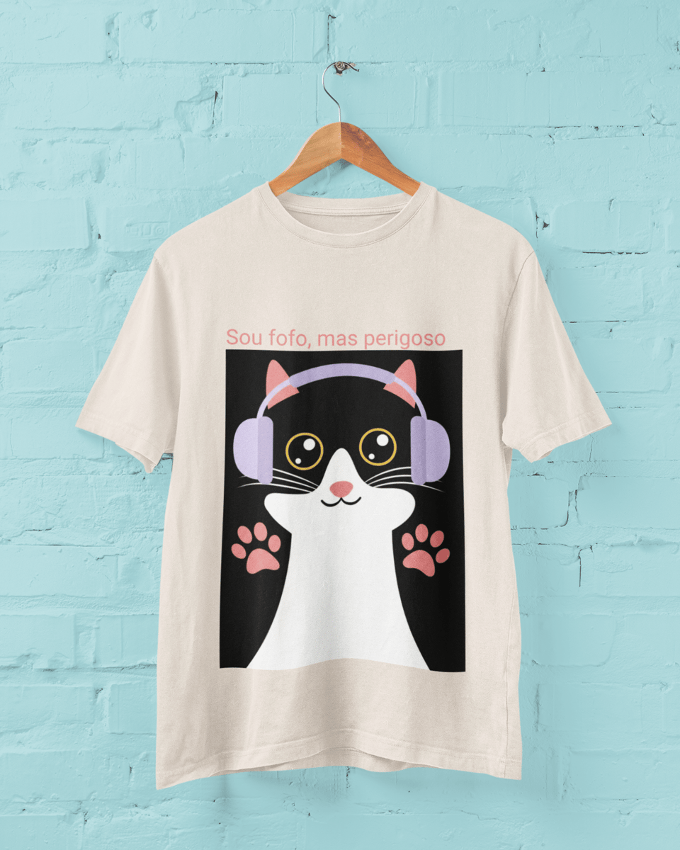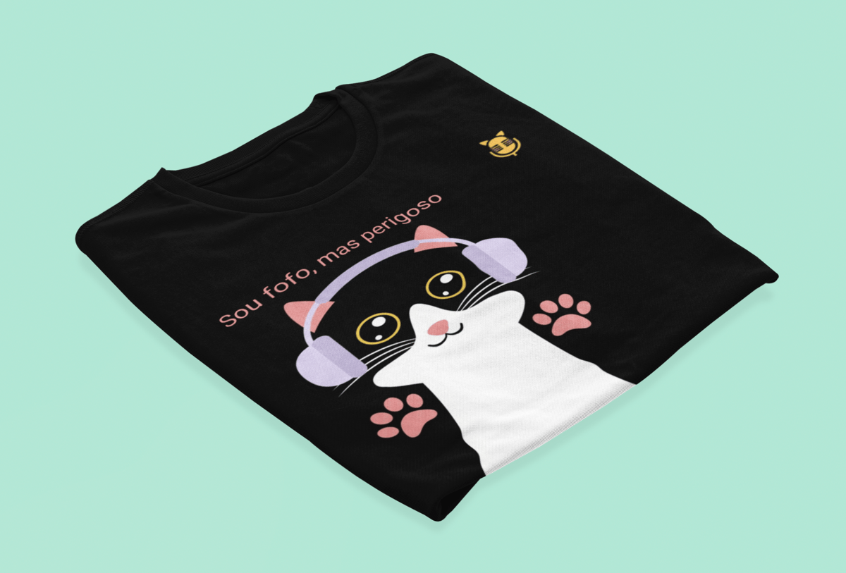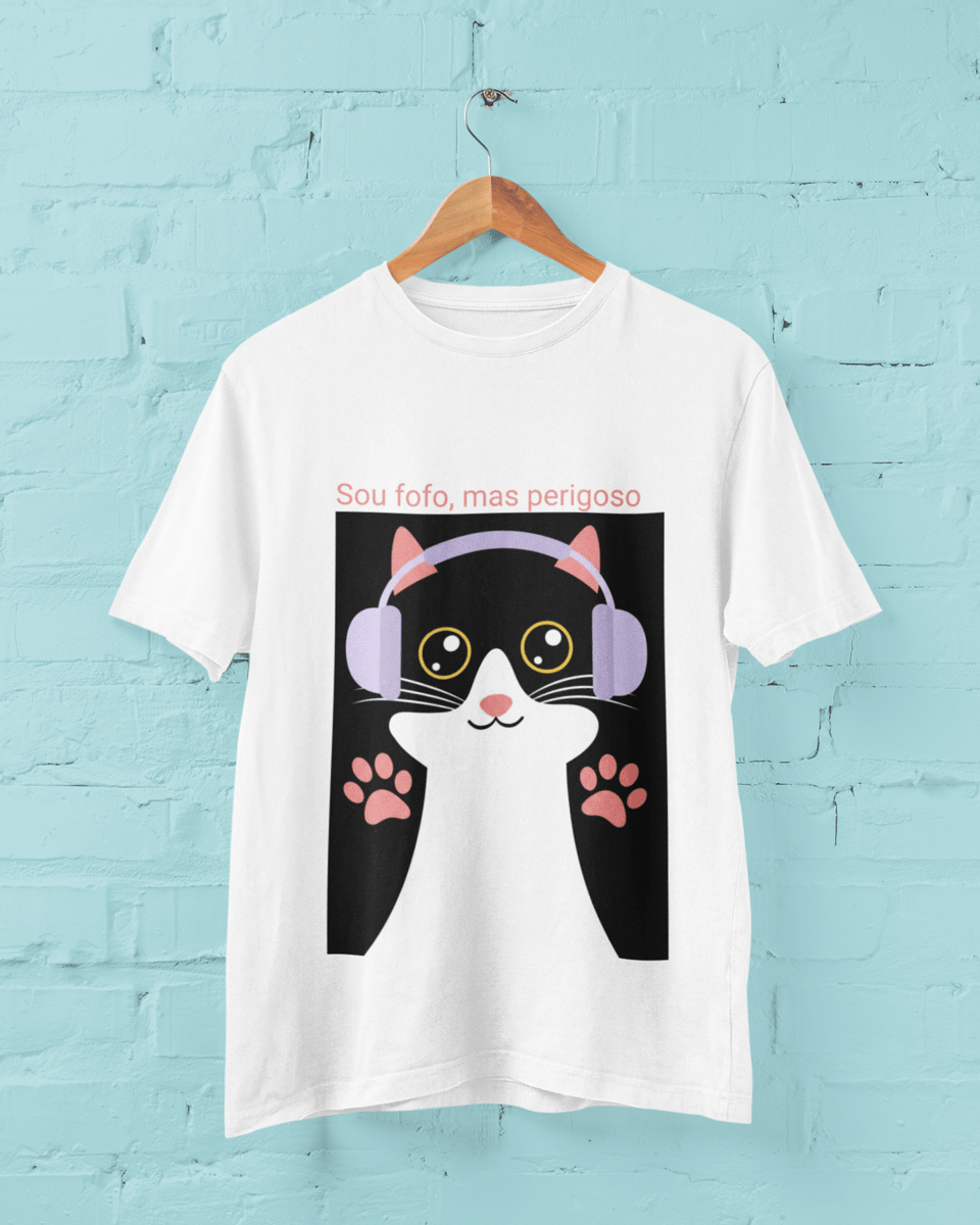 Prepare-se para virar o centro das atenções felinas. A camiseta Fofo, Mas Perigoso traz um gatinho estiloso com headset e aquele olhar inocente… mas que você sabe que esconde pura atitude. Perfeita para quem é 90% fofura e 10% caos controlado.