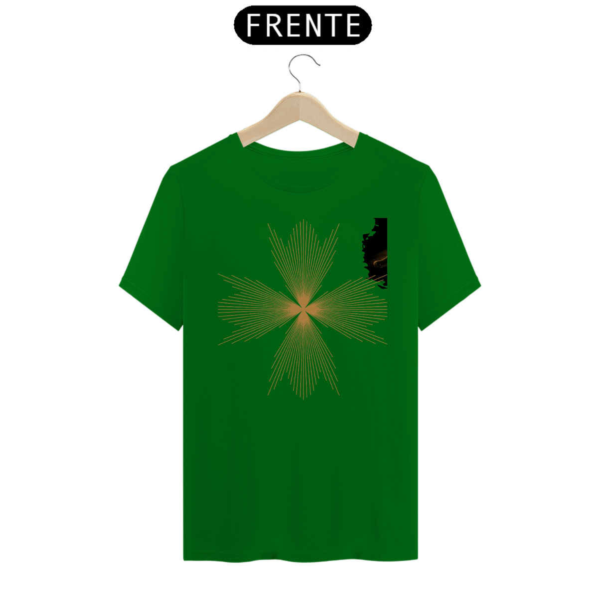 A  Golden Bloom – Edição Minimal traz uma composição geométrica em traços dourados que se expandem como uma flor abstrata.