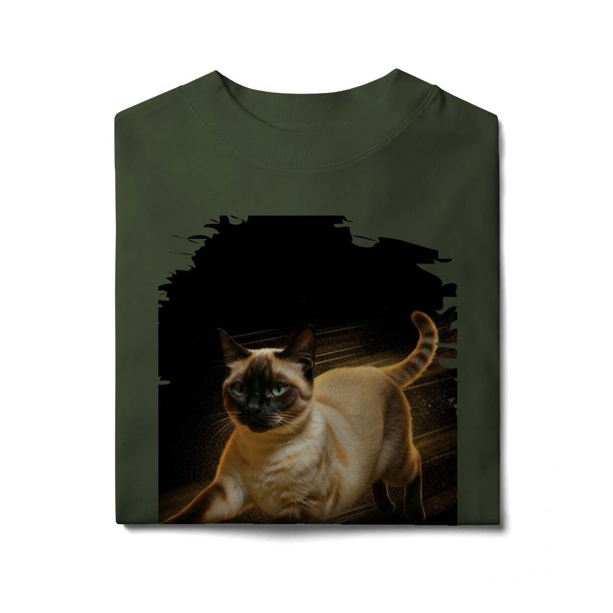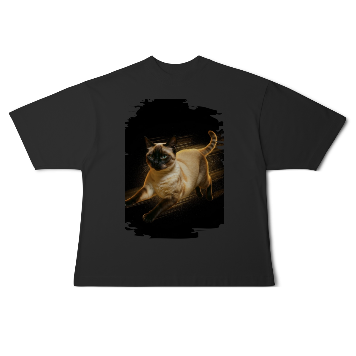 Diretamente do universo cheio de energia de Kikito & Amarelinho, esta estampa traz um gato em movimento, com expressão focada e corpo iluminado por um brilho quente que destaca cada detalhe da pelagem.
