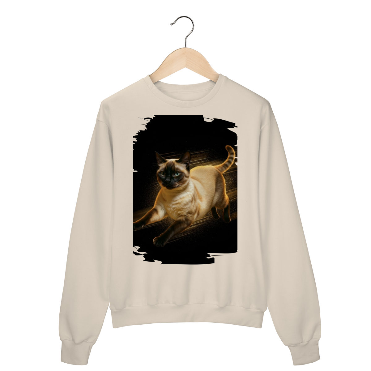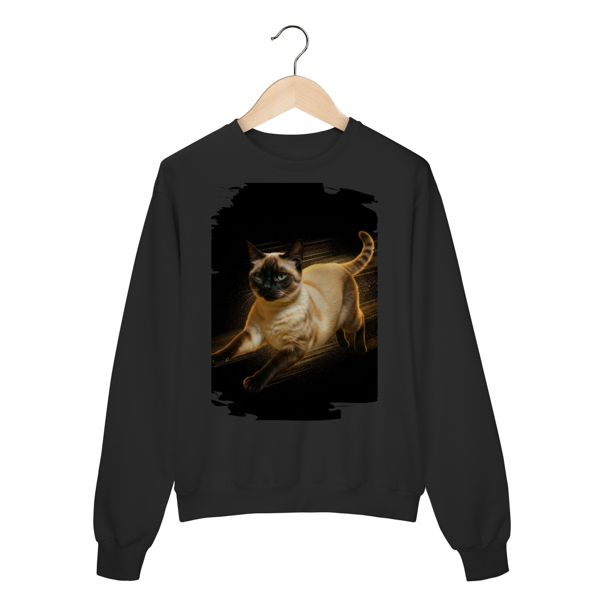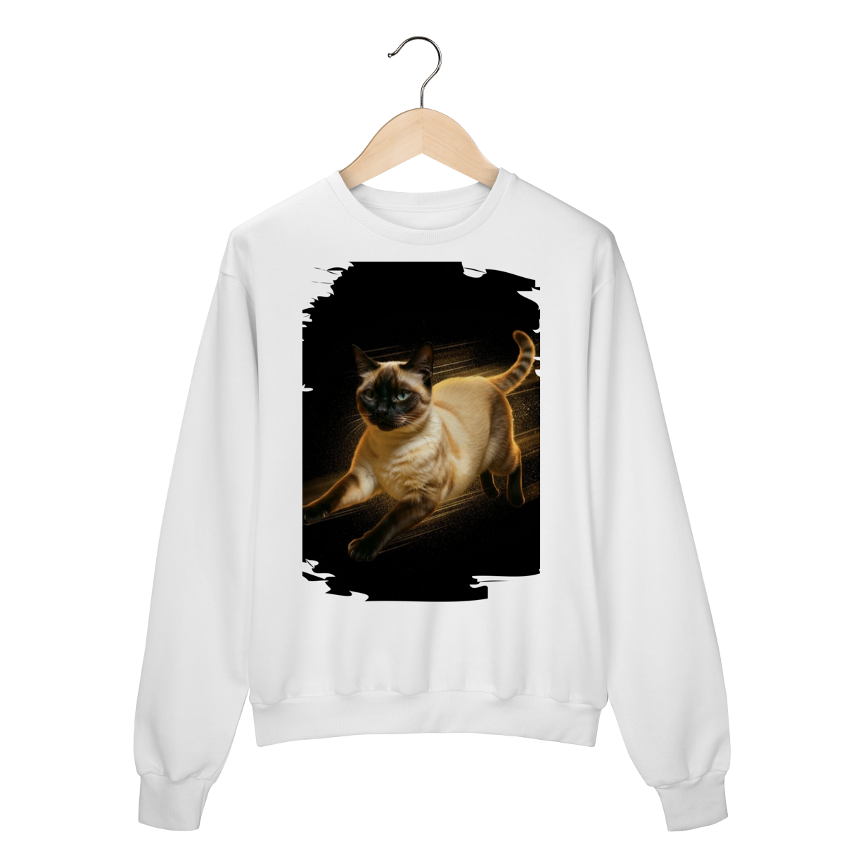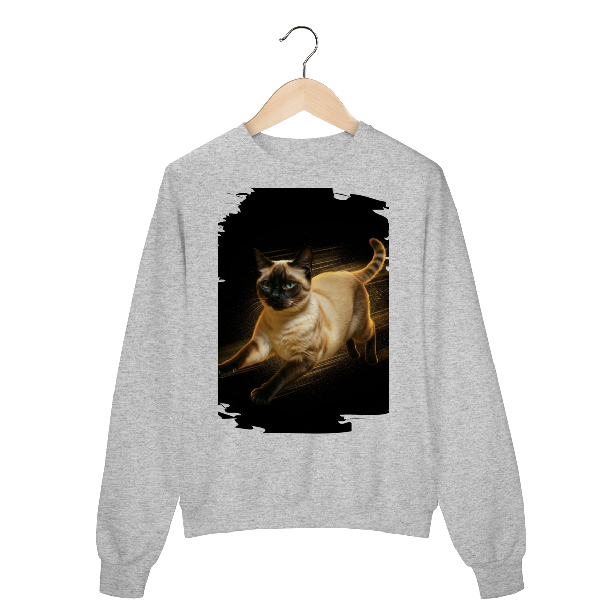 A arte transmite velocidade, atitude e elegância felina, perfeita para quem ama gatos ativos e estampas que passam a sensação de ação e liberdade.