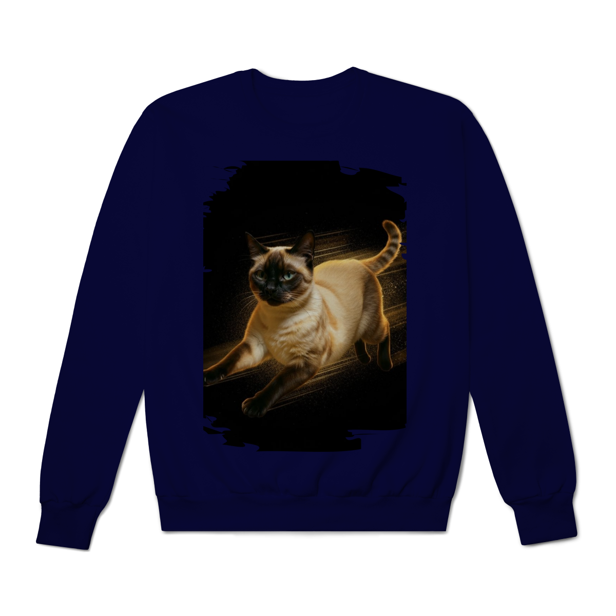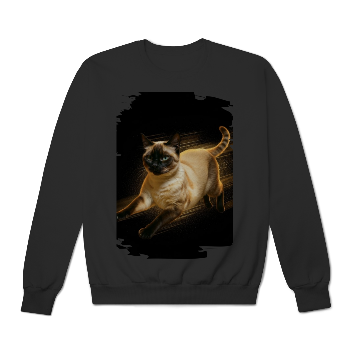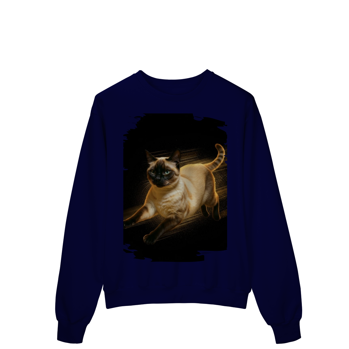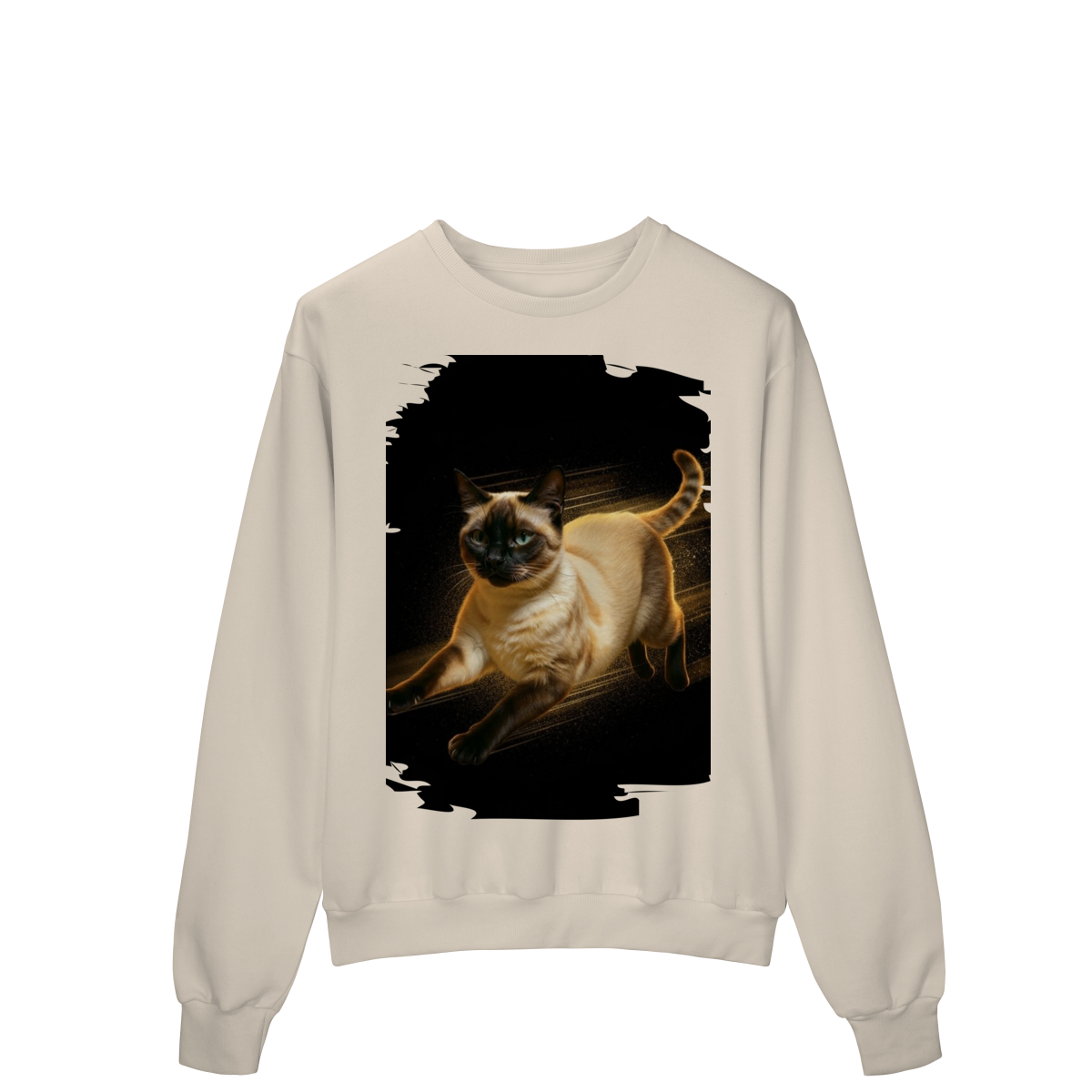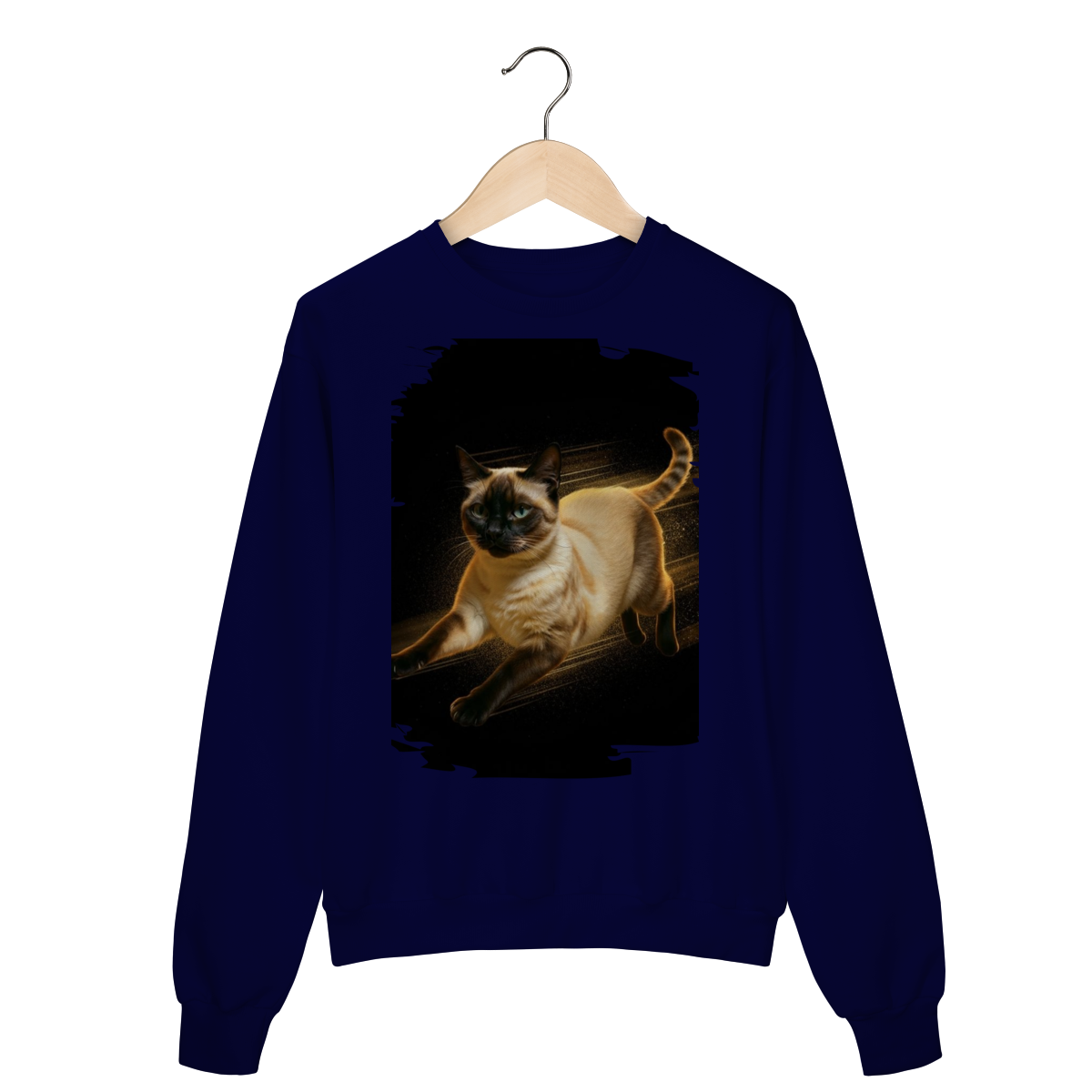 A arte transmite velocidade, atitude e elegância felina, perfeita para quem ama gatos ativos e estampas que passam a sensação de ação e liberdade.