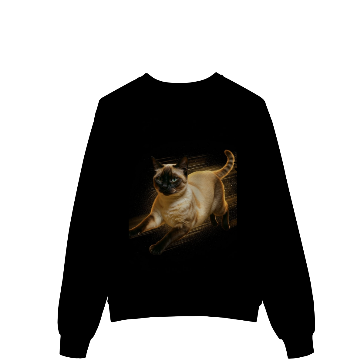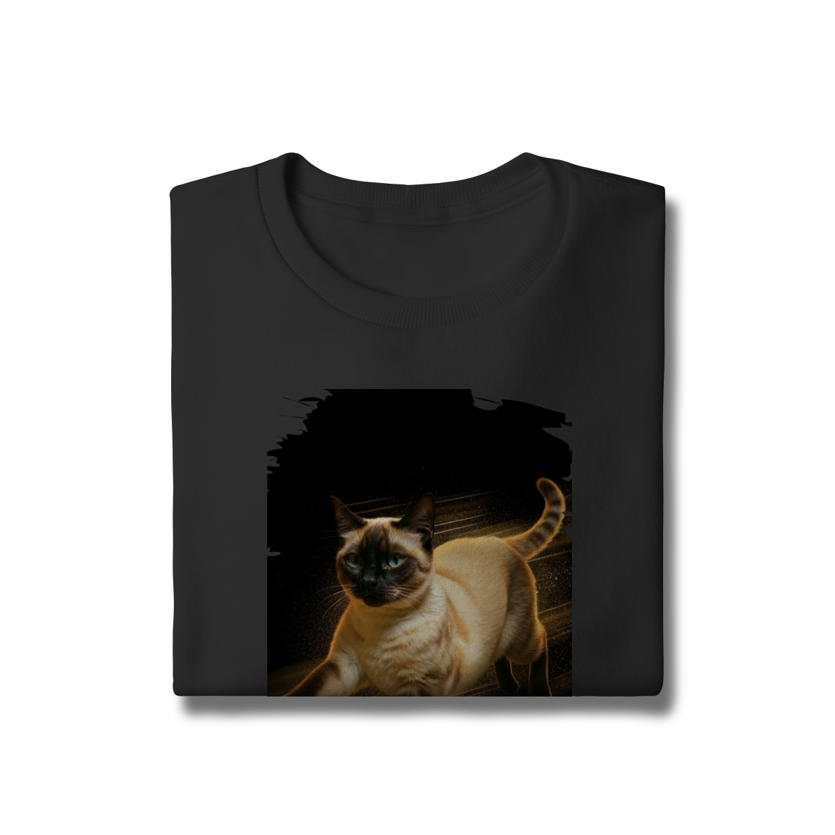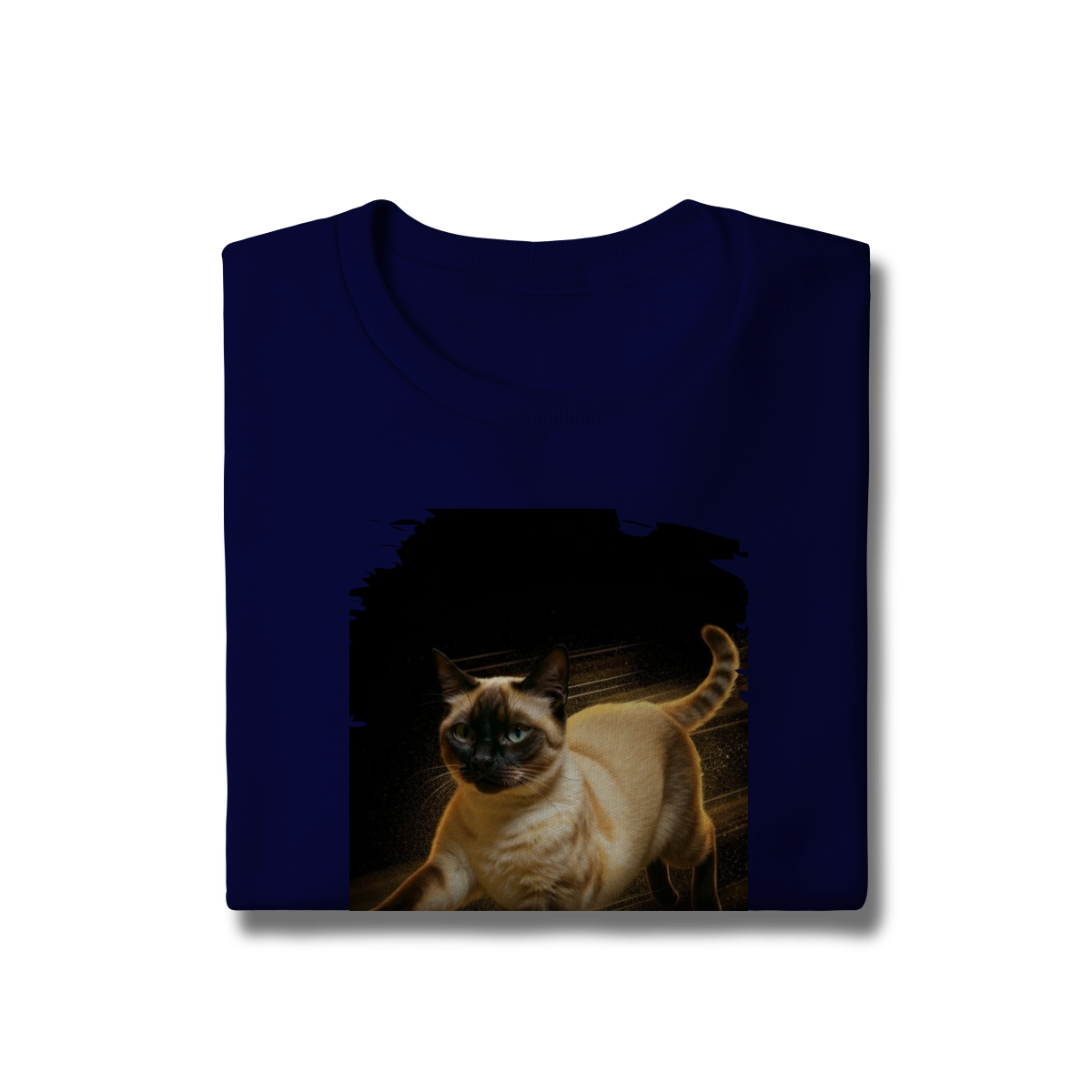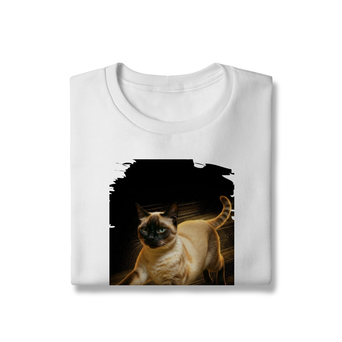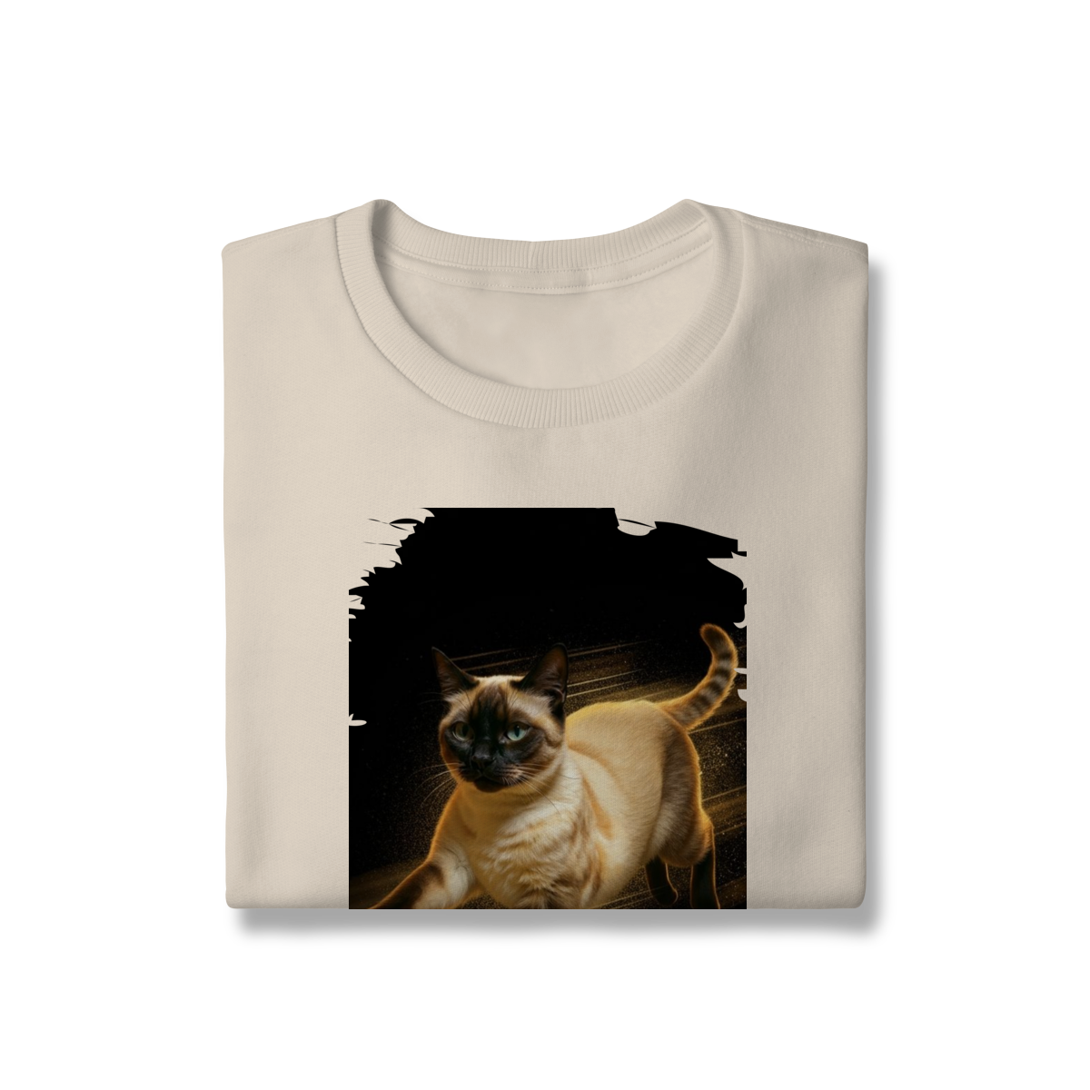 Diretamente do universo cheio de energia de Kikito & Amarelinho, esta estampa traz um gato em movimento, com expressão focada e corpo iluminado por um brilho quente que destaca cada detalhe da pelagem.