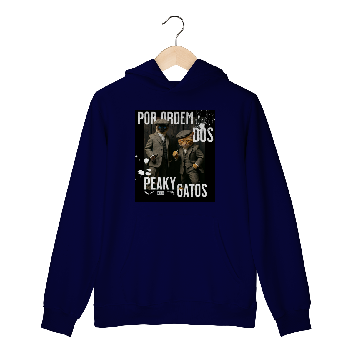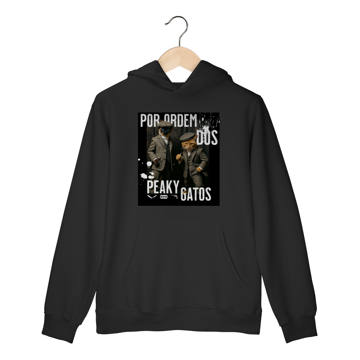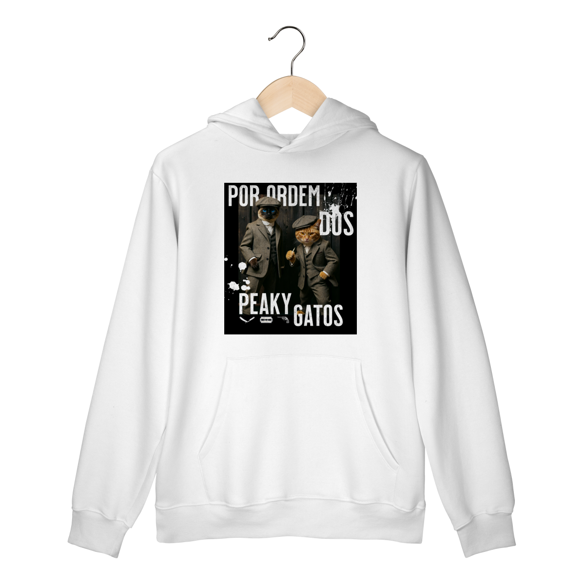 O Moletom Peaky Gatos traz uma paródia divertida no estilo de uma gangue clássica, agora representada por dois gatos vestidos de maneira elegante e com aquele ar sério típico dos personagens. A estampa tem visual marcante, moderno e cheio de atitude, perfeita para quem gosta de cultura pop, humor e camisetas criativas. Confortável e estilosa, combina com qualquer look do dia a dia.