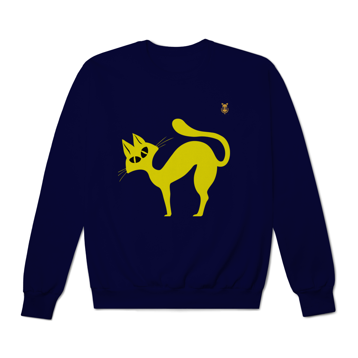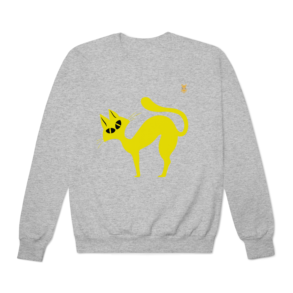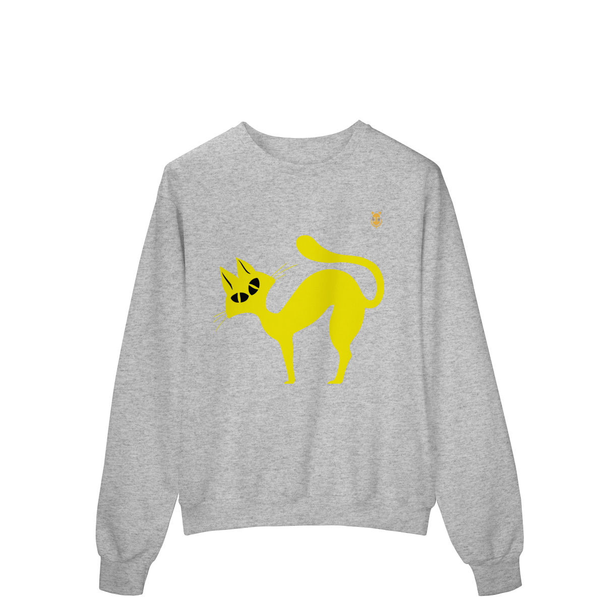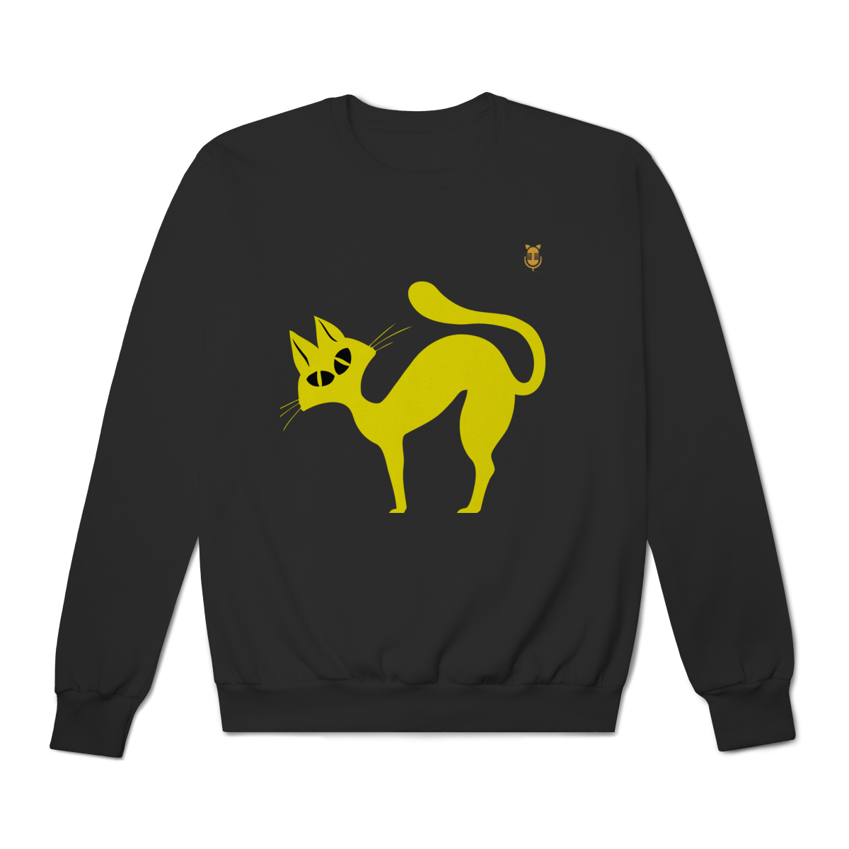 A  Gato Curioso traz um felino estilizado em linhas fluidas amarelas, com expressão intrigante e charme minimalista.