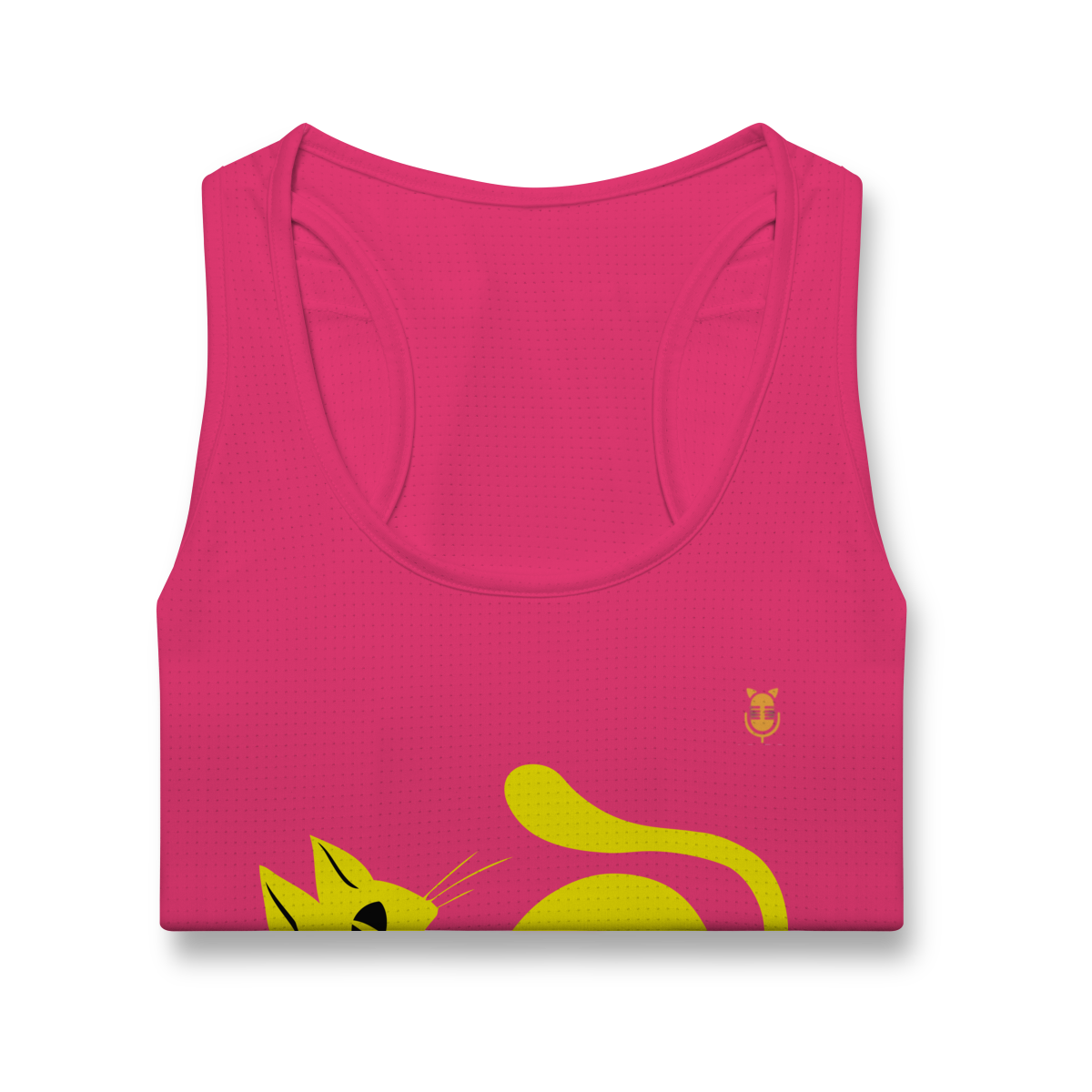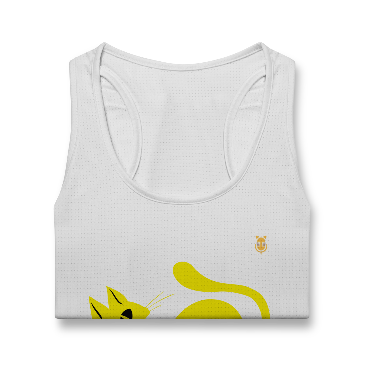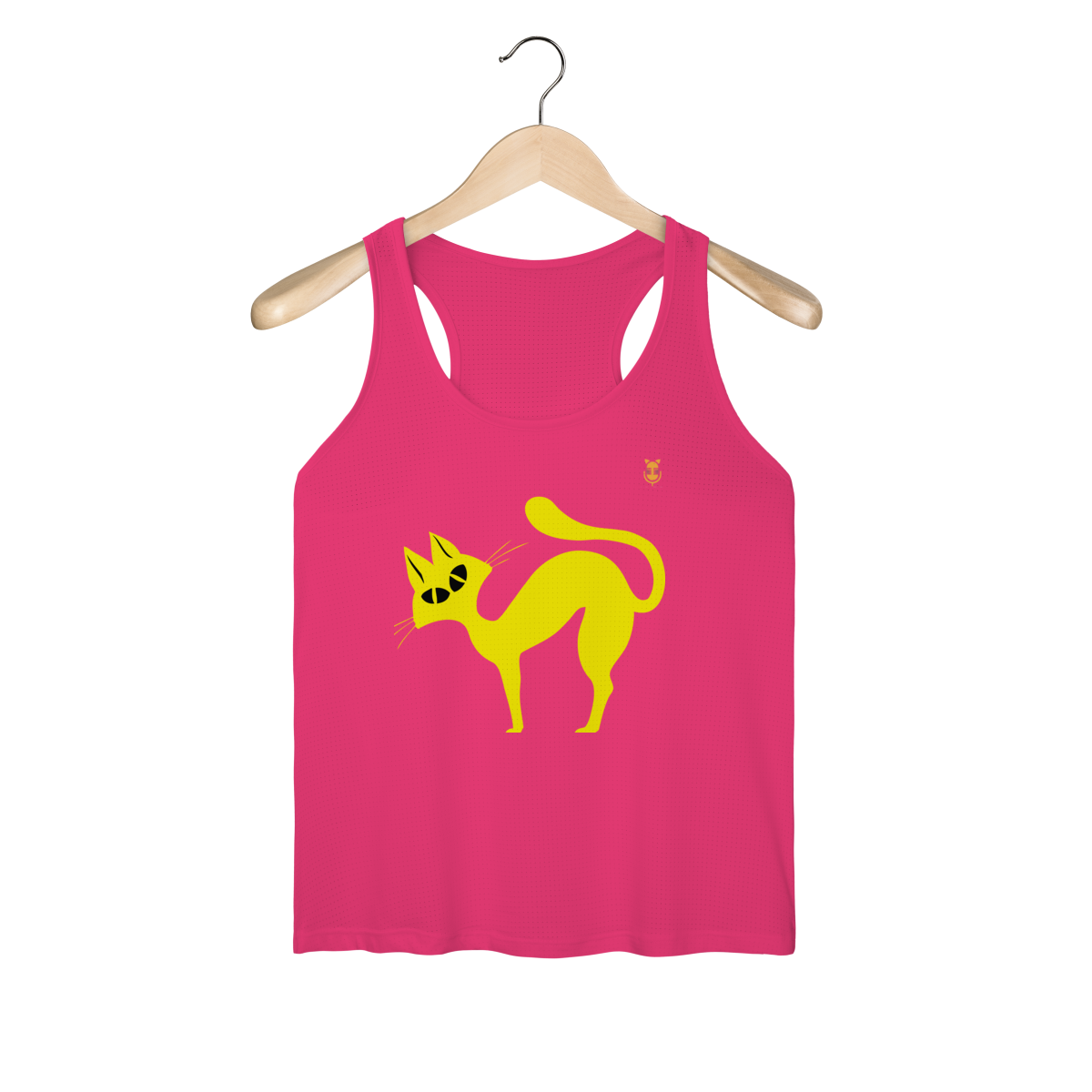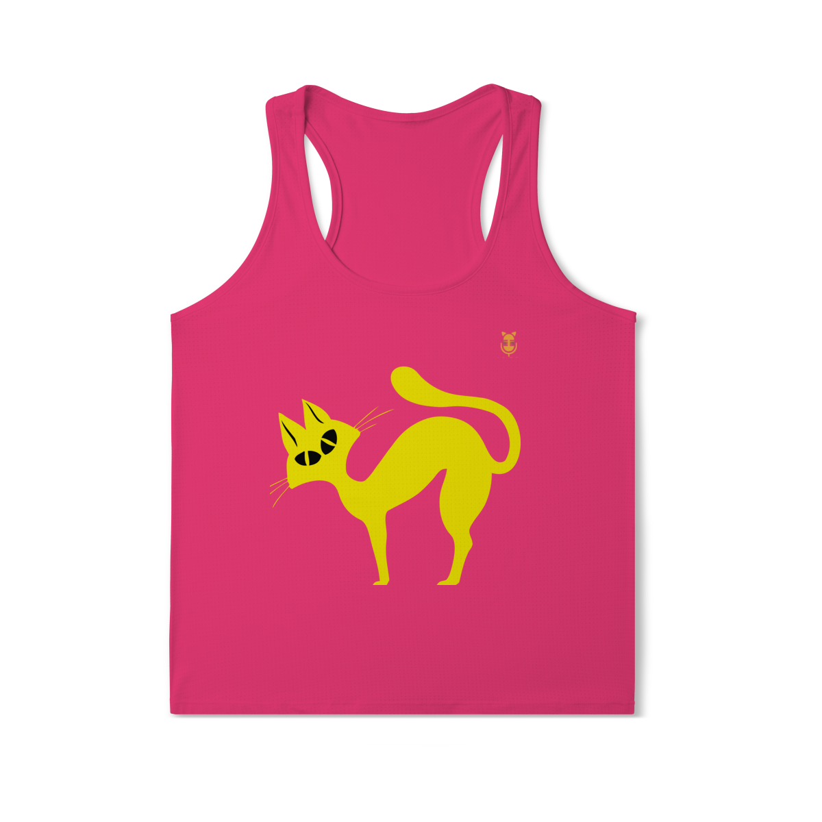 A  Gato Curioso traz um felino estilizado em linhas fluidas amarelas, com expressão intrigante e charme minimalista.