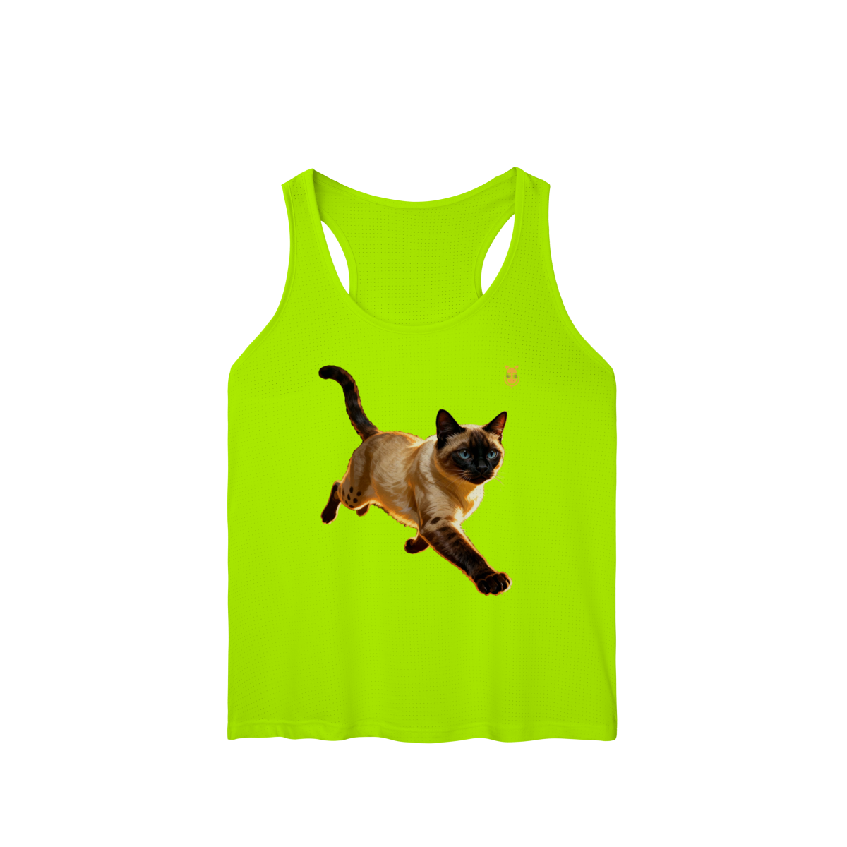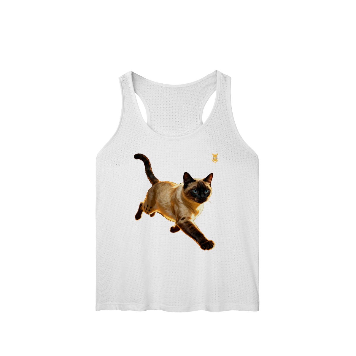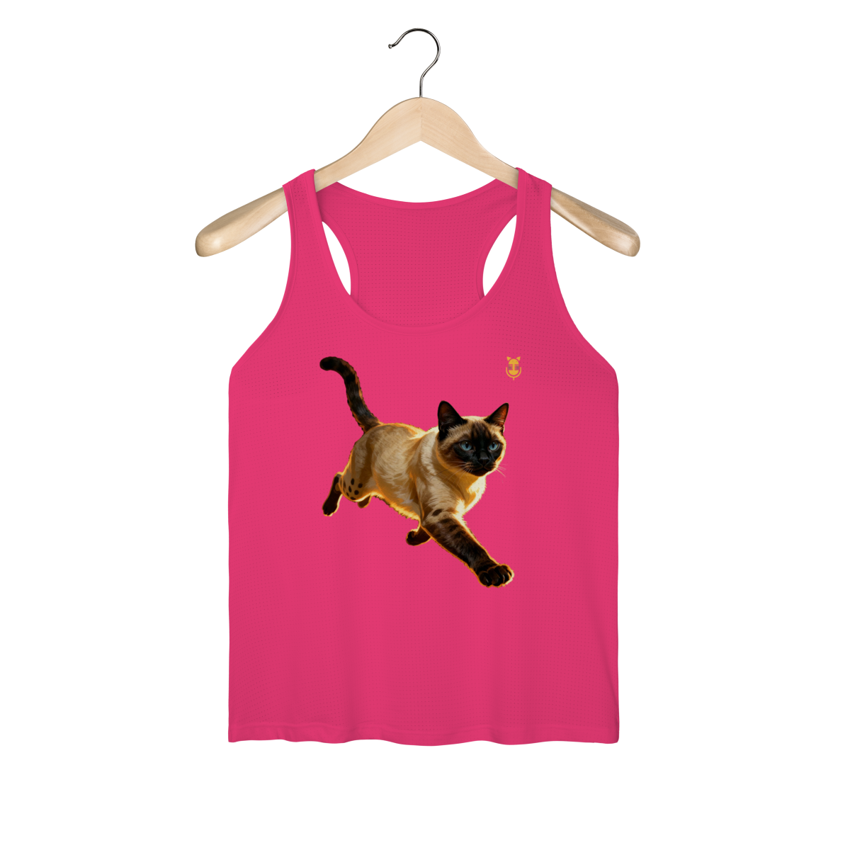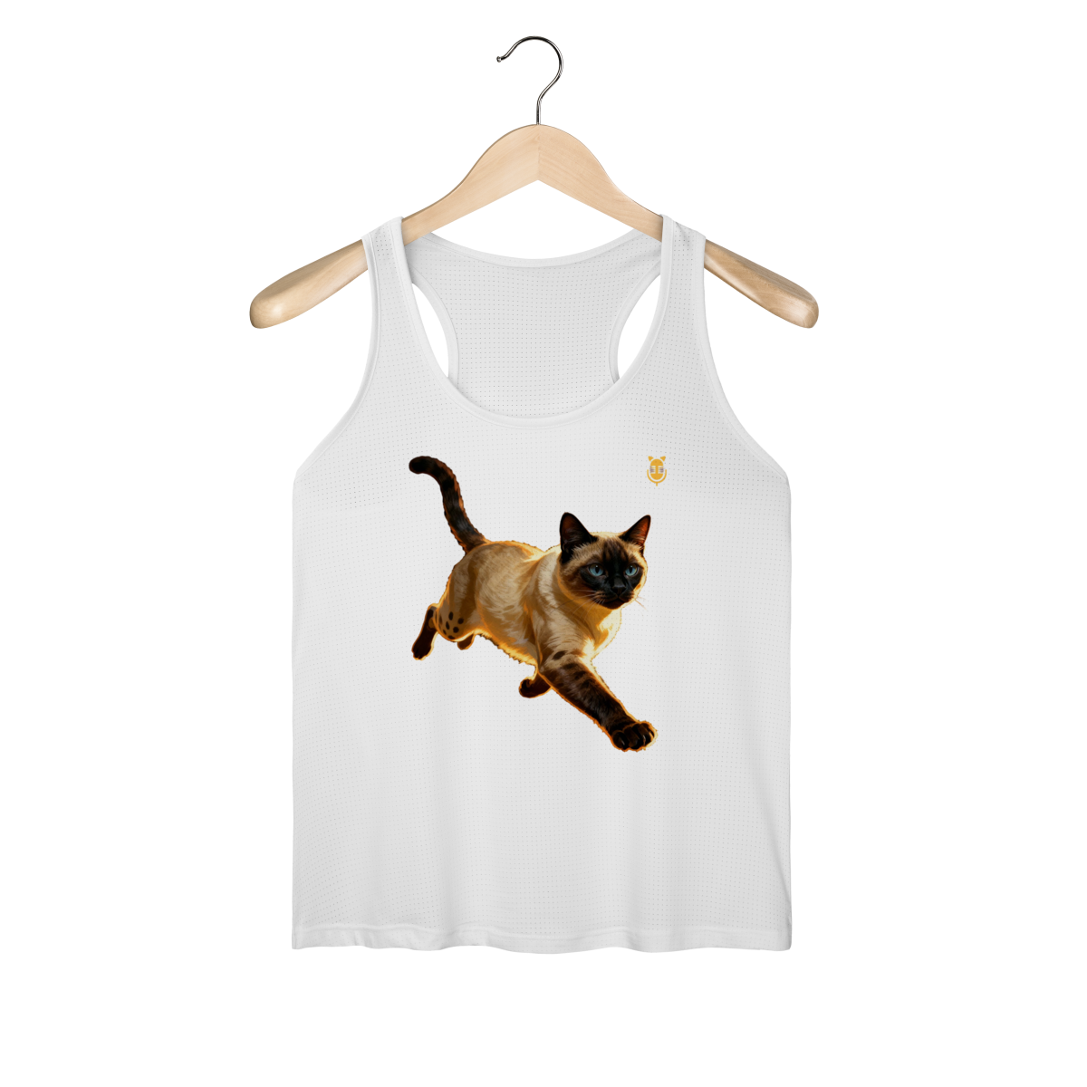 A arte transmite velocidade, atitude e elegância felina, perfeita para quem ama gatos ativos e estampas que passam a sensação de ação e liberdade.