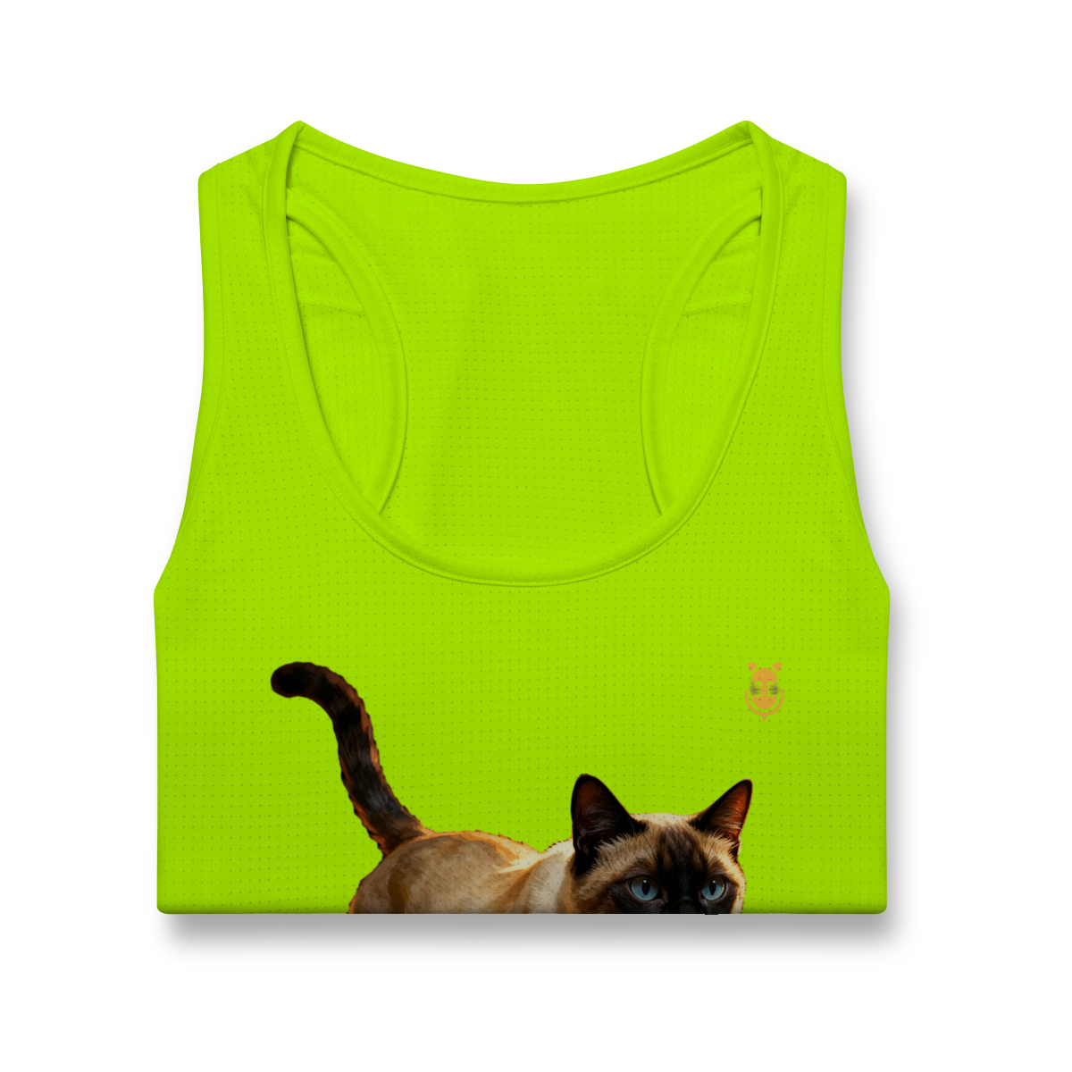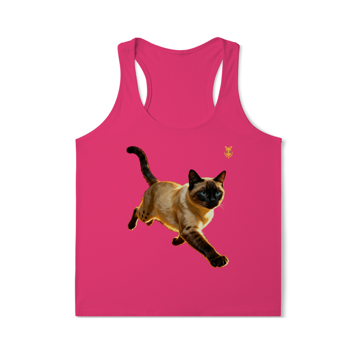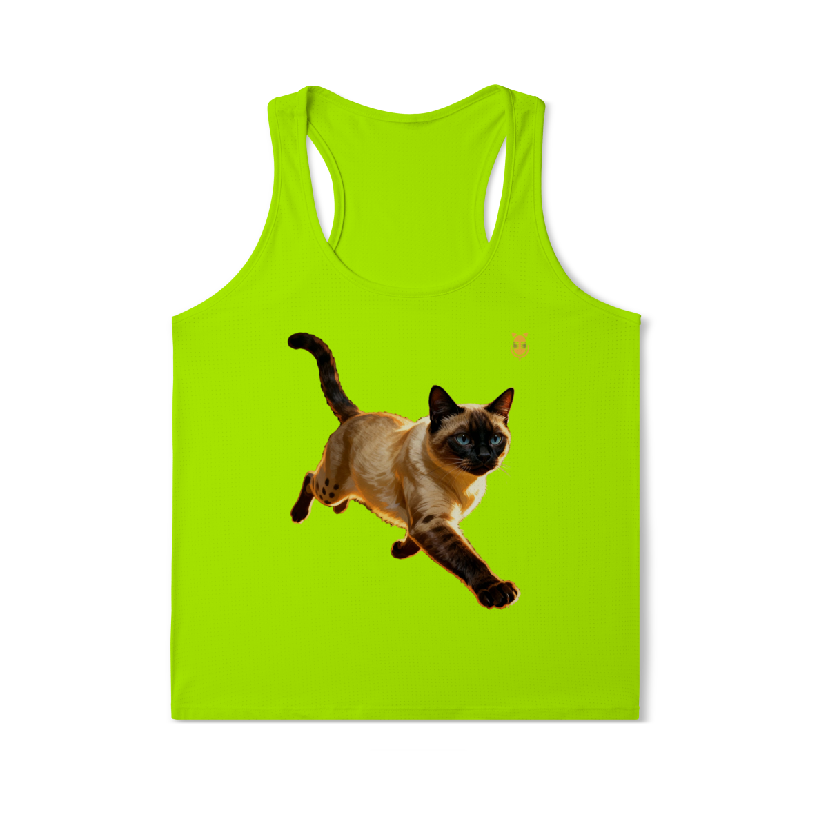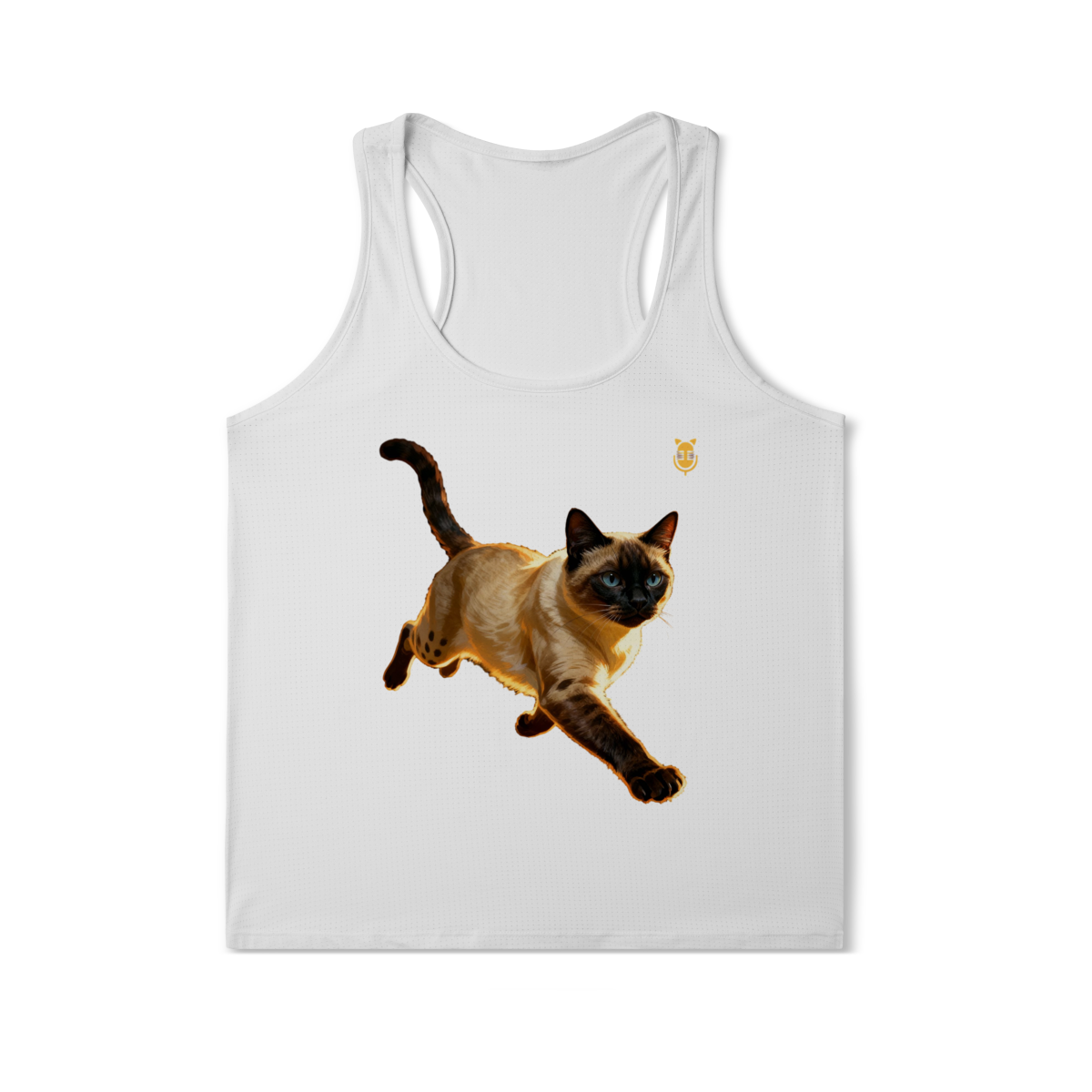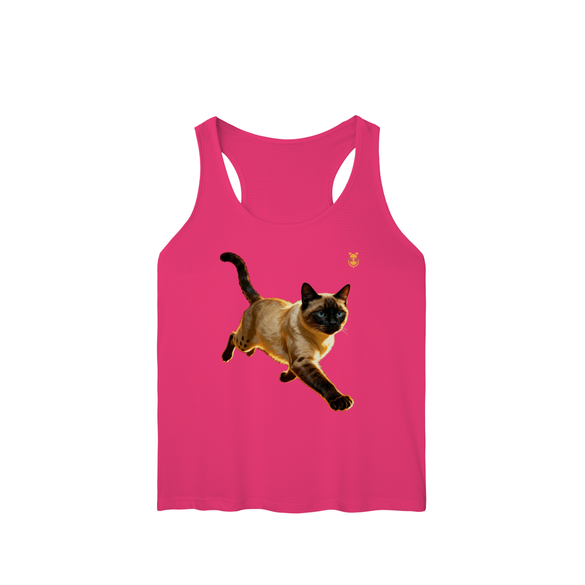 A arte transmite velocidade, atitude e elegância felina, perfeita para quem ama gatos ativos e estampas que passam a sensação de ação e liberdade.