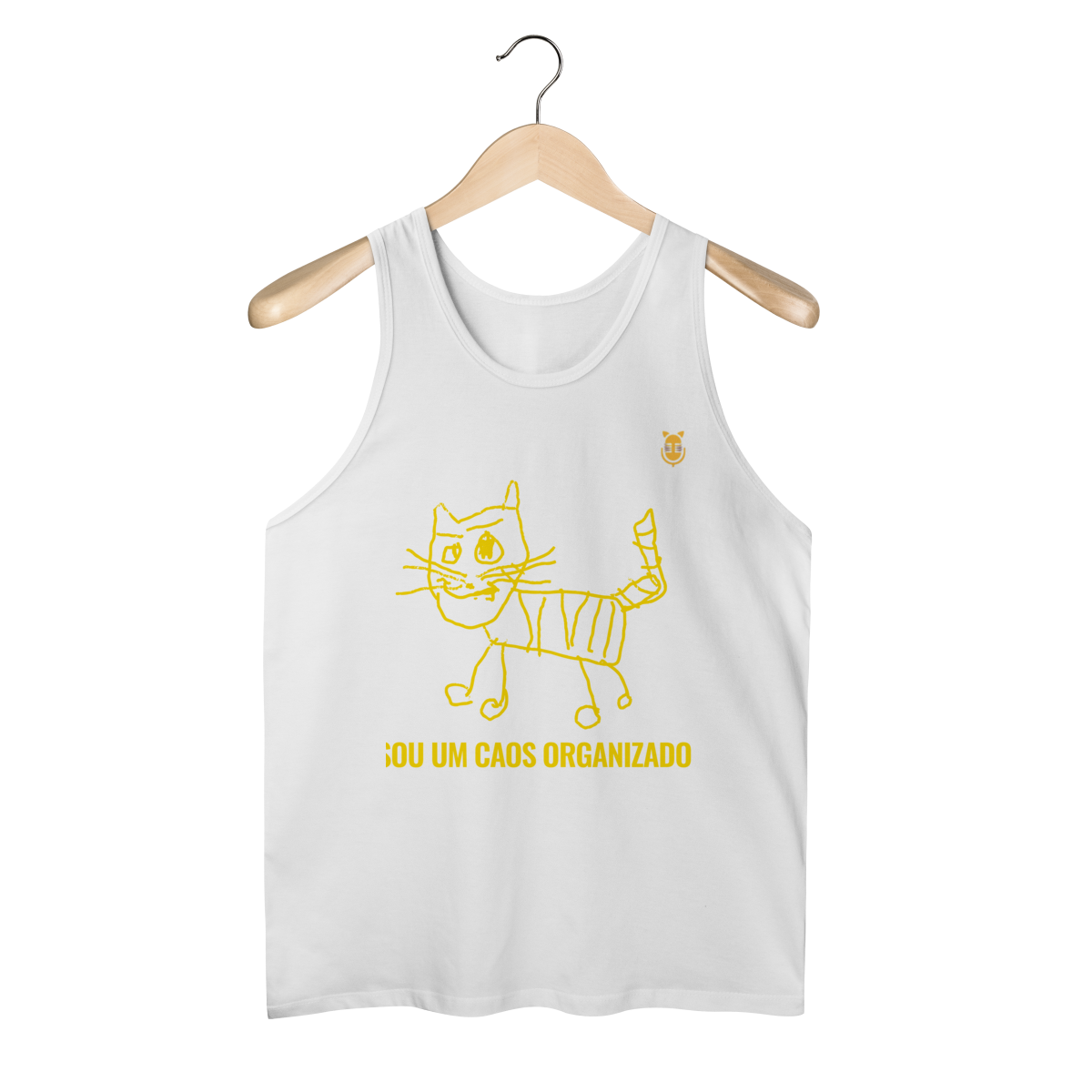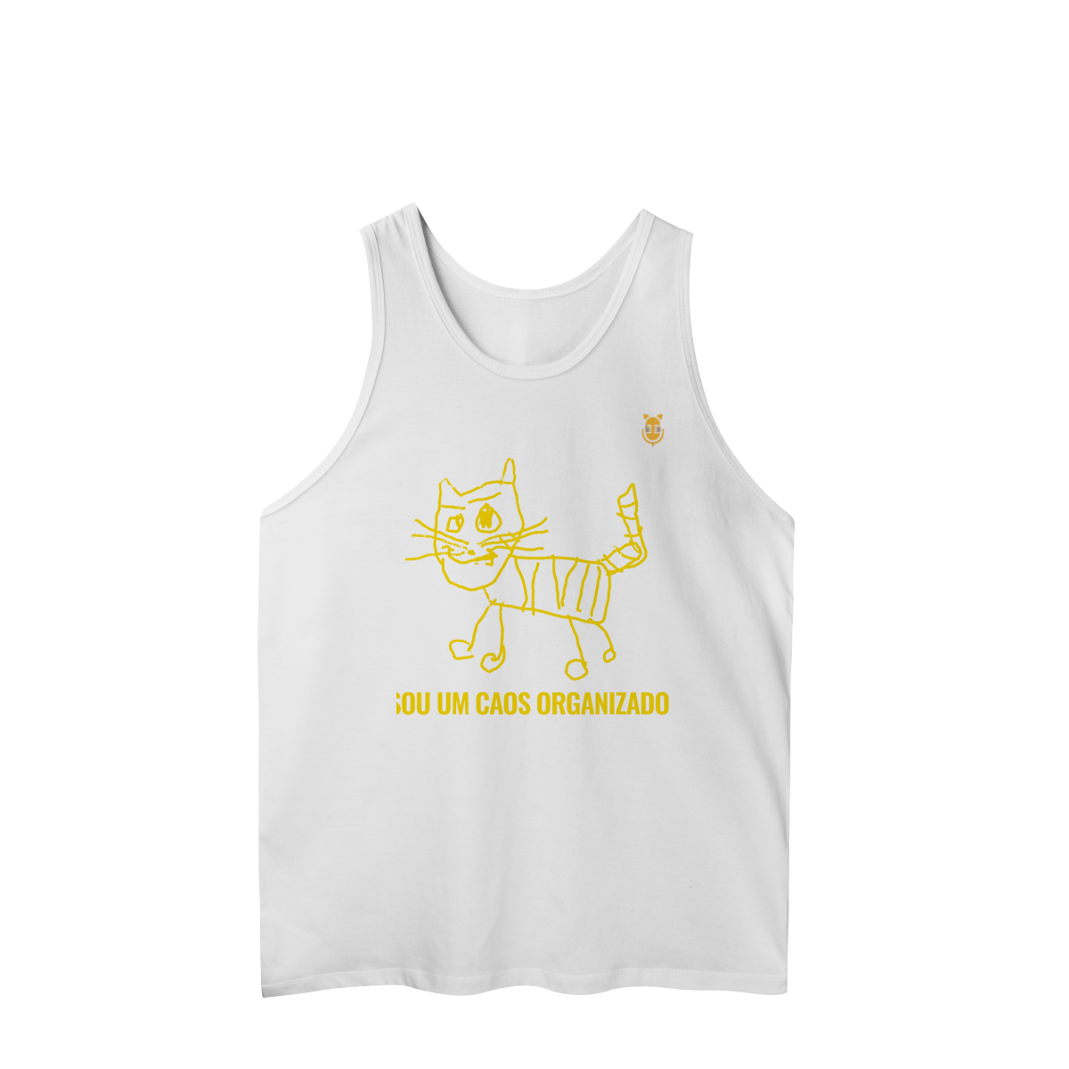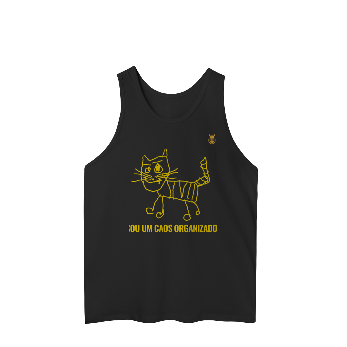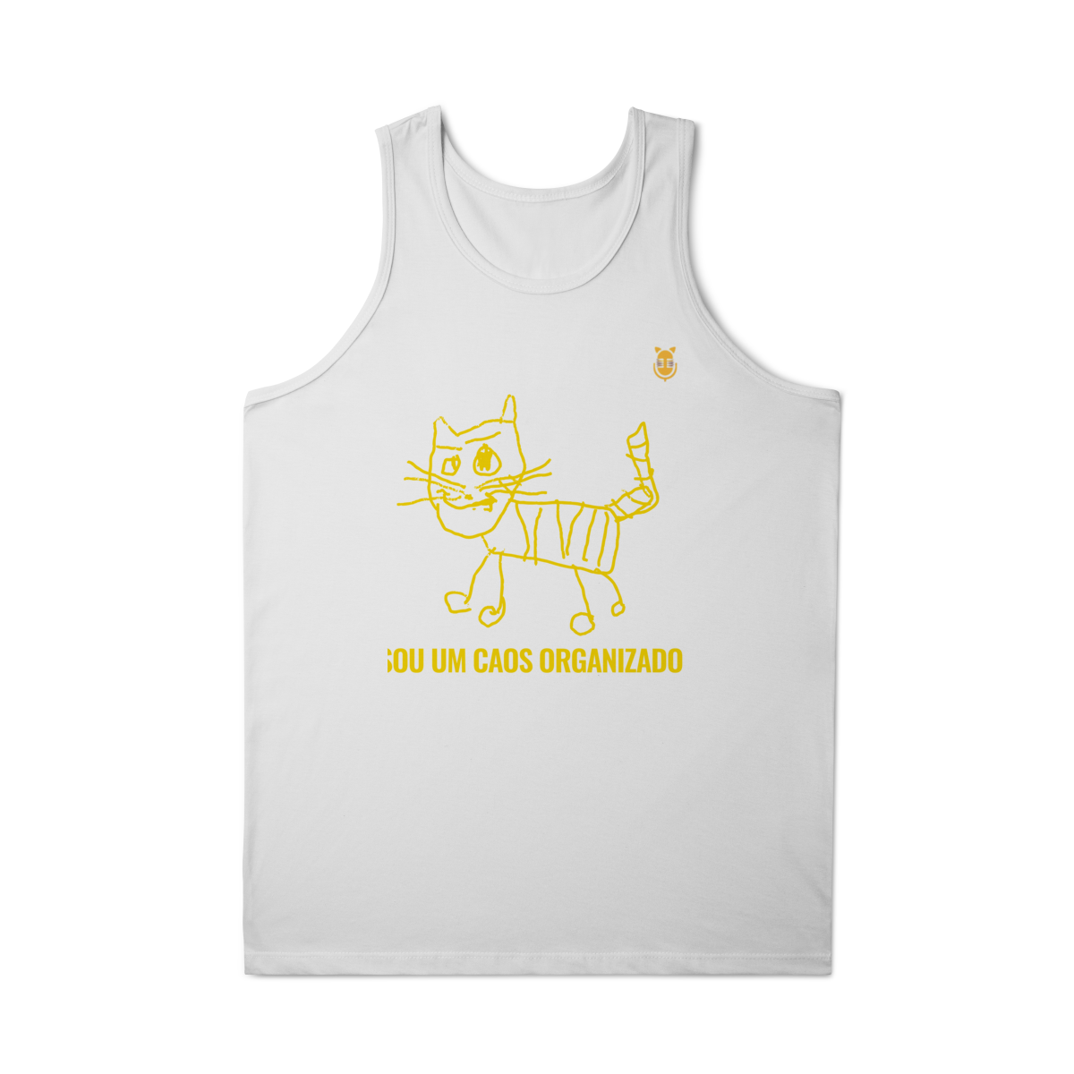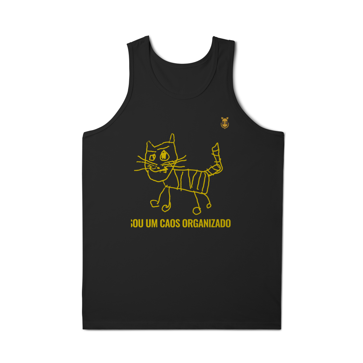 A  Caos Organizado – Edição Rabisco Felino traz um gato desenhado no estilo infantil, cheio de linhas tortas e personalidade — acompanhado da frase que define muita gente: “Sou um caos organizado”.
