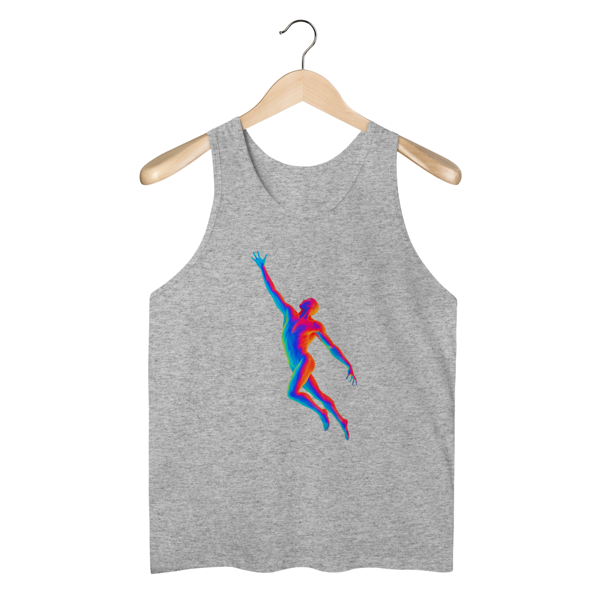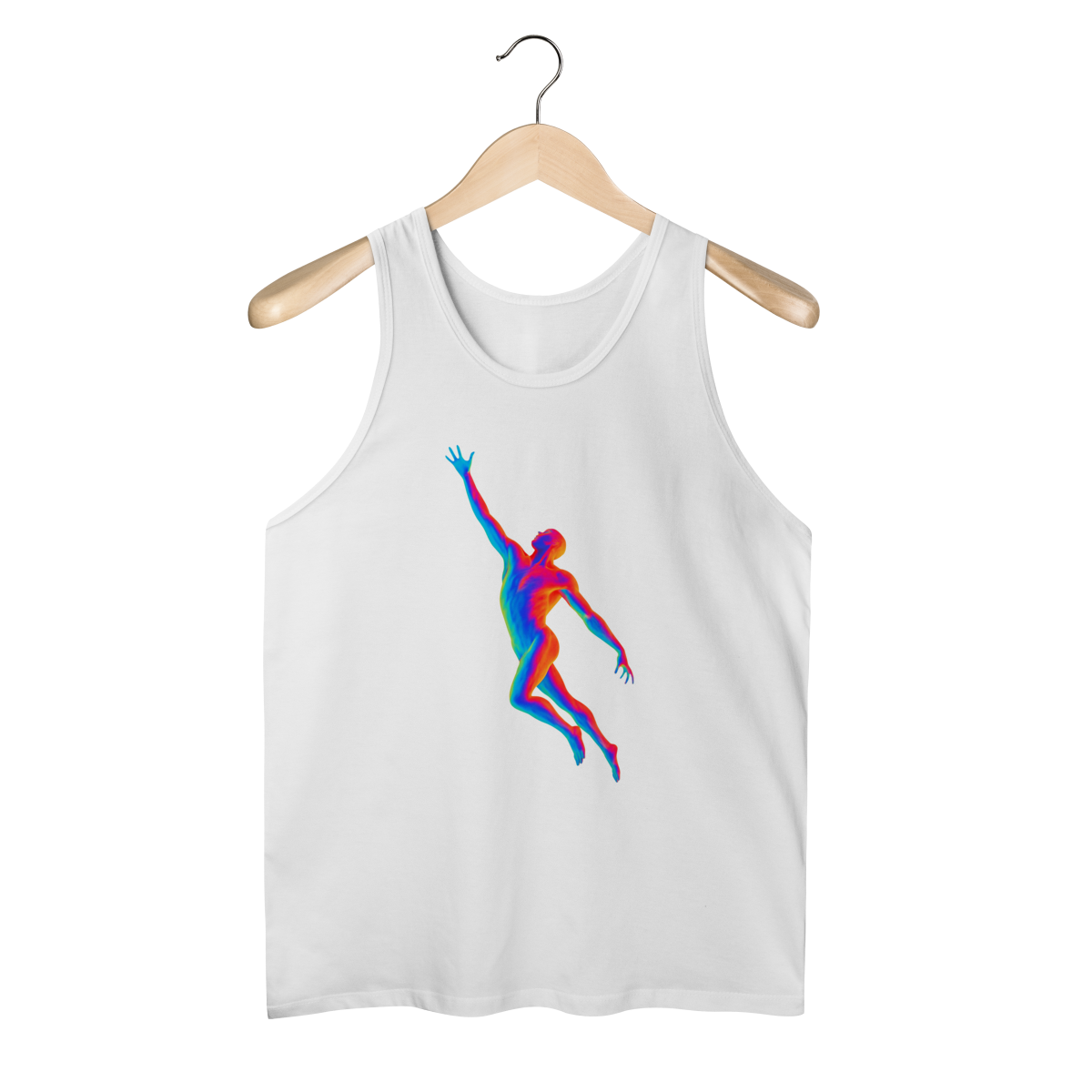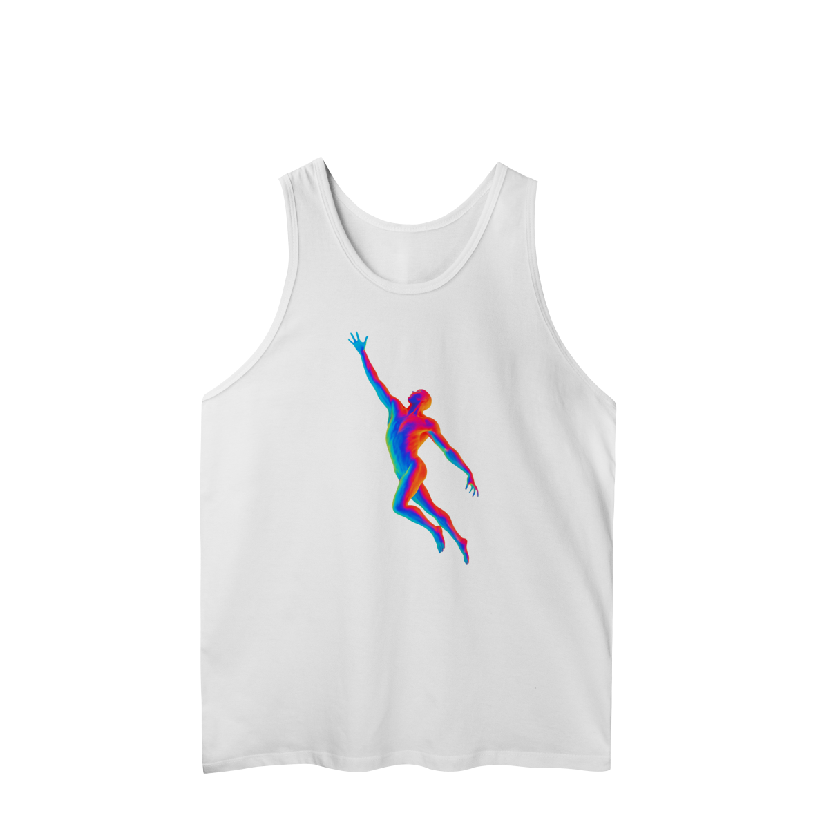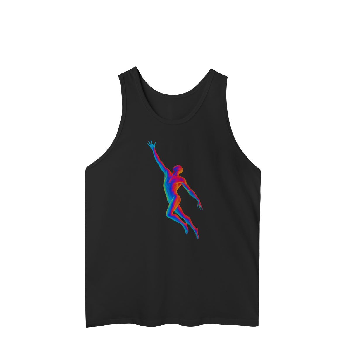A Ascensão Psicodélica traz uma figura humana em posição de elevação, representada em cores vibrantes que criam um efeito térmico e surreal.
