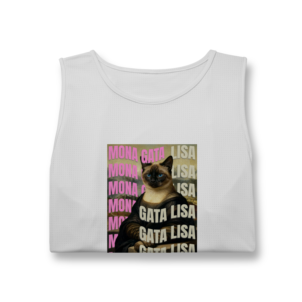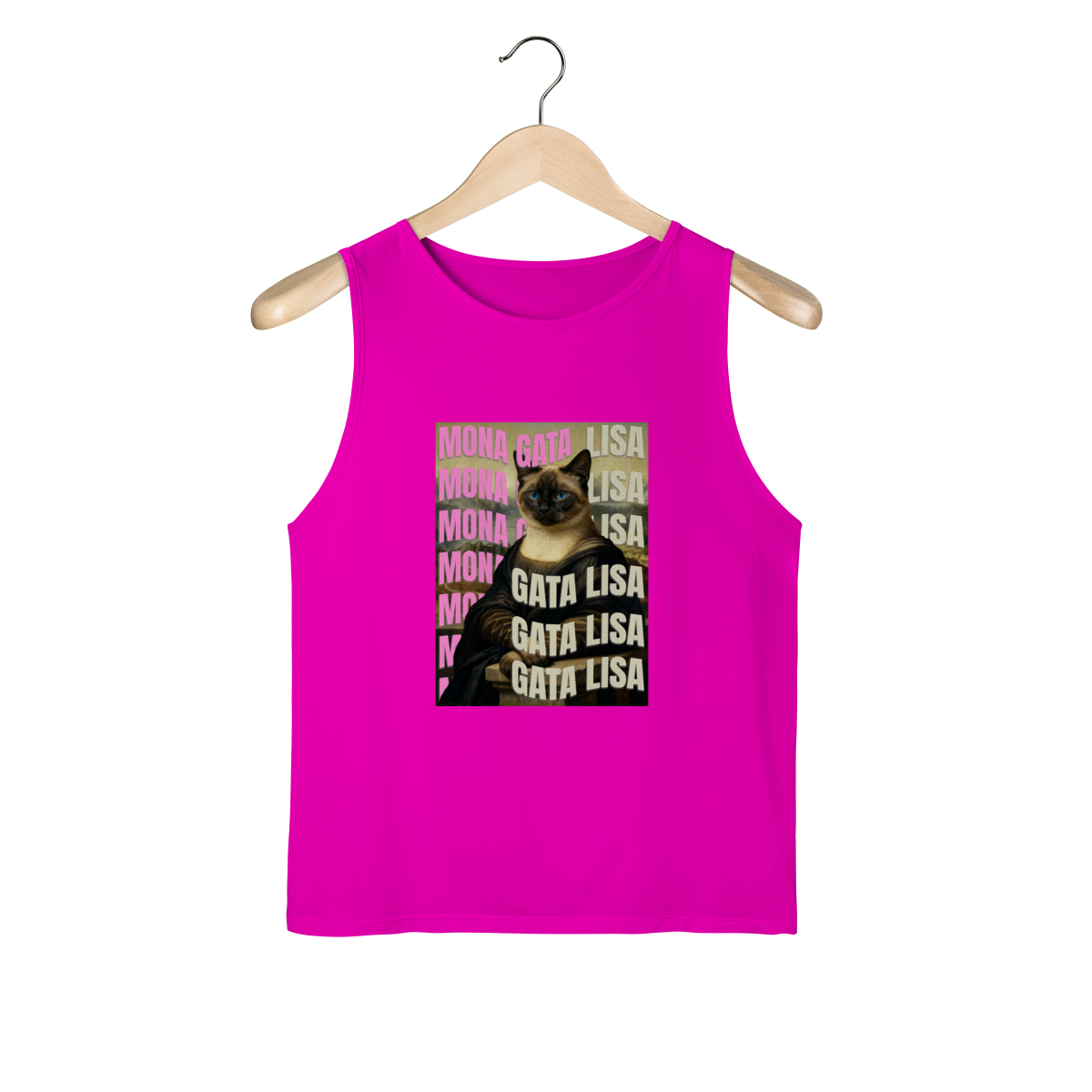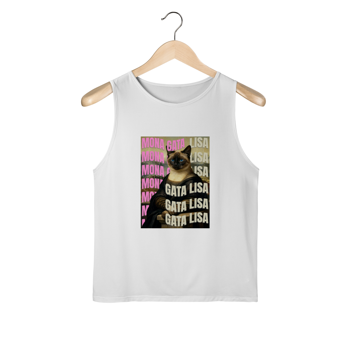 A Regata Gata Lisa traz uma paródia divertida da famosa obra “Mona Lisa”, mas reimaginada com uma gatinha siamesa. A estampa mistura humor e arte de um jeito simples e estiloso, perfeita para quem ama gatos e camisetas criativas. Confortável, moderna e com impressão de alta qualidade — ideal para usar no dia a dia ou presentear alguém especial.