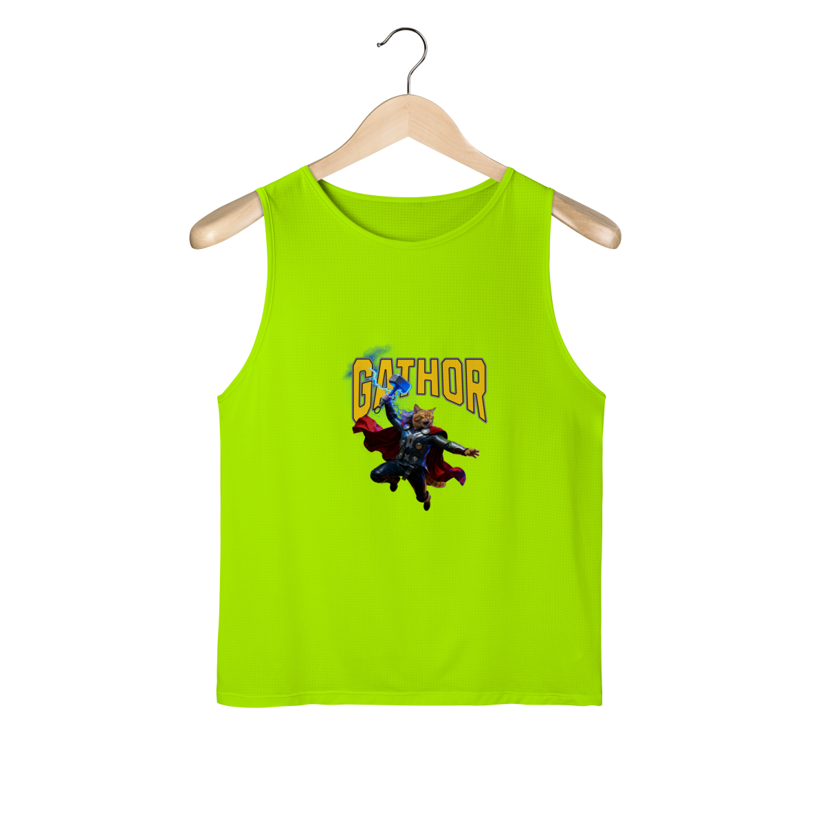 A Regata Gathor traz uma paródia divertida do deus do trovão, agora reimaginado como um gato herói superpoderoso. A estampa é vibrante, cheia de ação e perfeita para quem ama gatos, humor e cultura pop. Confortável e estilosa, é uma ótima opção para usar no dia a dia ou presentear alguém que adora camisetas criativas.